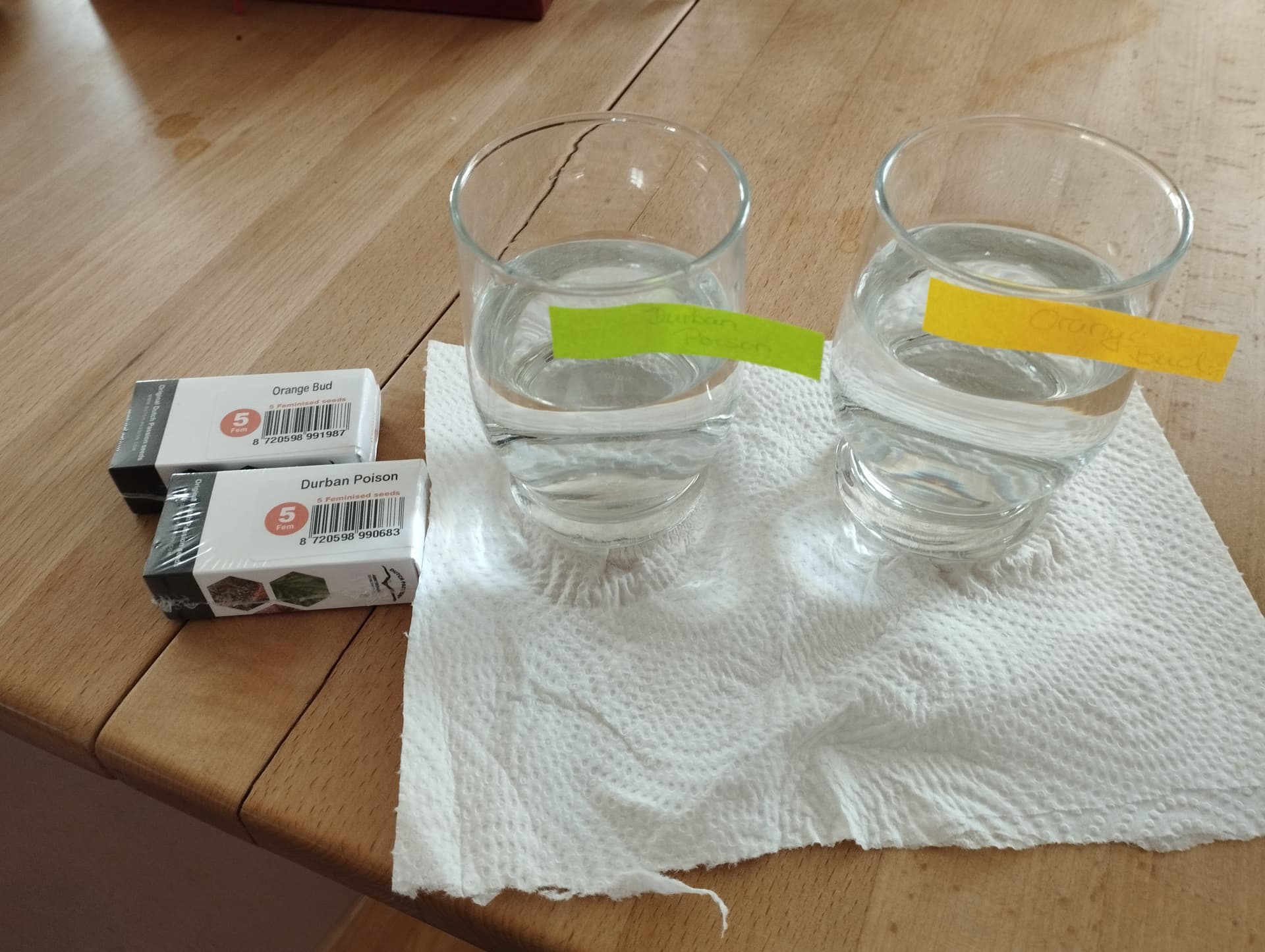 Ok die Samen ab ins Glas Leitungswasser. Es kann losgehen: