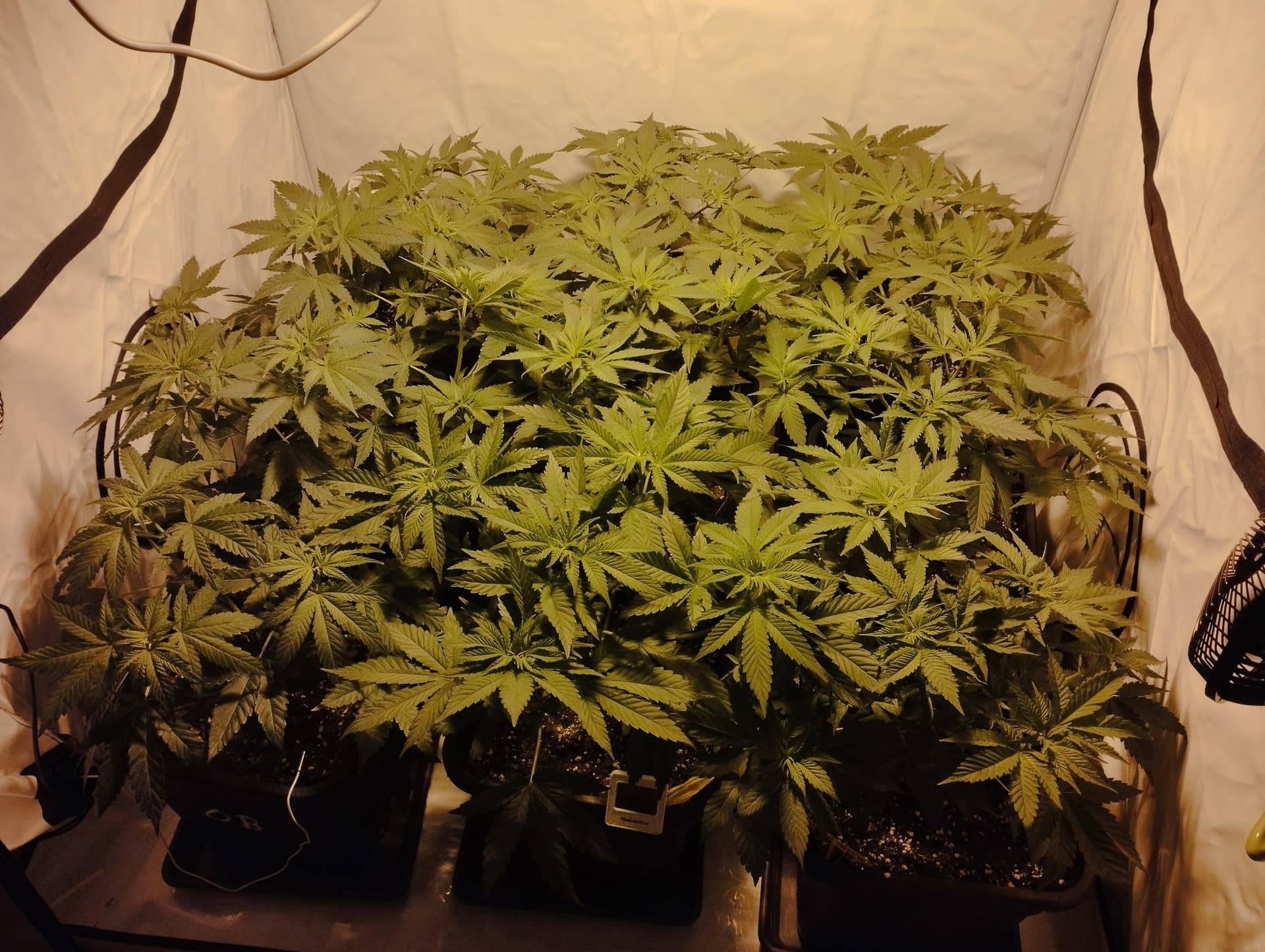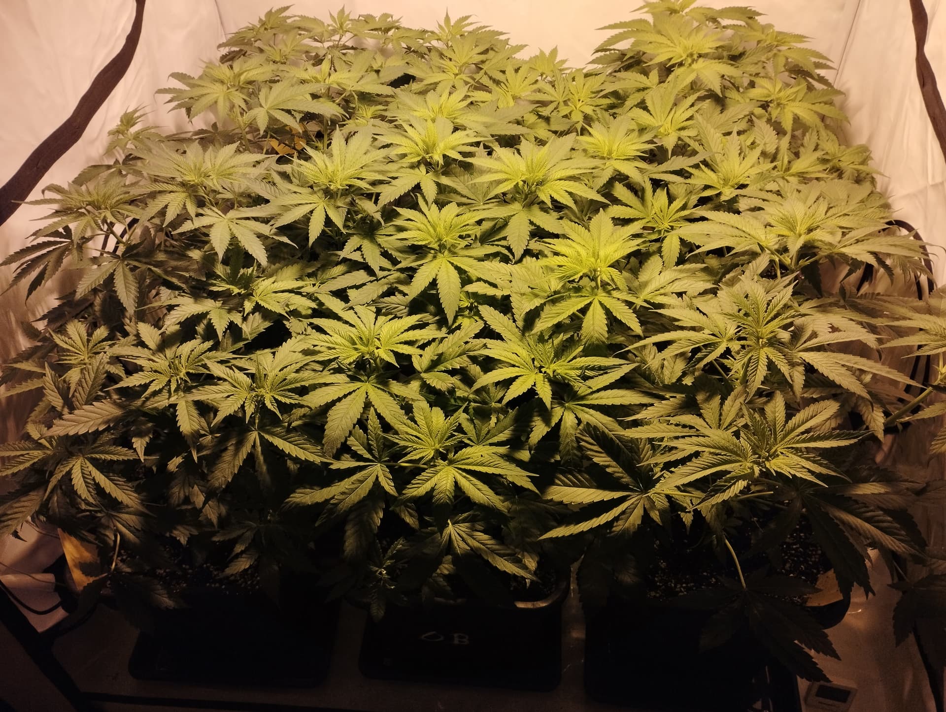 Ich denk ich den nächsten 2-3 Tagen muss ich schon mal etwas Entlauben um den Trieben etwas Platz zu geben. Es ist schon n ziemlicher Urwald bei mir. Das Lollipoppen plane ich gegen Ende des Stretches durchzuführen…so gegen Ende der 3. Blütewoche…