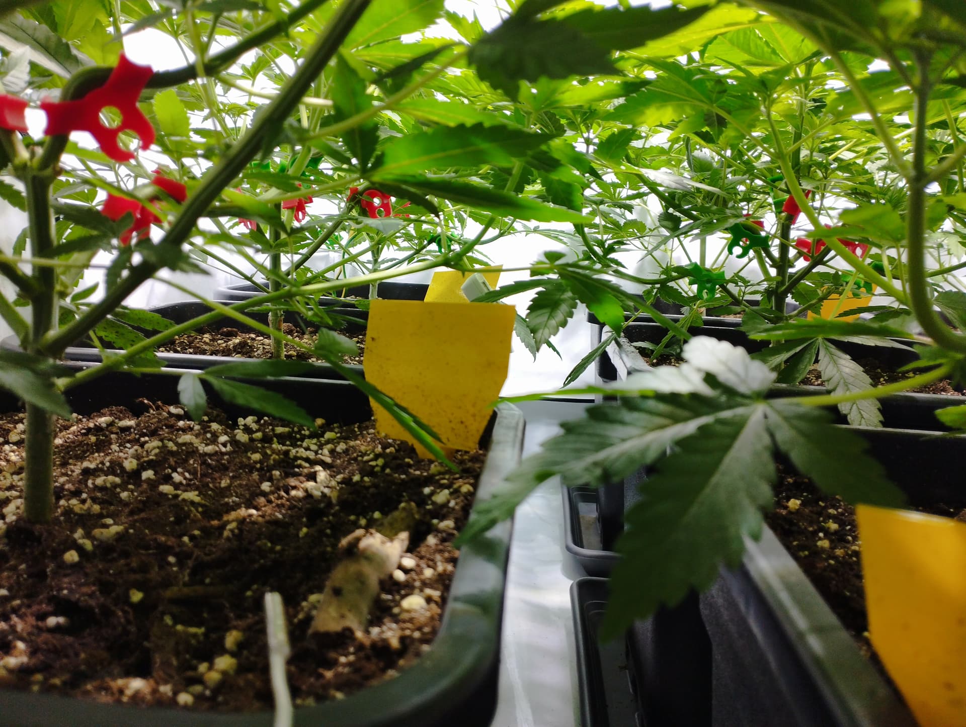 Heute wurde das erste Mal mit Dünger und Calmag (nach Schema) gegossen. Aber nur 1l pro Pflanze…durch das Spülen würde da schon ordentlich Wasser zugesetzt und da ich ja die Nematoden ja auch noch mit 300ml eingebracht habe die Tage gieße ich jetzt weniger dafür öfter um das Substrat feucht zu halten wegen den Nützlingen. Wenn die Trauermücken zurückgedrängt sind, dann Werd ich wieder längere Trockenphasen einplanen.