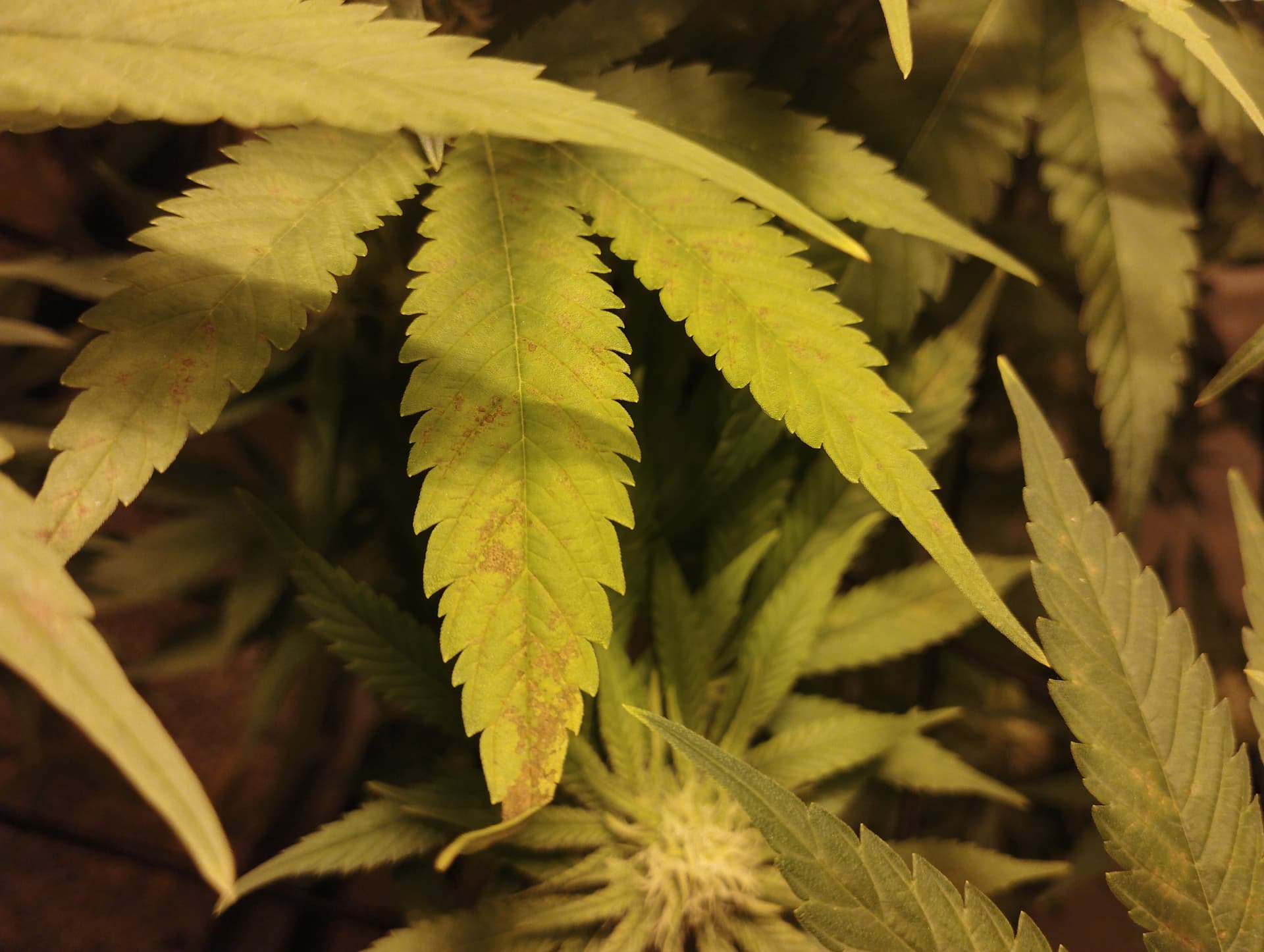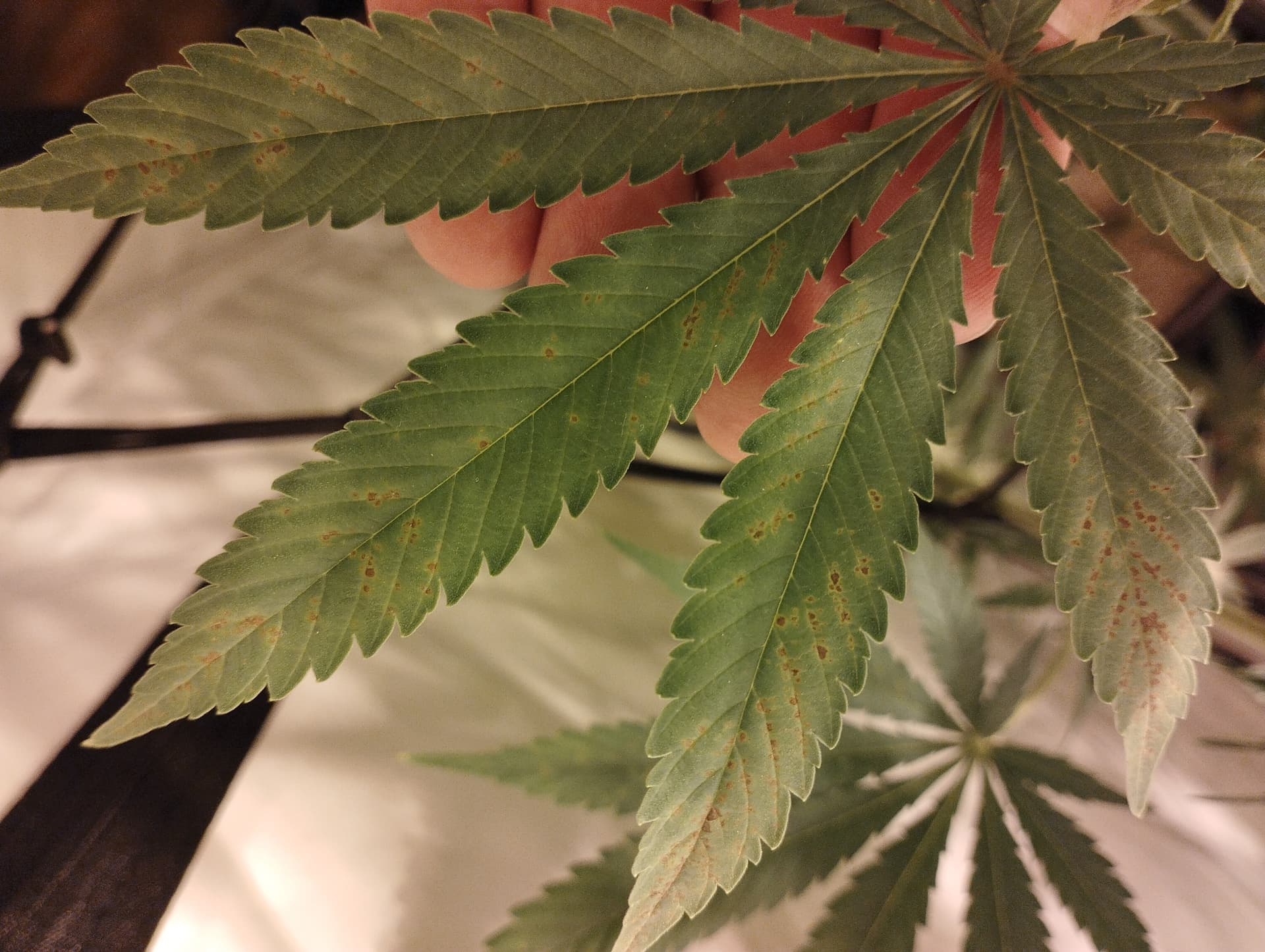 Wobei evtl. War mein erster Verdacht doch näher drann. Lichtstreß macht sich an den Blattadern ( so nenn ich sie) bemerkbar. Geb mal mehr dünger und warte die Reaktion ab.