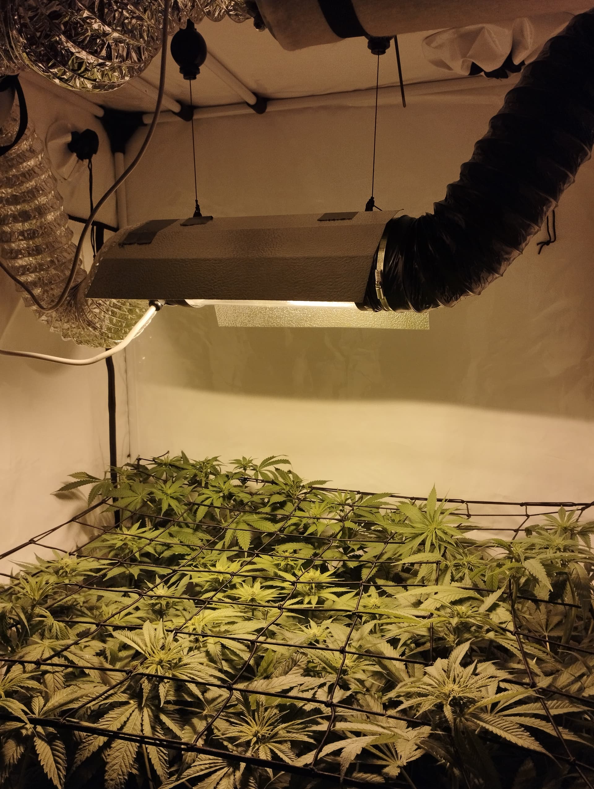 Die 600W NDL ist ca. 40 cm entfernt (Cooltube) die betroffenen pflanzen stehen nicht mittig sonder an der Seite. Sie waren aber bis zum Lollipoppen mittig gestellt. Hab sie vor ca. ner Woche aufgebockt weil der Stretch nicht so arg war wie bei den anderen. Sie haben aber die dicksten Buds im Moment…