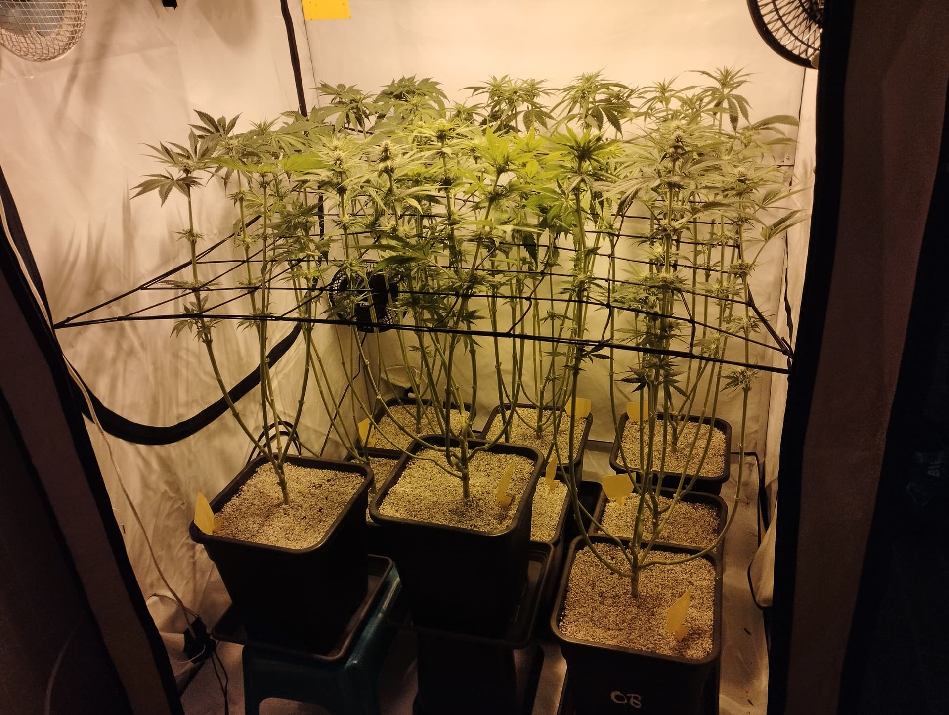 Ich hoffe auch. Meine beste Bud ist allerdings aufgebockt und 15 cm höher gestellt um nicht buchstäblich in dem Schatten gestellt zu werden. Aber bisher kann ich mich nicht beklagen. Werden die Tage mal das scrog Netz reinmachen um die ein wenig zu bremsen. Der Stretch ist schon arg…
