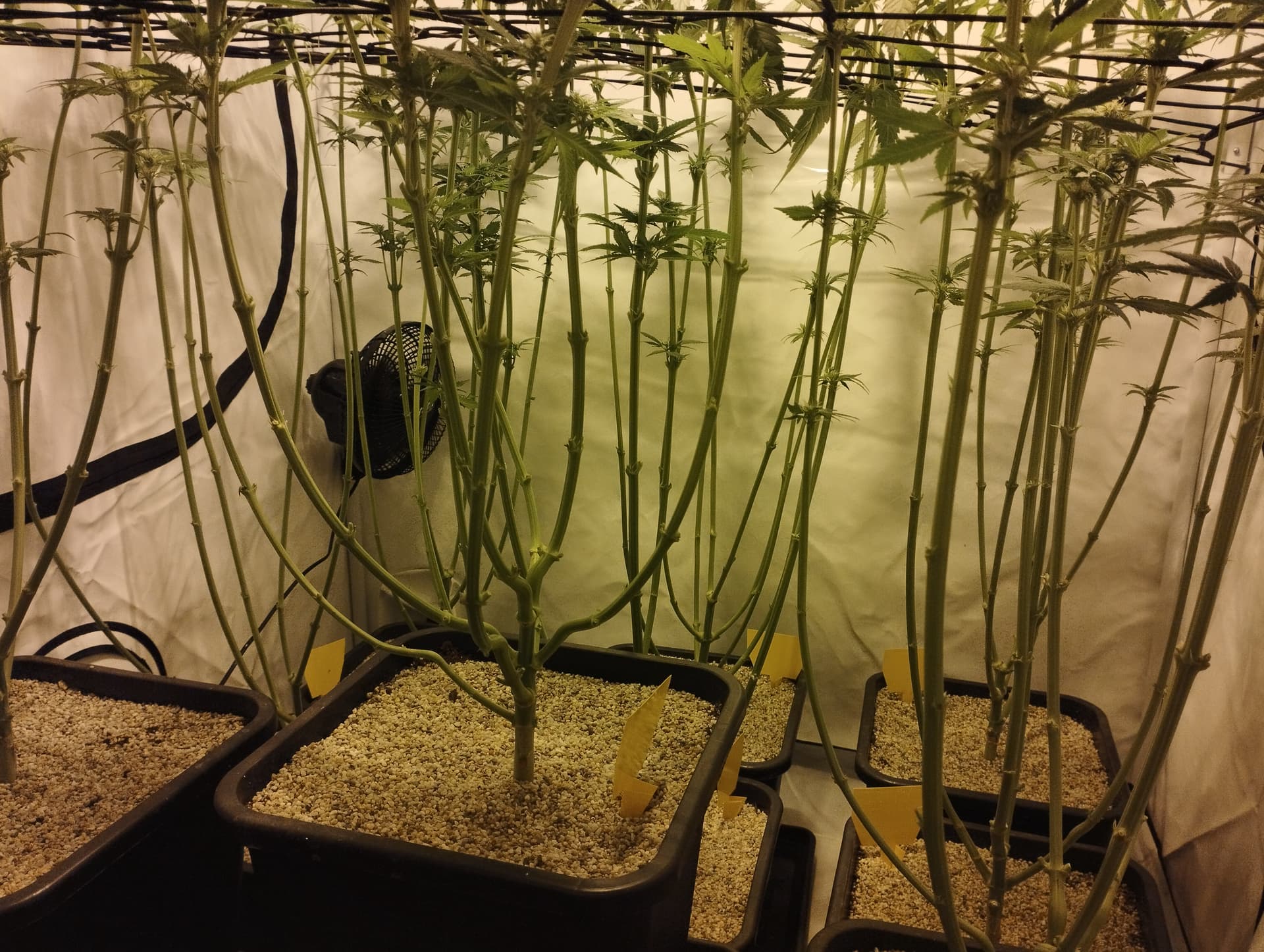 Der Stretch ist in vollem Gange. Mittlerweile sind die Ladies ca. 70cm hoch…hoffe in ner Woche ist dann Schluss mit dem krassen Höhenwachstum. Dann ist der Plan zu Lollipoppen. Vorgestern gabs nur Calmag und Bittersalz (je Pflanze so ca. 2-2.5l). Bei der nächsten Wässerung wird dann wieder gedüngt.