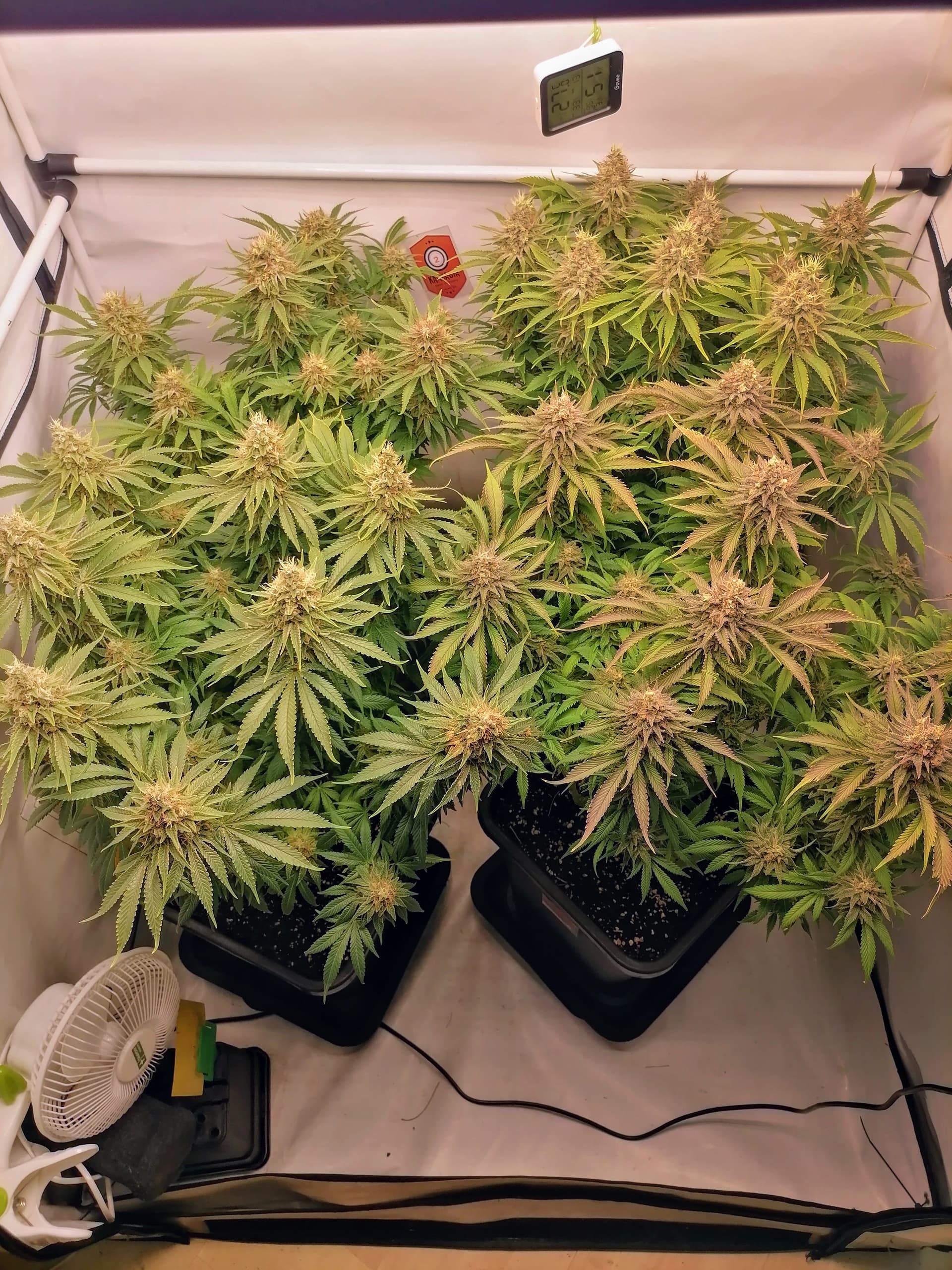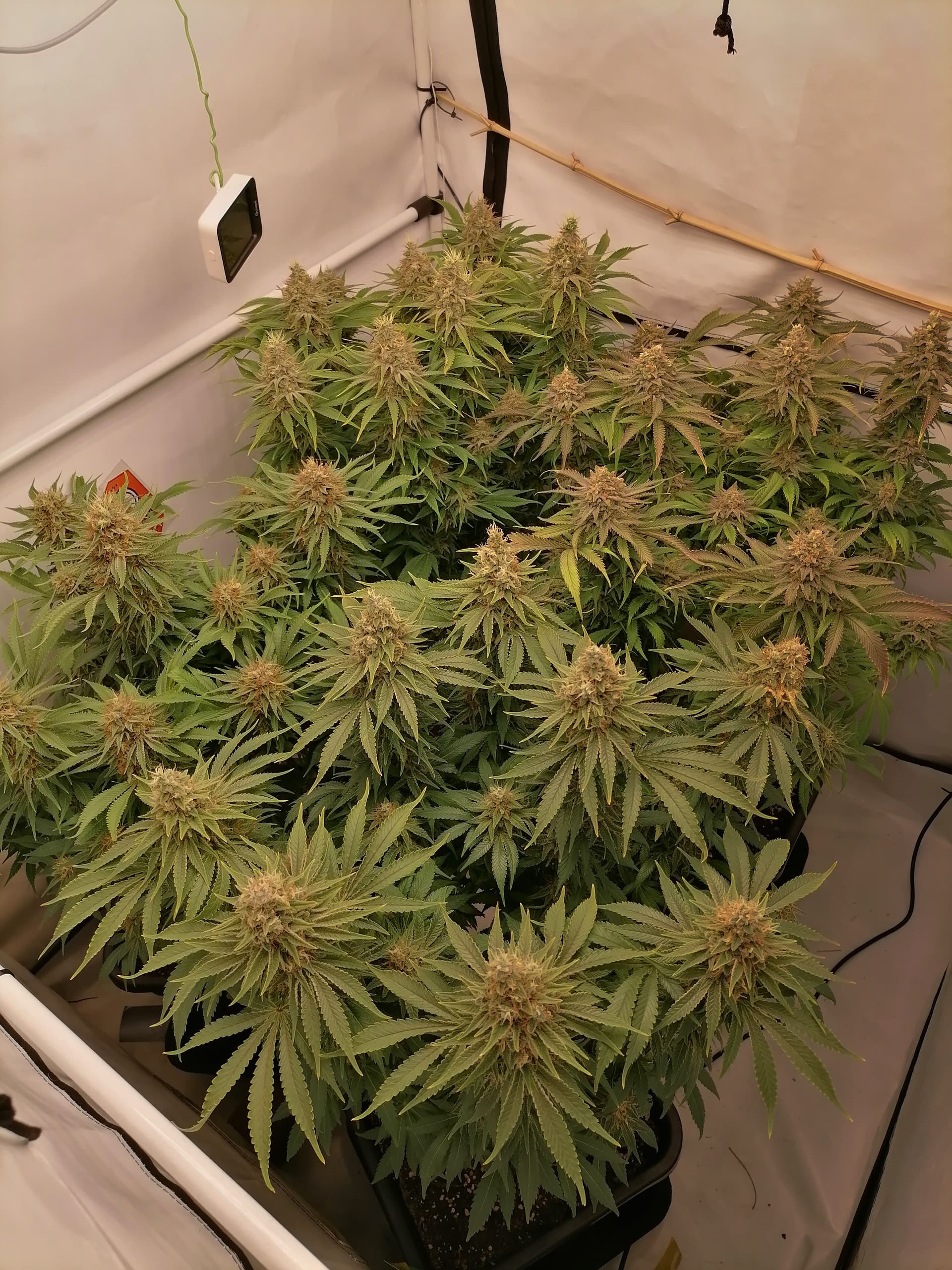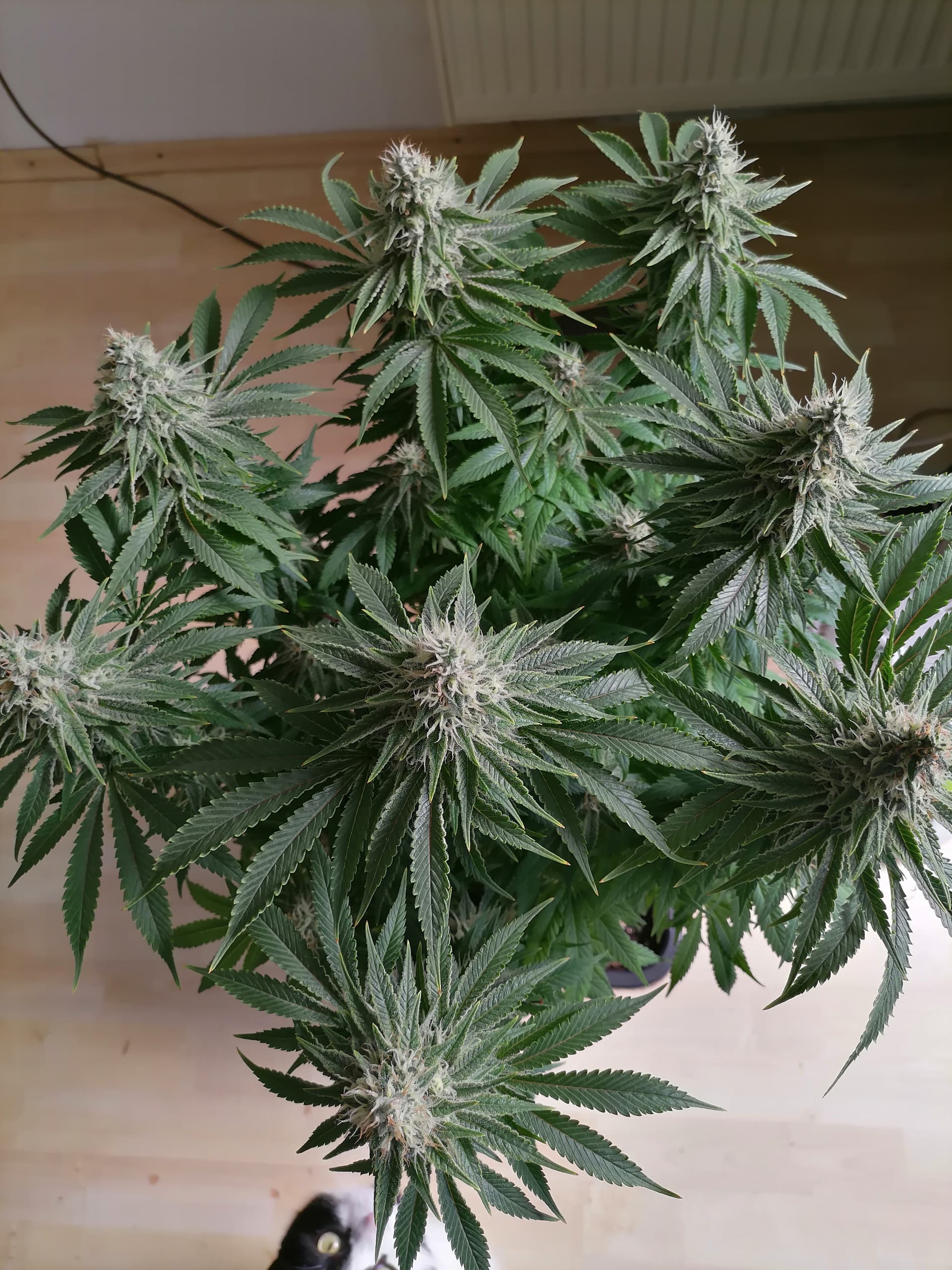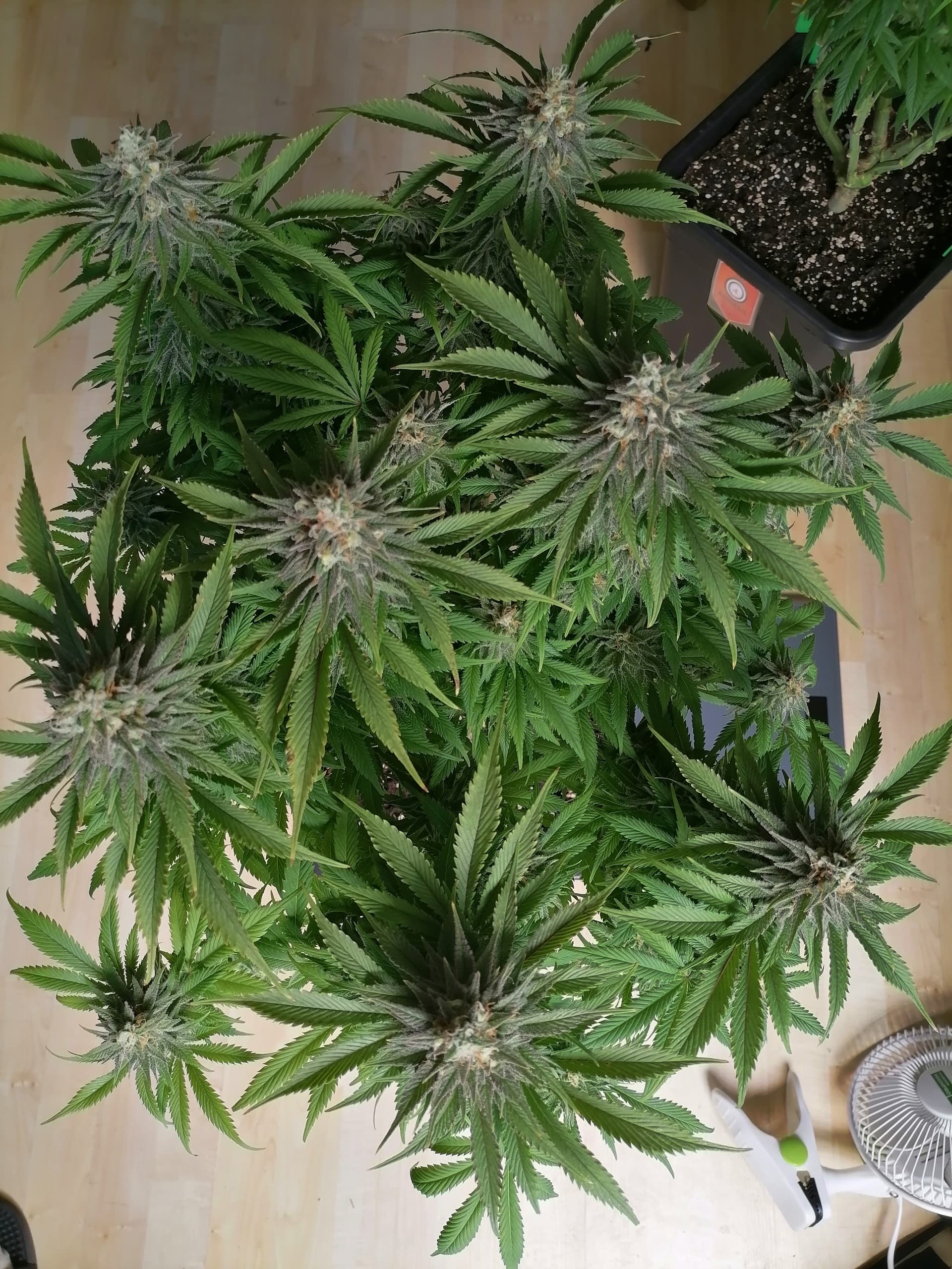 Leider dauert es noch ein wenig mit der Ernte, werde die Tage noch mal Trichom Fotos machen. Ca. 70 Tage gibt Kannabia als Blütezeit an. Das wäre in der 1sten Maiwoche. Ich rechne aber mit einigen Tagen später.