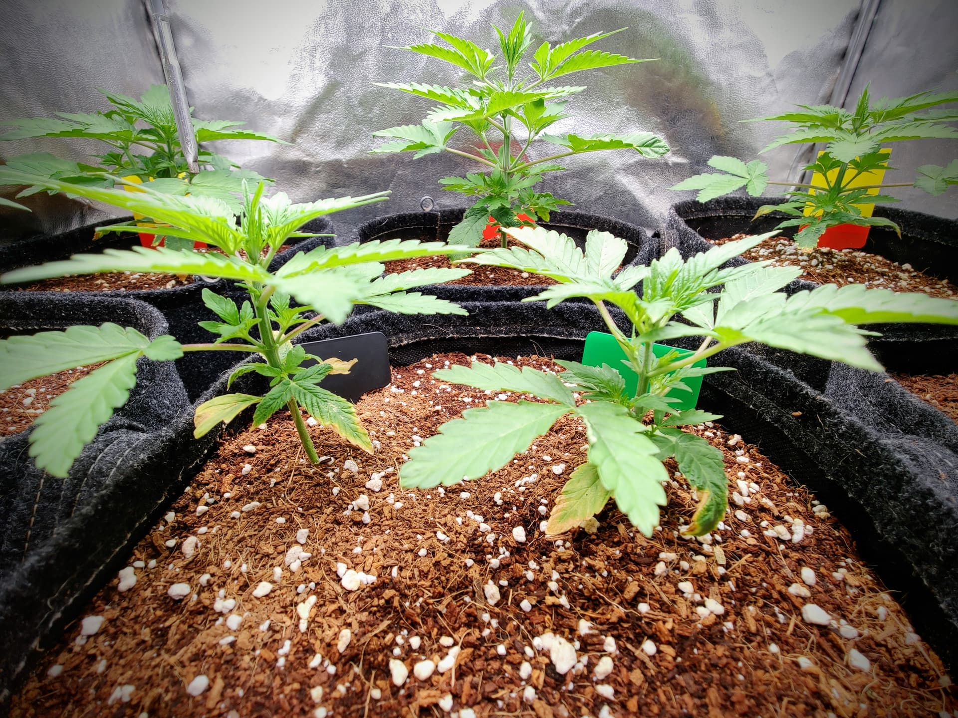 Hier wird nicht mehr selektiert und auch nicht mehr getrennt. Eigentlich wollte ich nur 4 Töpfe, gekeimte Ersatzsamen zwangen mich zur Aufstockung - aber eine ungerade Anzahl kommt mir nicht ins Zelt, wo kämen wir denn da hin?
