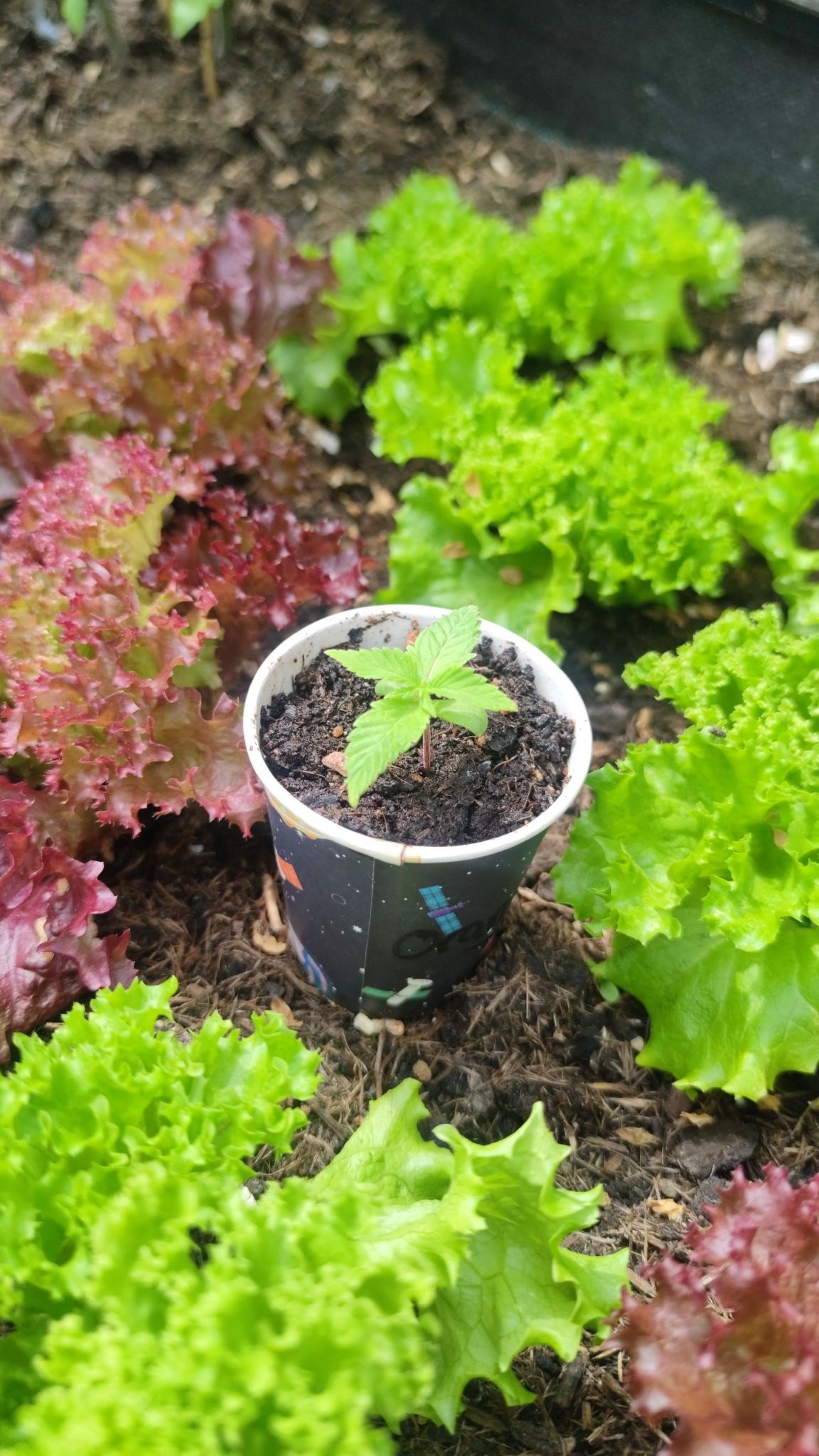 Hinten links Tag 41, Vision Gorilla von Vision Seeds, 25 cm (lange Zeit noch viel flacher gewesen)
