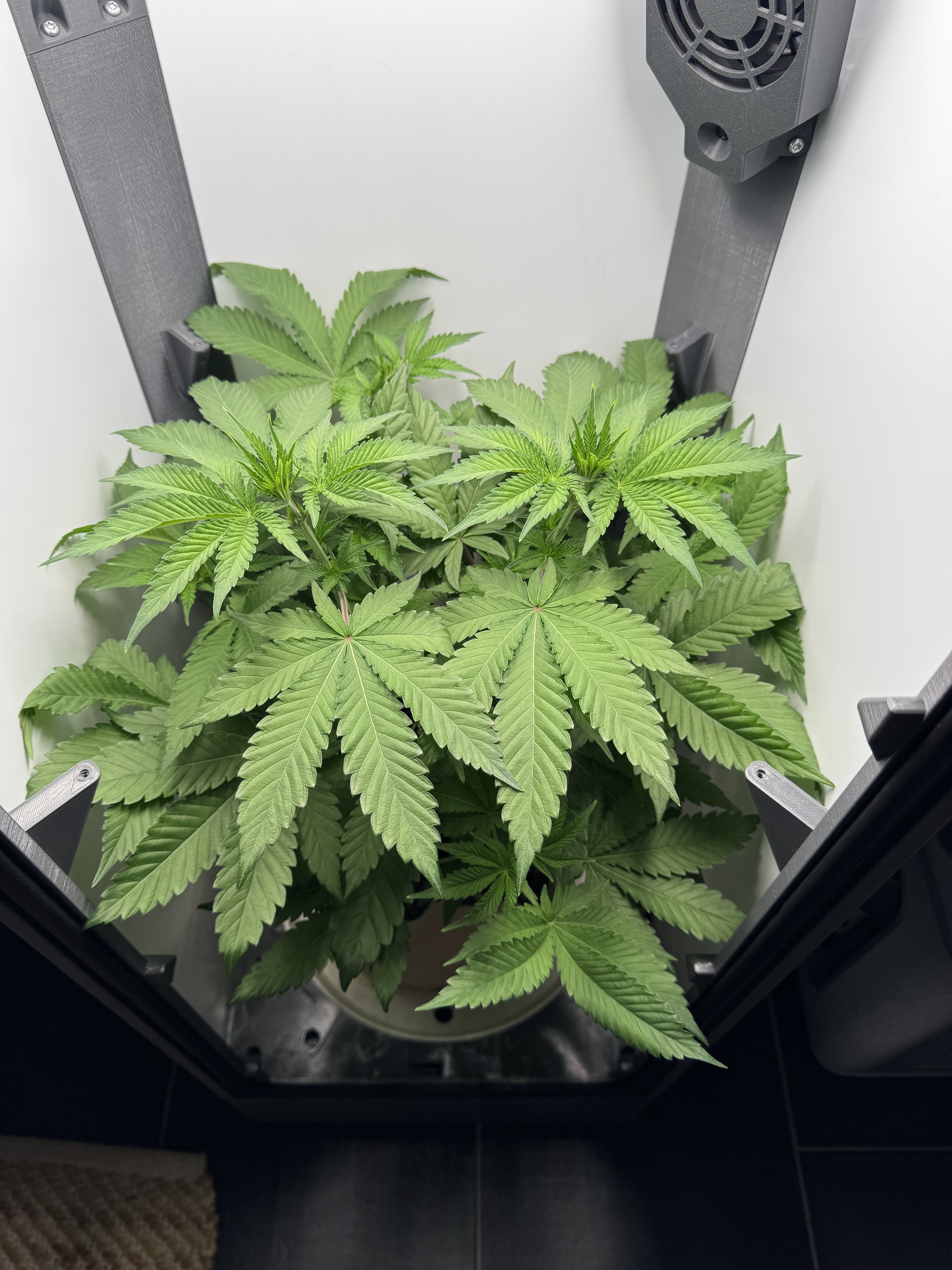 Kleines Update aus der Danf Box. War ja schließlich der eigentliche Grund für diesen Austausch. Blüte Woche 1 ist abgeschlossen und die solfire sprengt fast die Box.