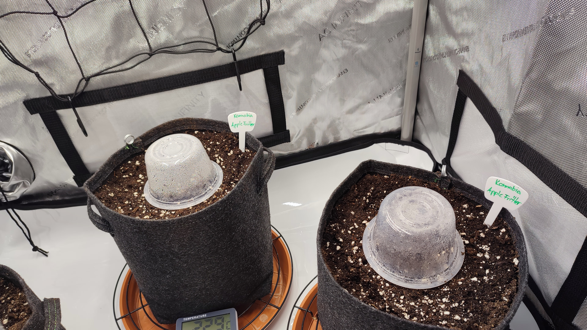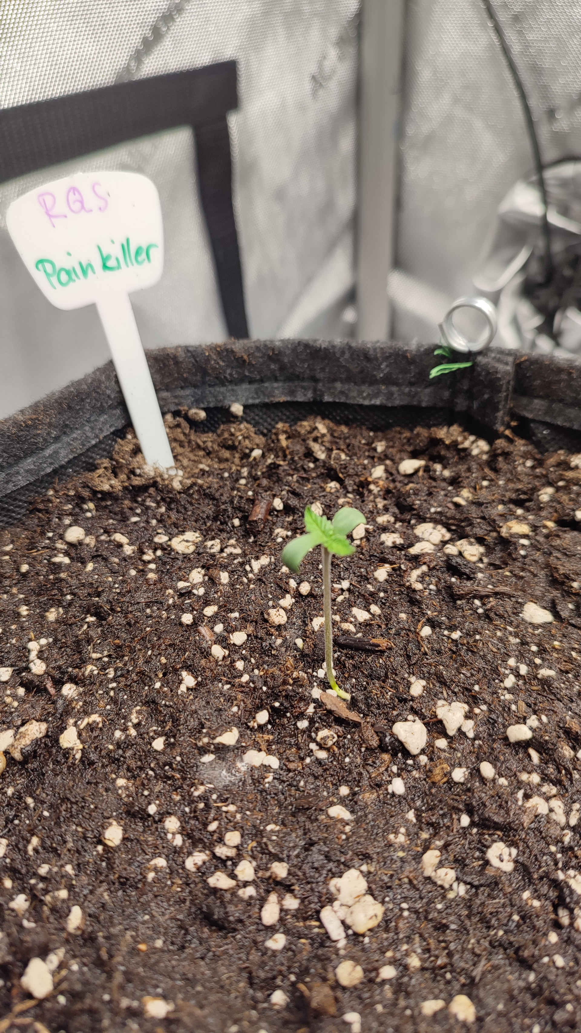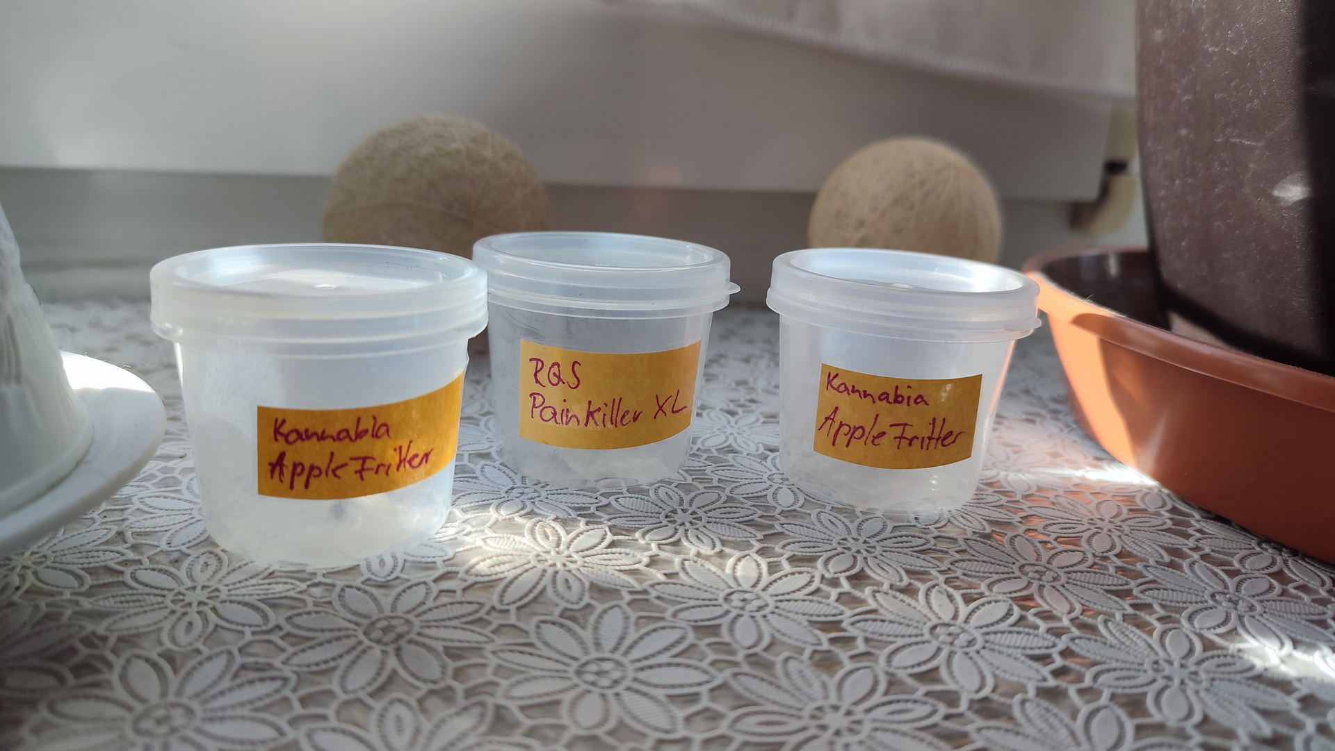 Also die Samen habe ich letzte Woche angesetzt. Die Apple Fritter waren, naja eigentlich doch recht “zügig” beim keimen. Der Painkiller ist mir etwas zu langsam. Hab noch nen 2. Samen reingehauen. Mach das über ein geschlossenen kleinen Becher mit der Tuchmethode. Ach und bevor ich es vergesse, diesmal kommen nicht mehr 11 Liter Stofftöpfe zum Einsatz sondern nur noch 8L. Die Apple Fritter sind gestern in den Topf gewandert. Schaun wir mal was das ganze so wird.