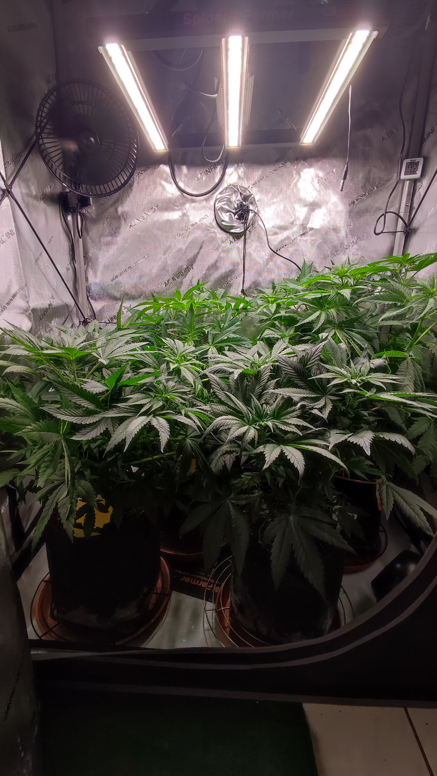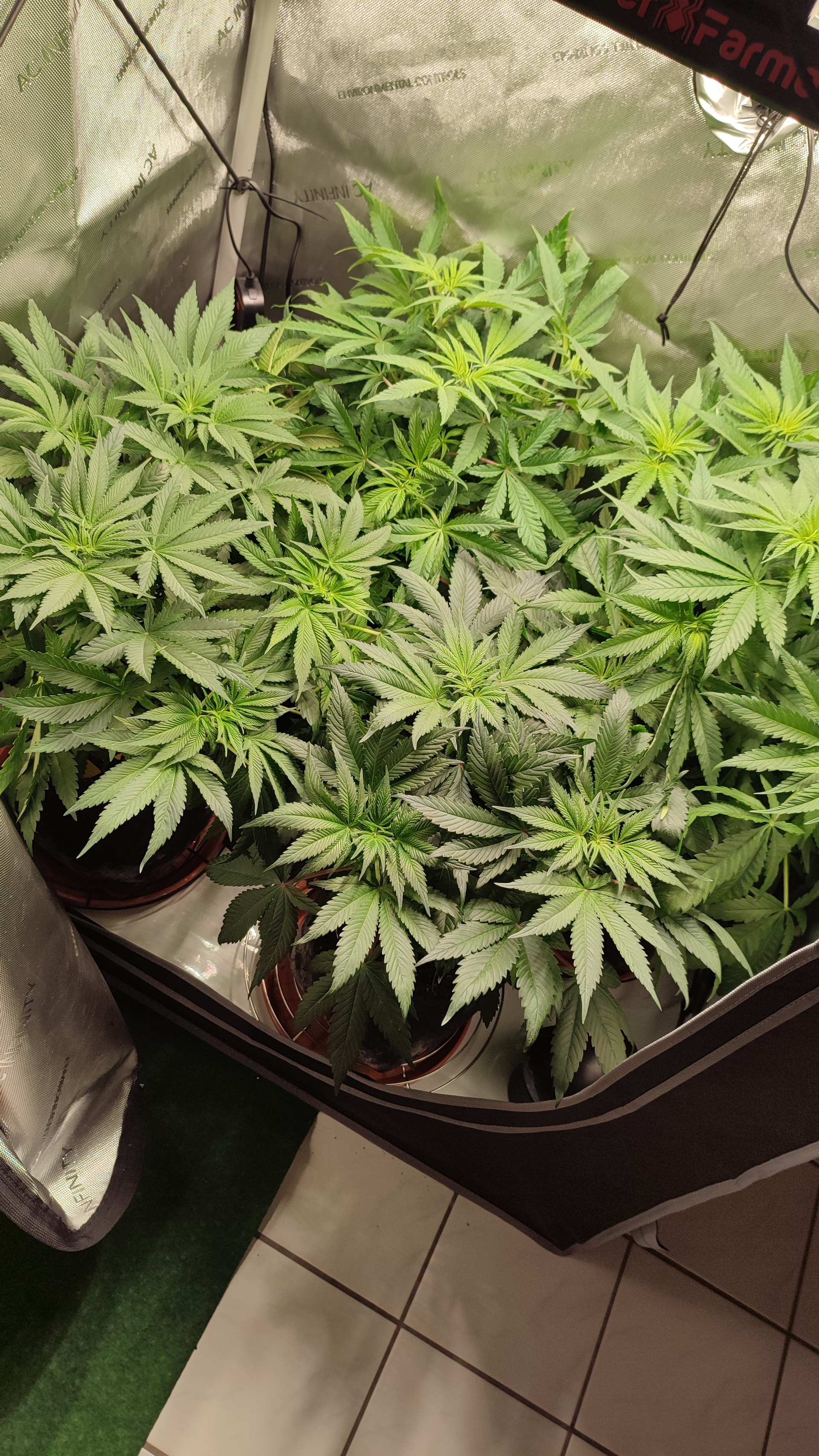 Ein kleines Update. Sind immer noch im Stretch. Wachsen und gedeihen. Das ist das erste mal, das die Pflanzen eigentlich keinerlei komische Erscheinungen haben, wie gelbe Blätter oder braune Punkte oder sonstiges. Doch relativ stabil.