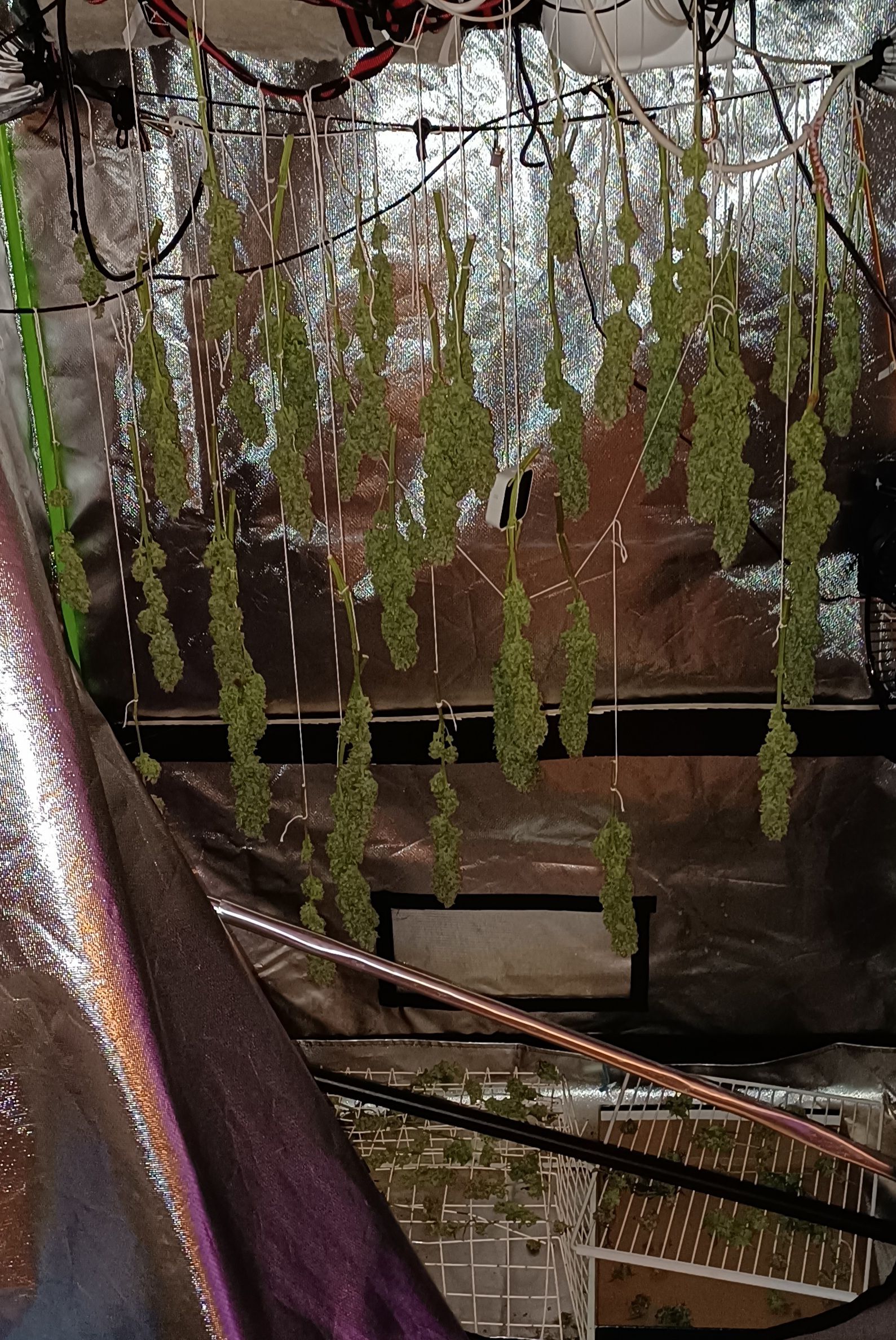 Moin. Die Damen wurden vor 3 Tagen an Tag 96 geköpft und baumeln bei RLF 50% (+/-5%) und ca. 20 °C.In Bodennähe trocknen Popcorn und Minibuds die dann mit den Schnittresten für die Butter genutzt werden Wo bekomm ich denn so ein Käsetuch her. Gibt es hier nirgends im Handel. Ich überleche so ein Baby-Spucktuch zu nehmen. Habs in der Vergangenheit auch mal mit nem Küchentuch gemacht will aber diesmal das Butter herstellen optimieren. Es gibt übrigens Nachwuchs . 4xAuto Fat Blueberry von Linda. Die kommen unter dier 200 Watt sobald ich mit dem Trocknen durch bin.