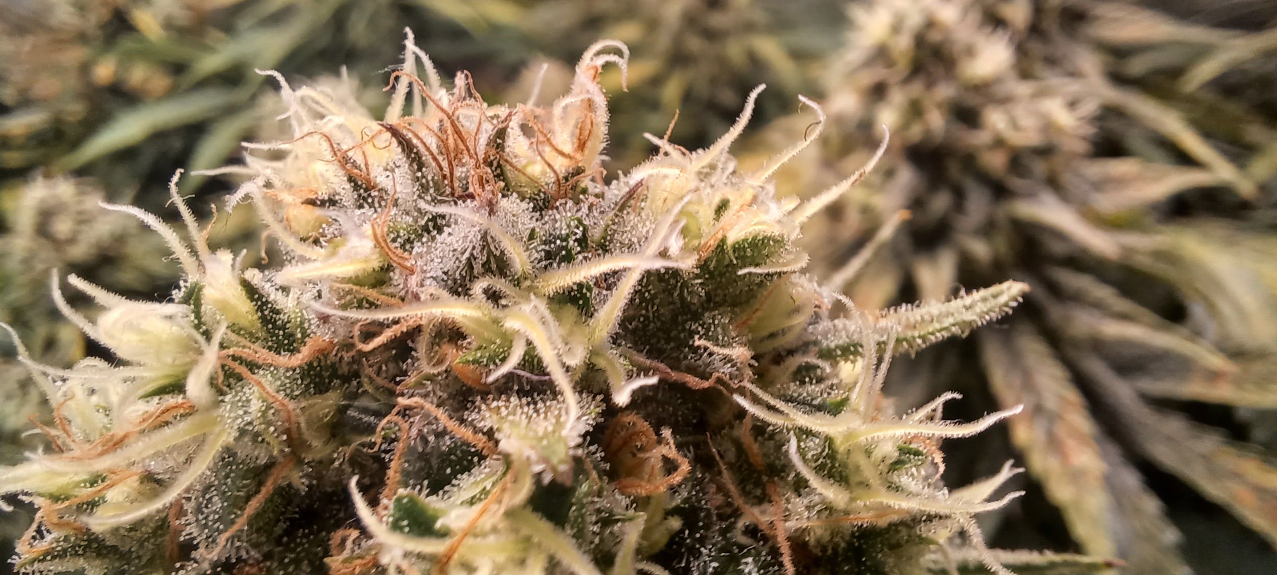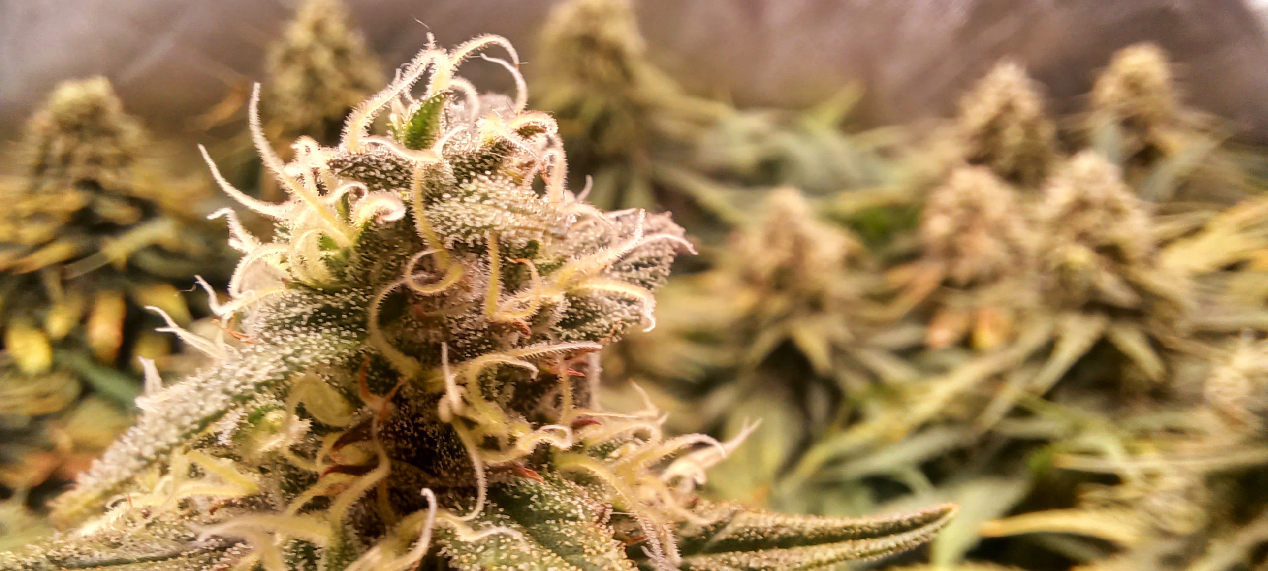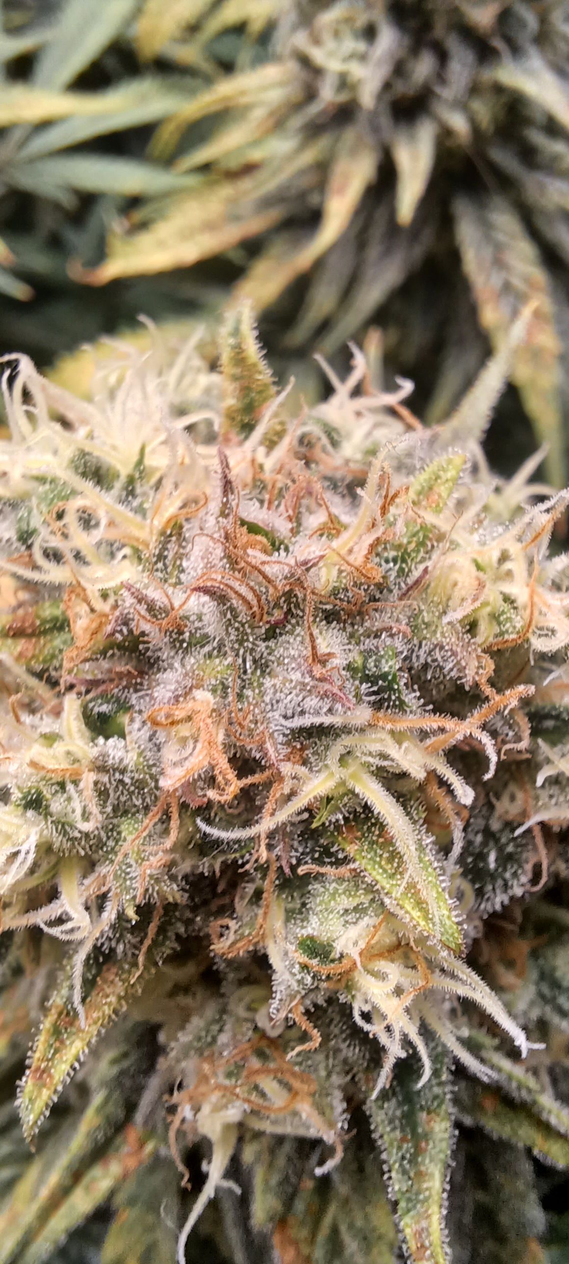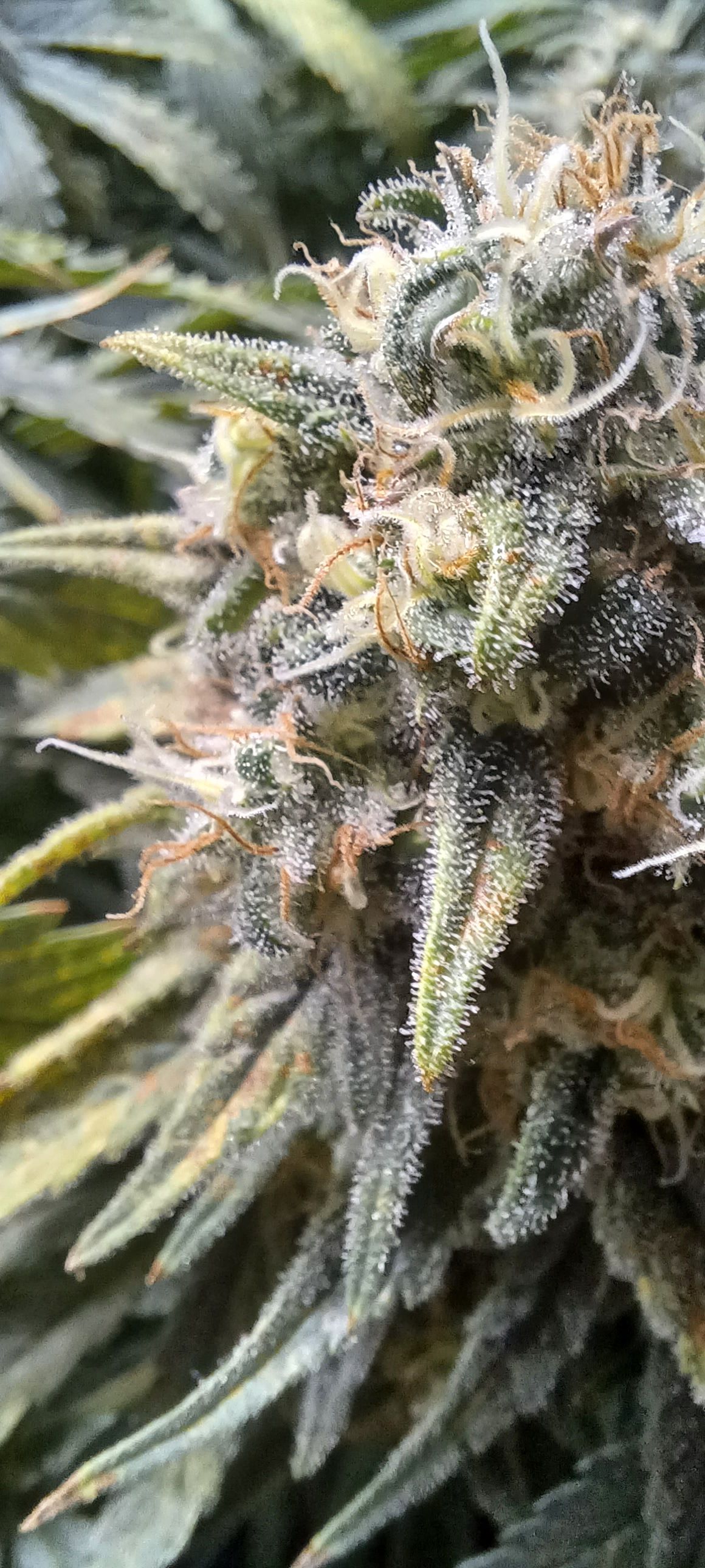 Moin. Eben wurde gegossen. 3L pro Pflanze ohne Nährstoffe. Ich denke es ist bald soweit. Sehe schon wie es stellenweise milchig wird. Was meint ihr so nach Gefühl? Wie lange noch? Versuche gleich noch mehr Lupenaufnahmen zu bekommen