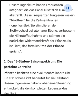 Photonen-Ausbeute: Durch die Reduktion auf lediglich 8,75 Watt pro Chip arbeiten die LEDs in ihrem absoluten Effizienz-Maximum (ÎŒmol/Jmu m o l / cap Jđđđđ/đœ). Der thermische Stress fĂŒr die Halbleiter wird minimiert, was die Lichtmenge pro Joule maximiert.
