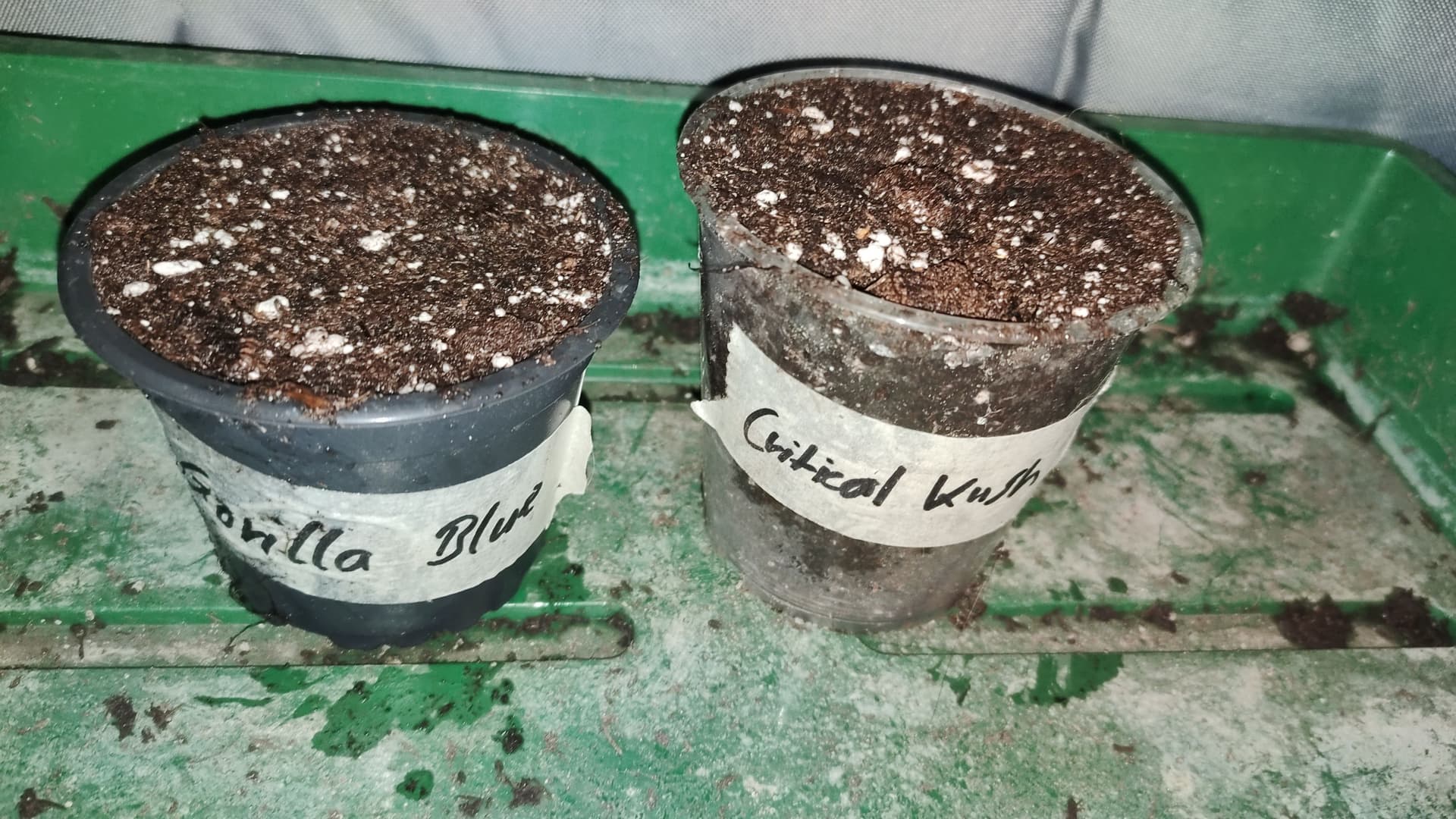 Gerade eben habe ich zwei Samen für die Keimung vorbereitet. Ich habe mich bei meinem ersten Grow für die Strains Gorilla Blue (Advanced Seeds) und Critical Kush (Barneys Farm) entscheiden.