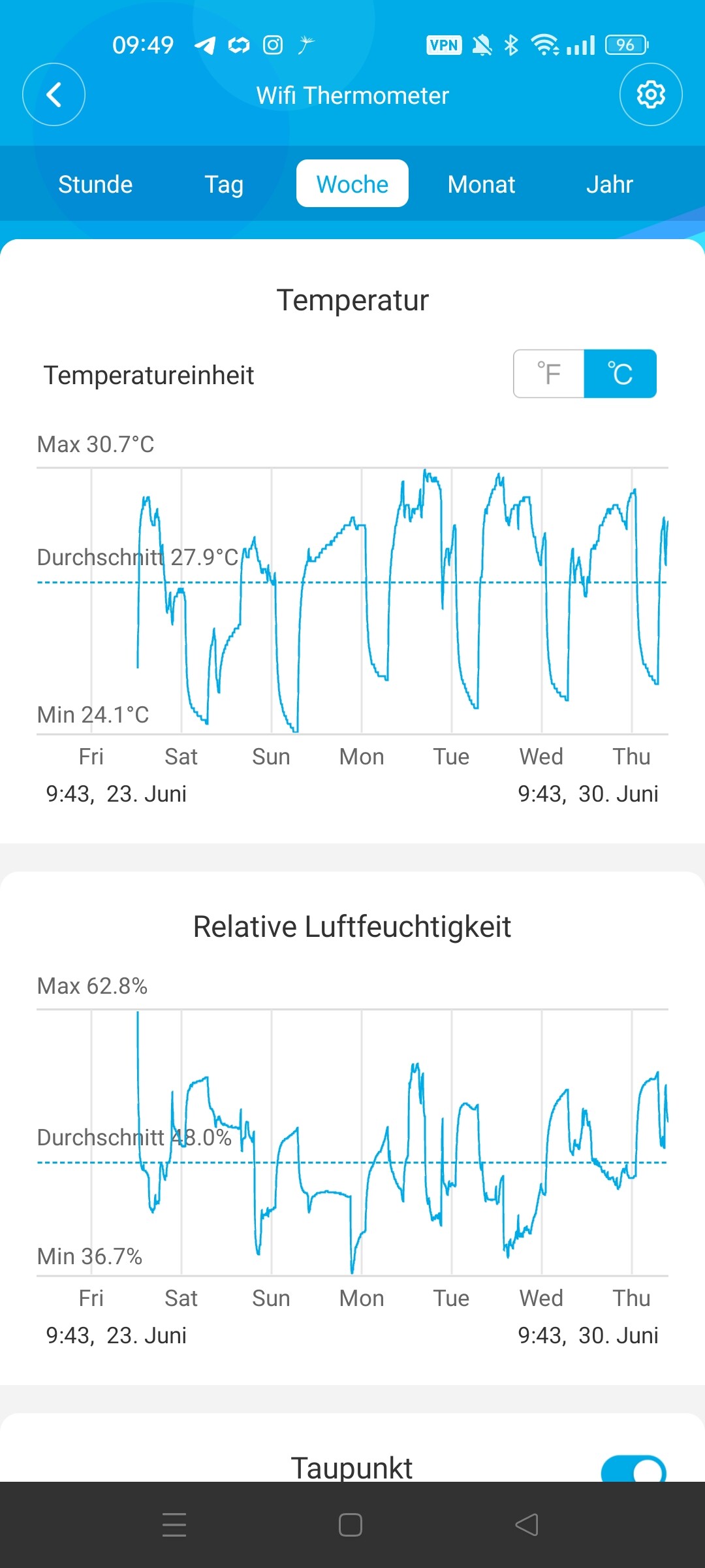 Das stimmt, einen Entfeuchter nicht aber hatte mal nen Ventilator auf voller Stufe + Fenster auf am laufen. Danach ging die RLF in den Keller.