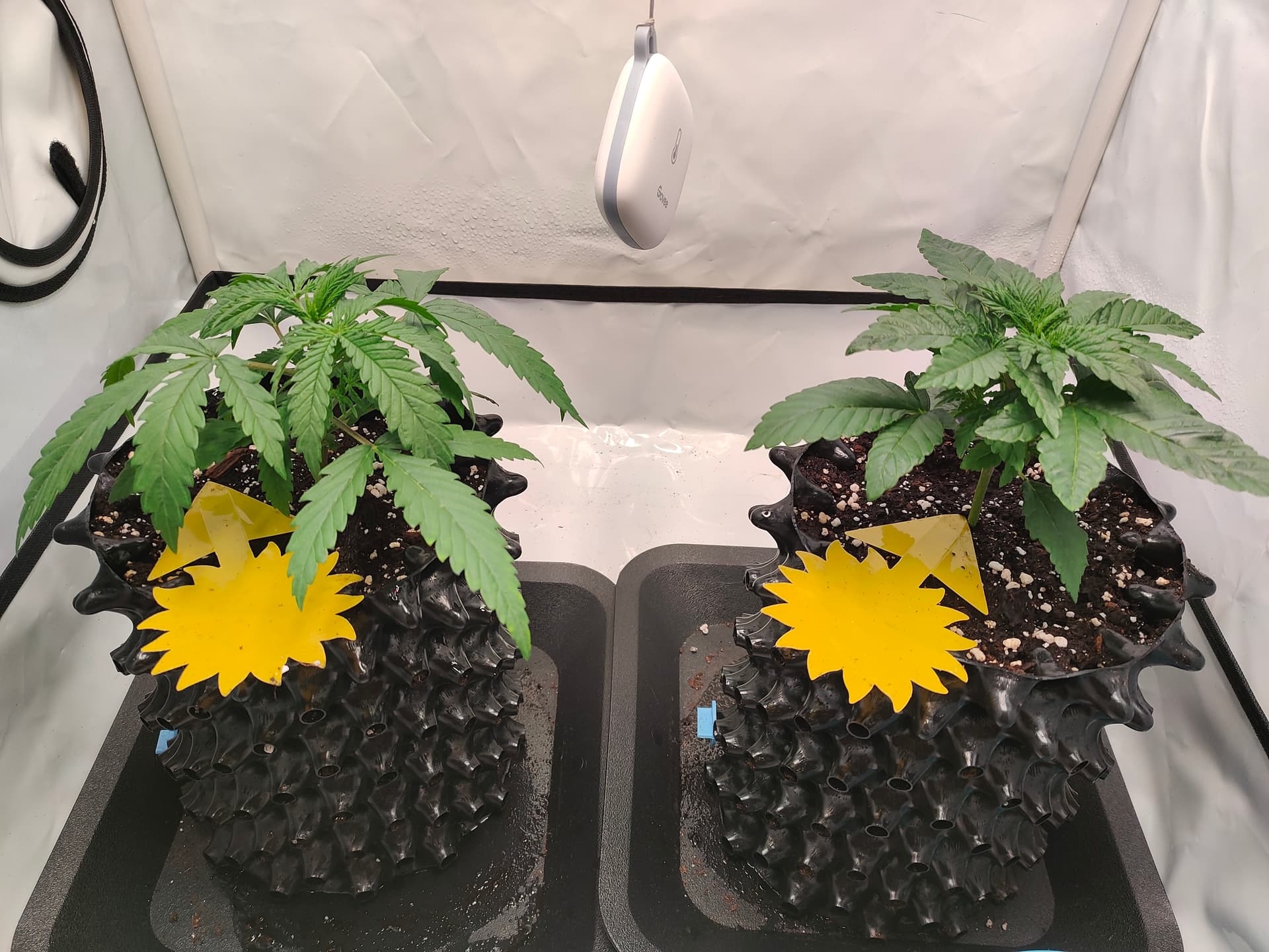 Ich denke ich lasse sie noch ein paar Tage in den 3L Airpots stehen, bisher sind am Boden oder in den Löchern noch keine Wurzeln zu sehen, die „raus“ wollen.