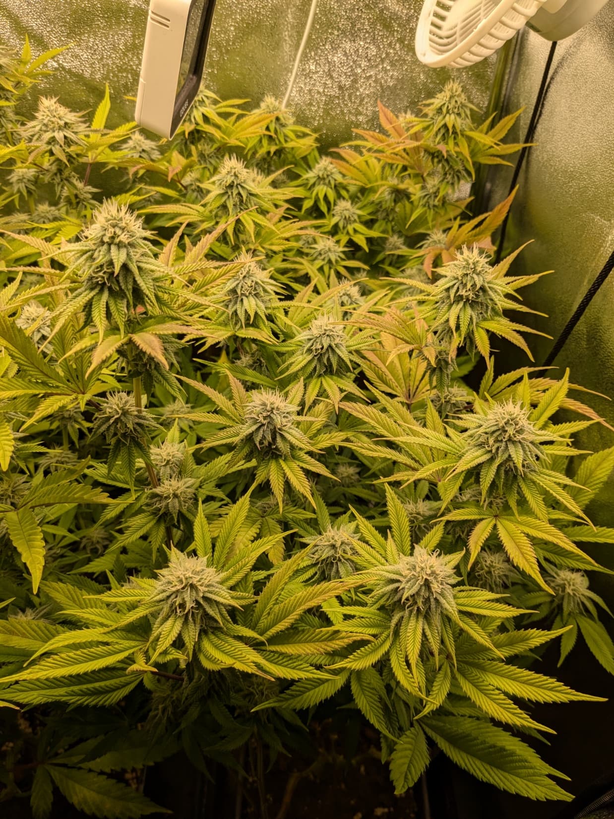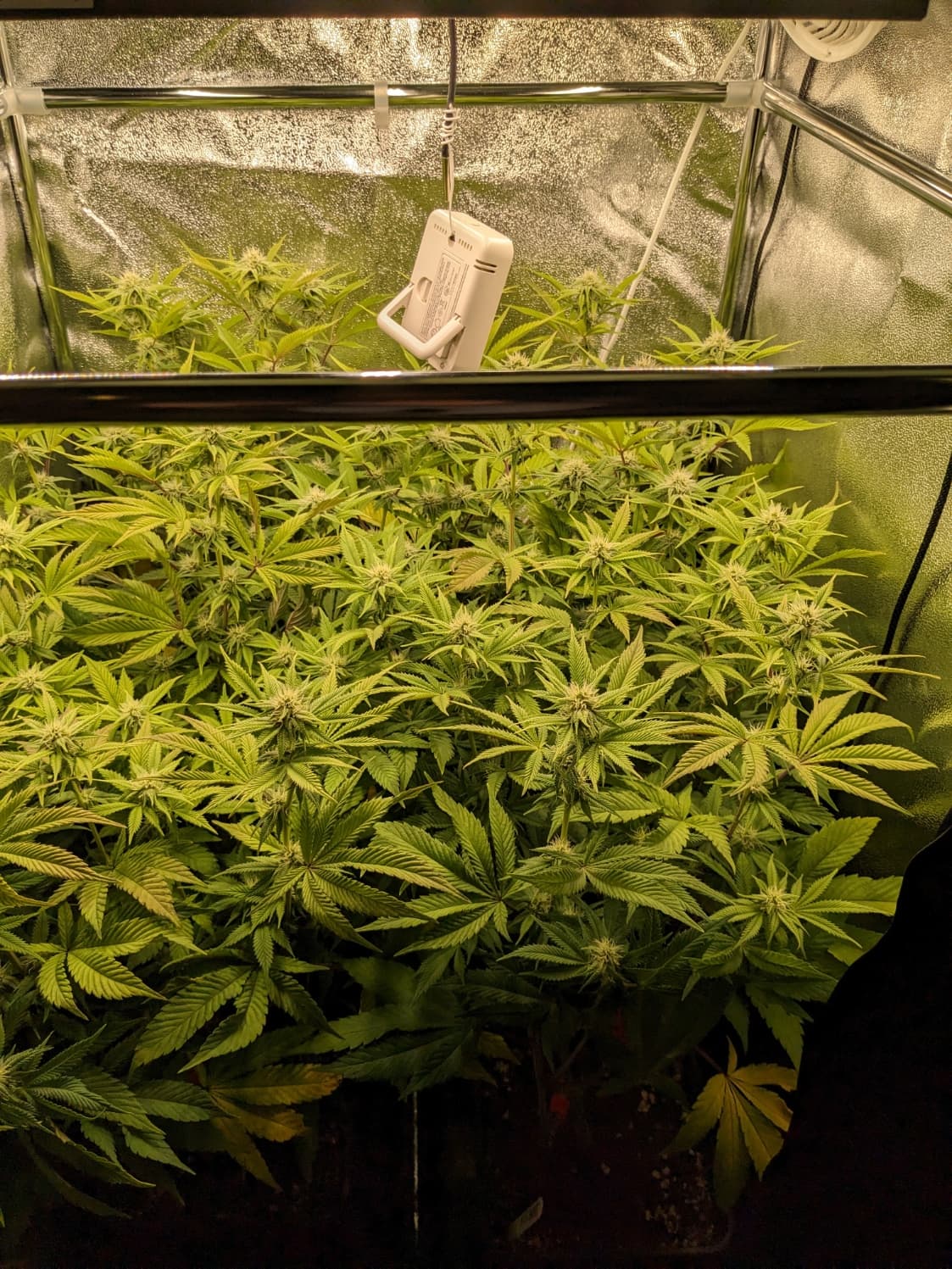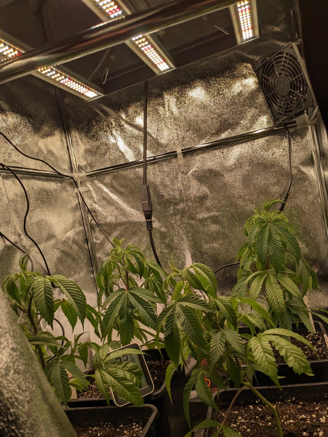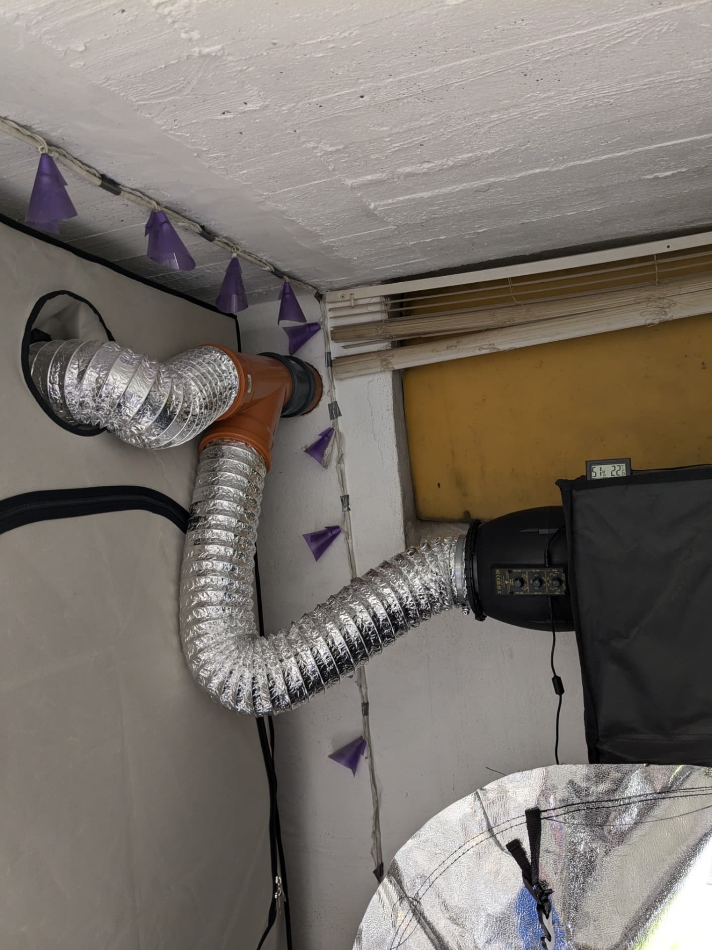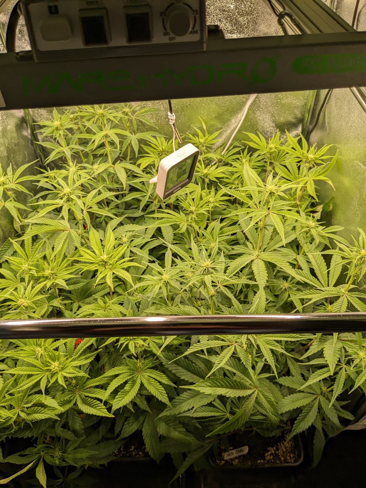 Dank der Mars Hydro ist endlich mal Wärme in das Zelt gekommen, zum Vorteil beim Keller Grow. Sie läuft im mom auf 50 %.