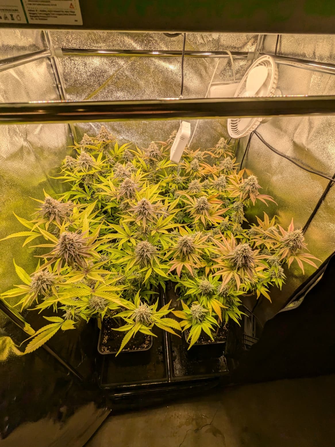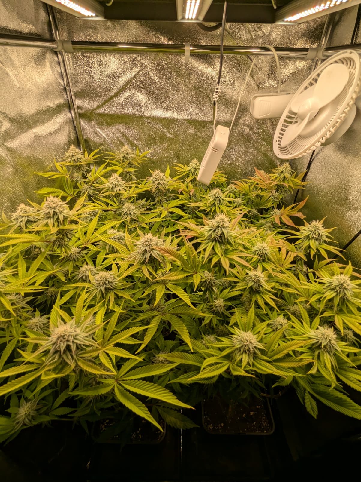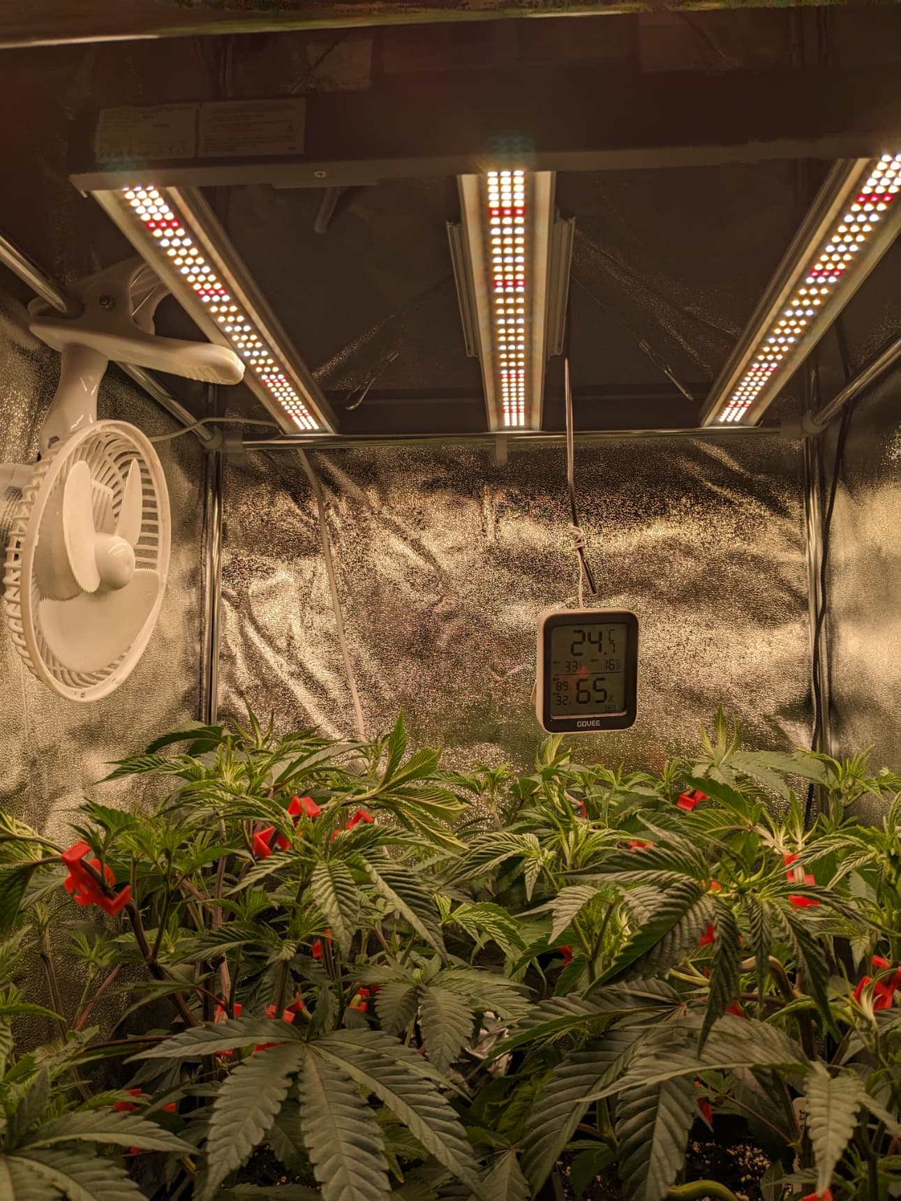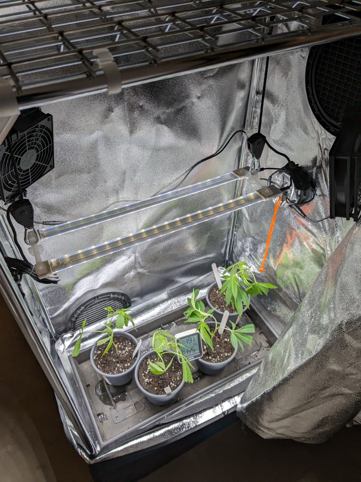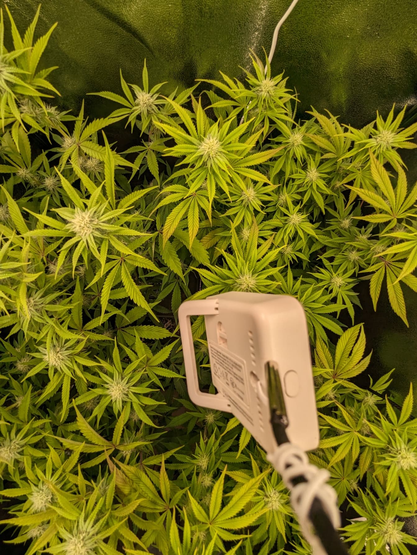 Dank der Mars Hydro ist endlich mal Wärme in das Zelt gekommen, zum Vorteil beim Keller Grow. Sie läuft im mom auf 50 %.