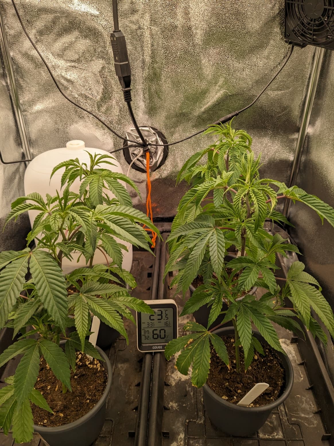 in das 60x60x160 Zelt mit der Mars Hydro Fc1500 Evo umgezogen. Da der All Mix gut vorgedüngt ist habe ich heute nur CalMag 0.80 pro L und 0.08 Mag pro L dazu gegeben. Jede Pflanze habe 2 L Wasser gegeben. Zum weiteren Gießverhalten wende ich dann die 1/3 Regel an.