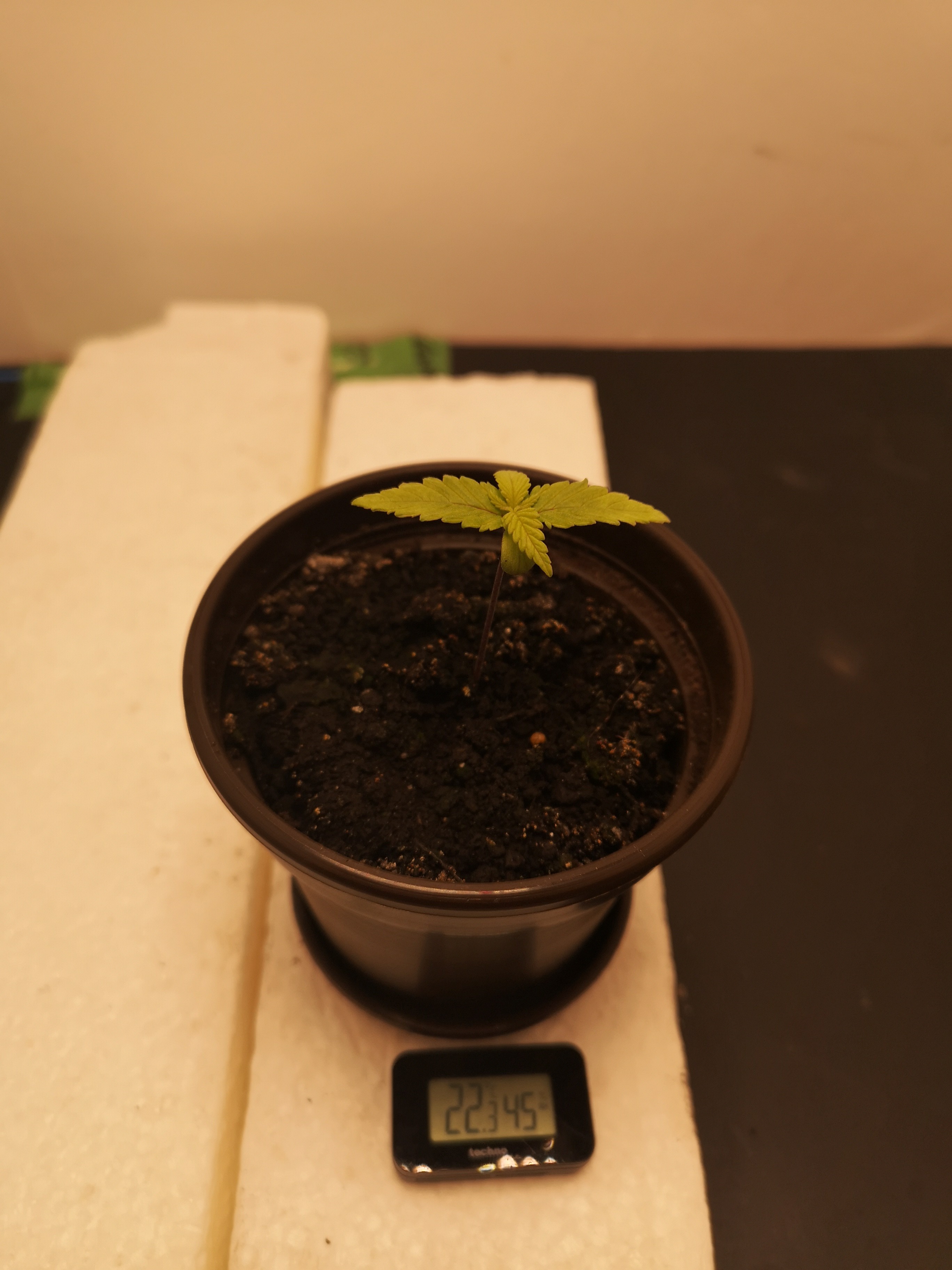 Einer der komplett gespülten wurde mit 1ml Hesi aufgedüngt. Dann kamen vorgekeimte Babys da rein.