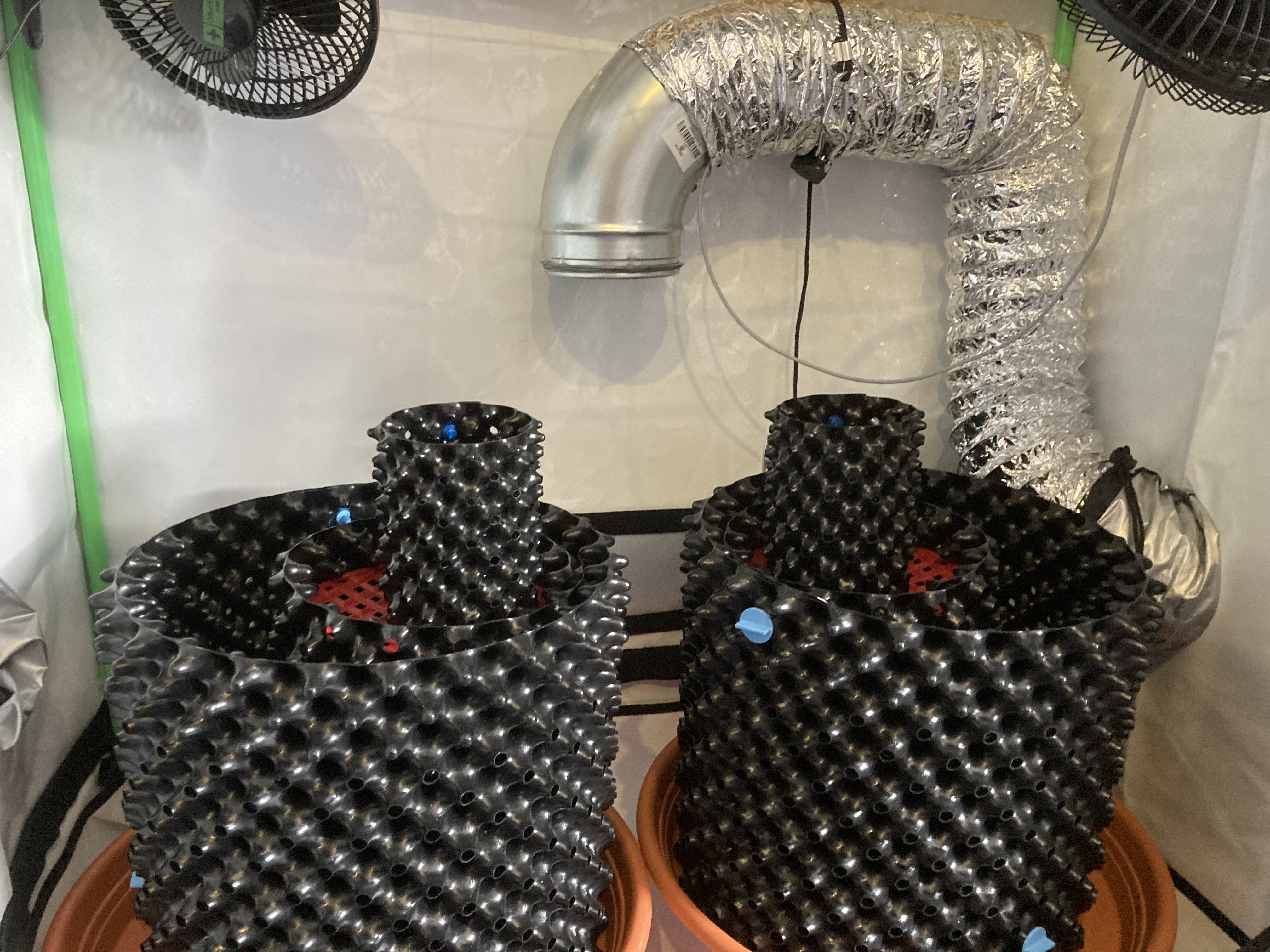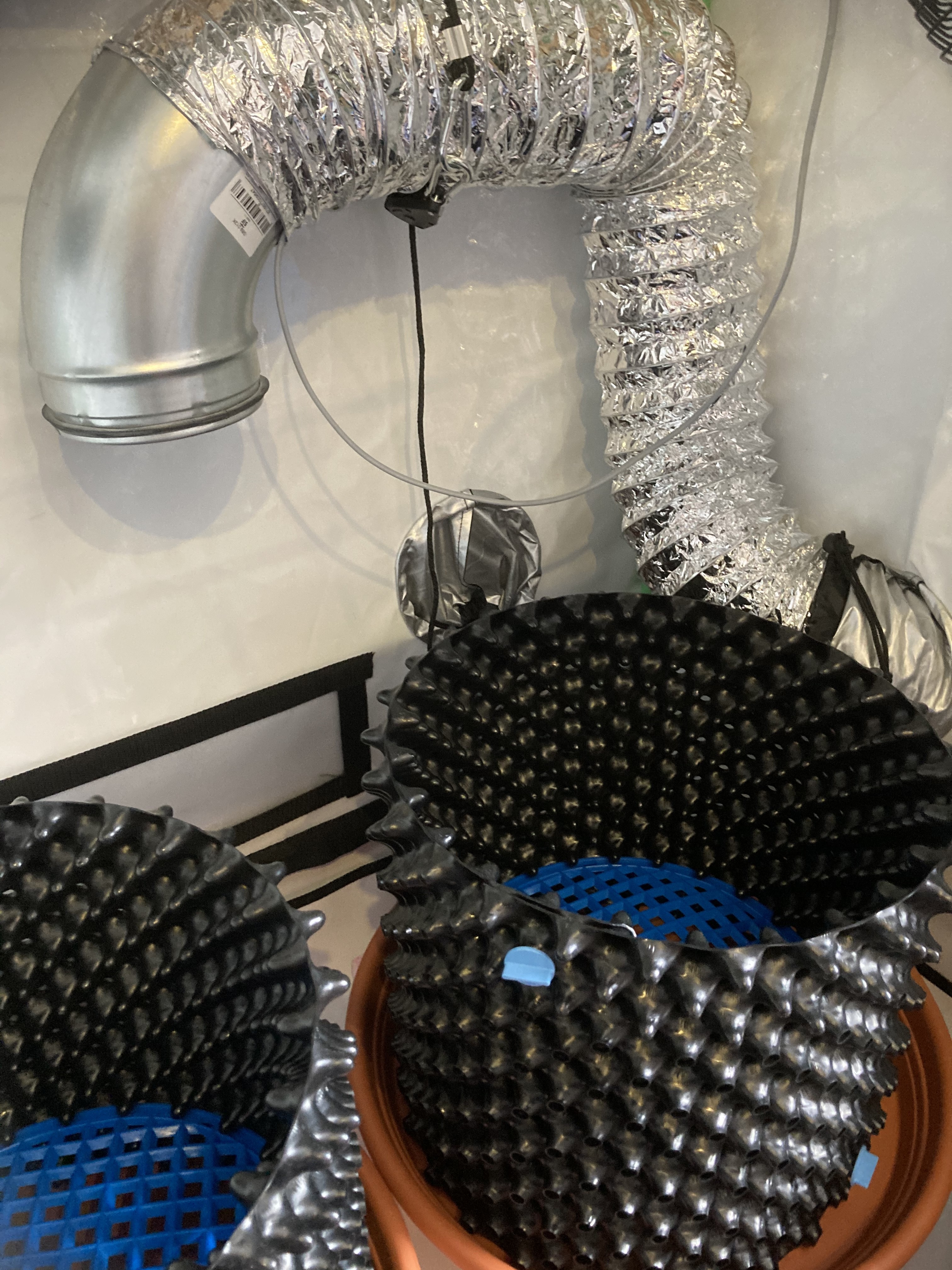 Kann man problemlos so machen mit der Zuluft oder? Ist die Stelle rechts am rechten Topf potentiell nicht gut für die Wurzeln oder liegt der Schlauch hoch genug schon?