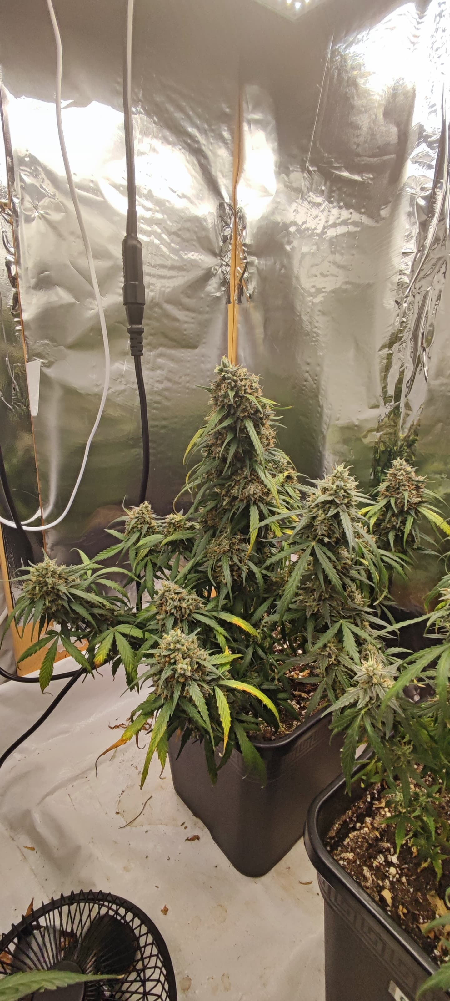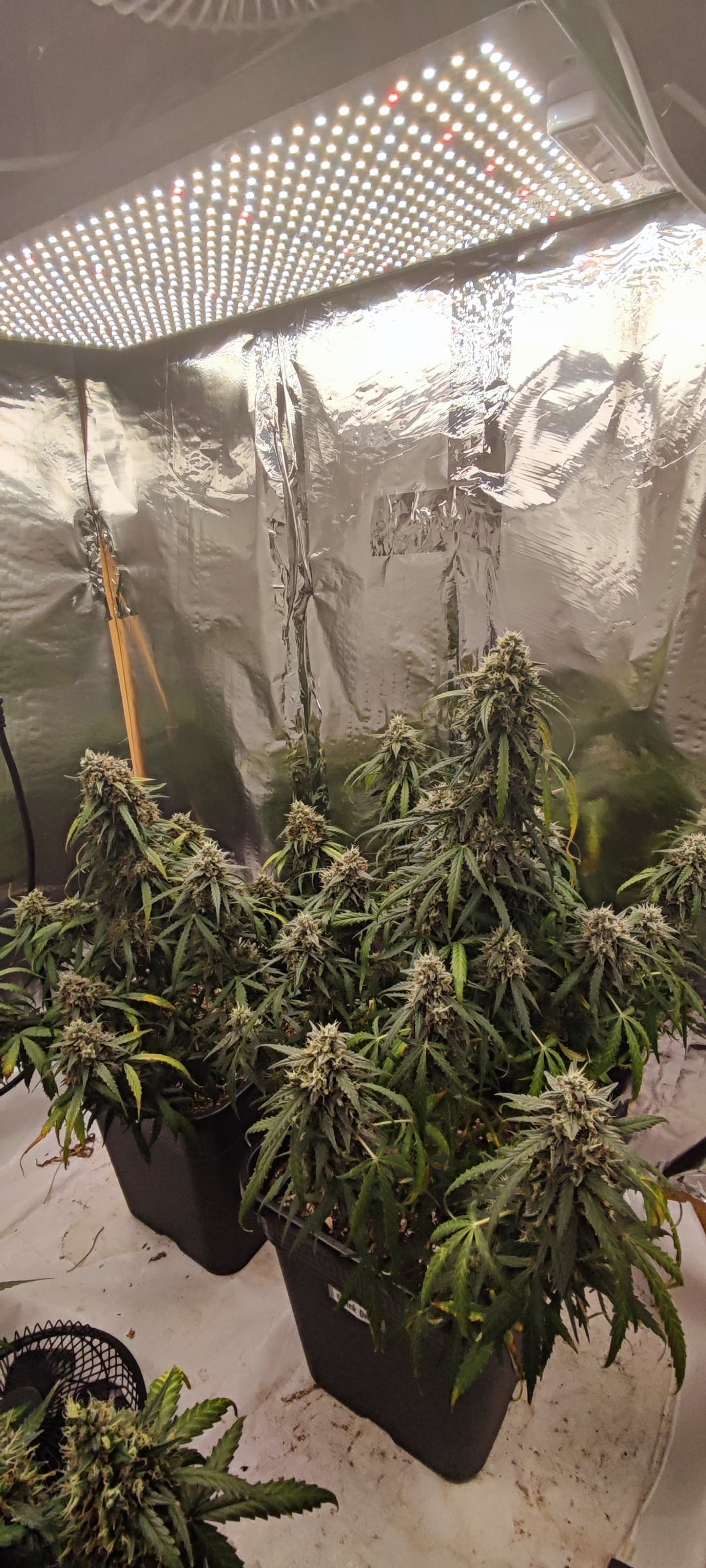 Die Buds sind die letzte Woche nochmal eine stufe fetter geworden, sie hängen mittlerweile zum teil auch Richtung Boden , ich habe die Quick Ones echt zu lieben gelernt, extrem kleine Pflanzen, schnelle Blütedauer, extrem viele und Dichte Buds und warscheinlich mit einer der leichtesten Strains die es überhaupt zum anbauen gibt.