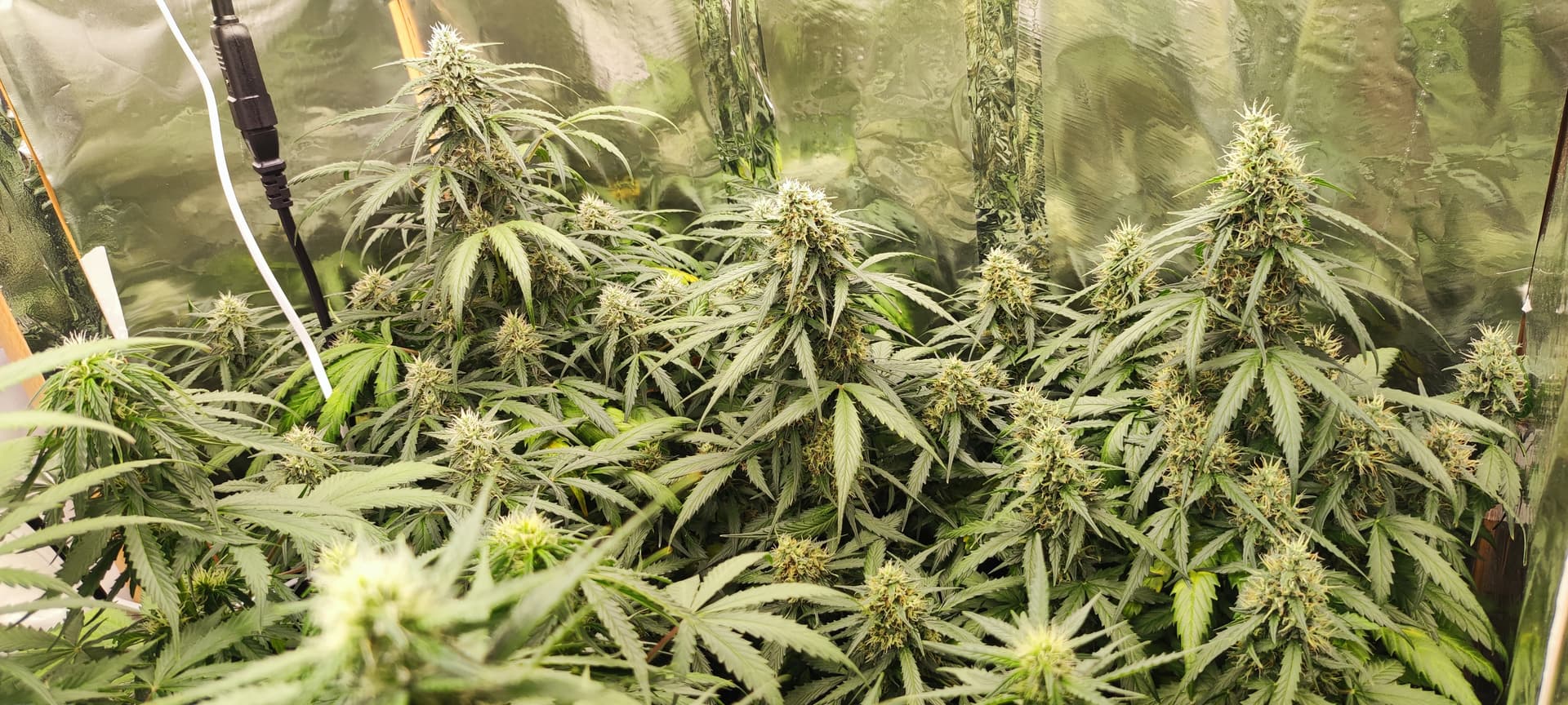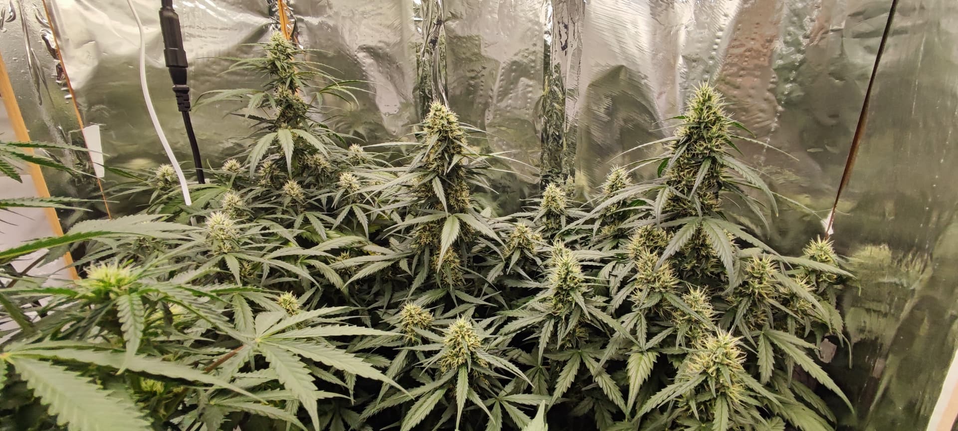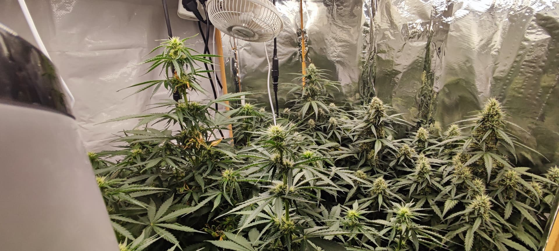 Die Pflanzen schätze ich brauchen jetzt noch ca. 6 Wochen für die Blüte, wenn ich ehrlich bin finde ich den Grow bisher recht langweilig, es gibt einfach nicht viel zutun, außer alle paar Tage Wasser zu geben, für einen Sommergrow und das absolute Minnimum läuft er aber bisher prächtig.