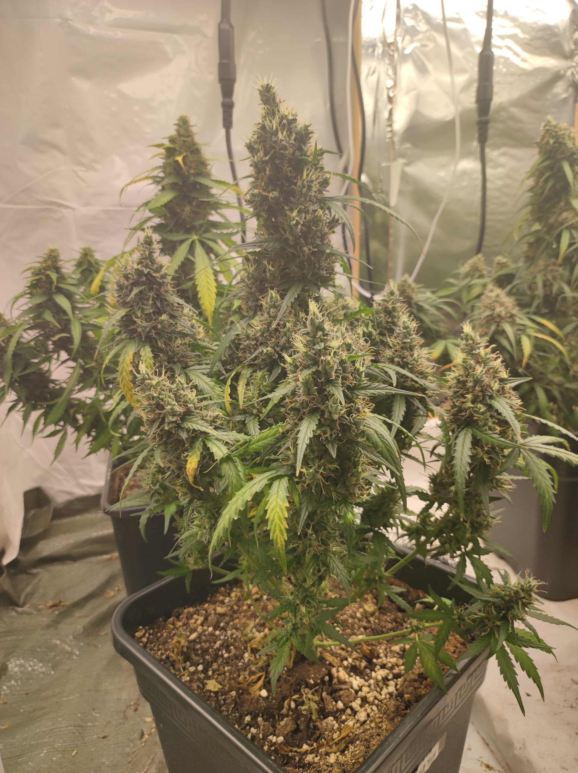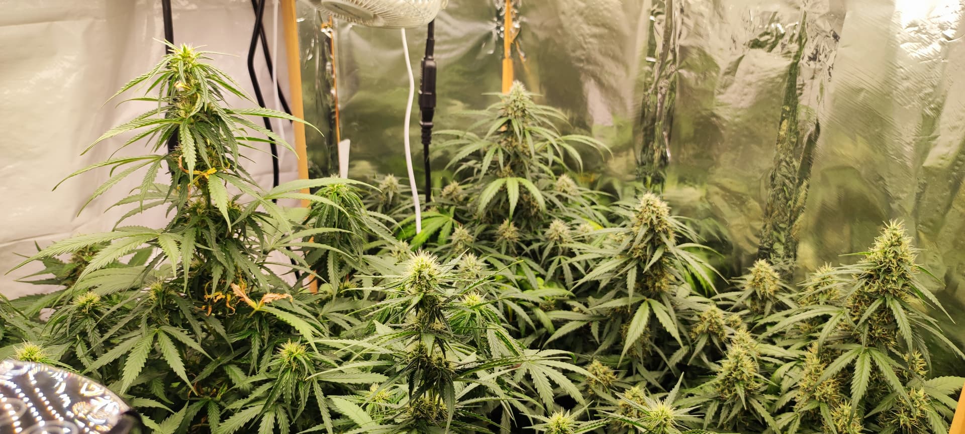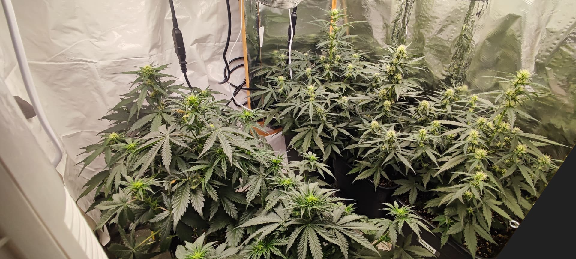 Die Pflanzen schätze ich brauchen jetzt noch ca. 6 Wochen für die Blüte, wenn ich ehrlich bin finde ich den Grow bisher recht langweilig, es gibt einfach nicht viel zutun, außer alle paar Tage Wasser zu geben, für einen Sommergrow und das absolute Minnimum läuft er aber bisher prächtig.