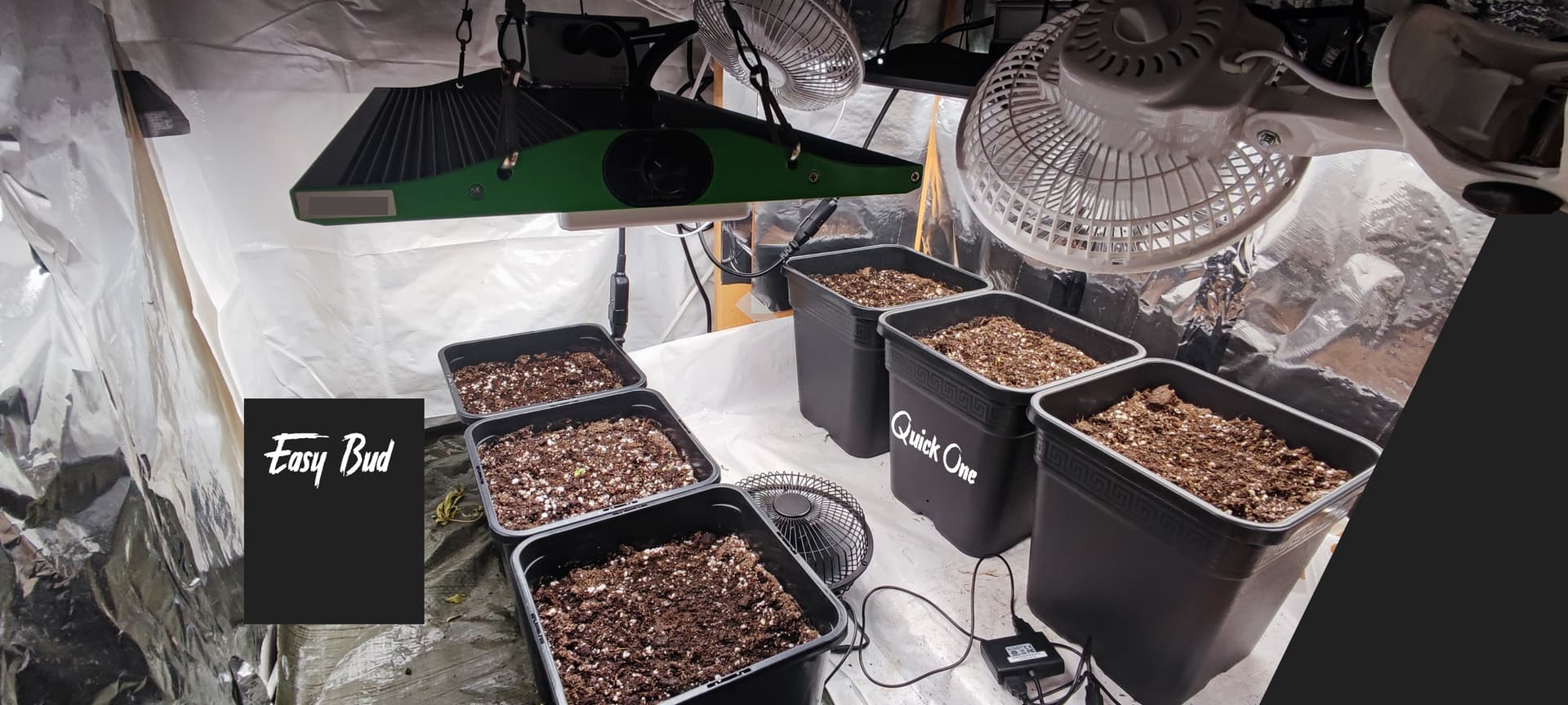 Es sind 3x Easy Bud und 3x Quick One, um es nochmal ein klein wenig Interressanter zu machen wird das ganze diesmal Outdoor auf dem Balkon gegrowt mit Biotabs.