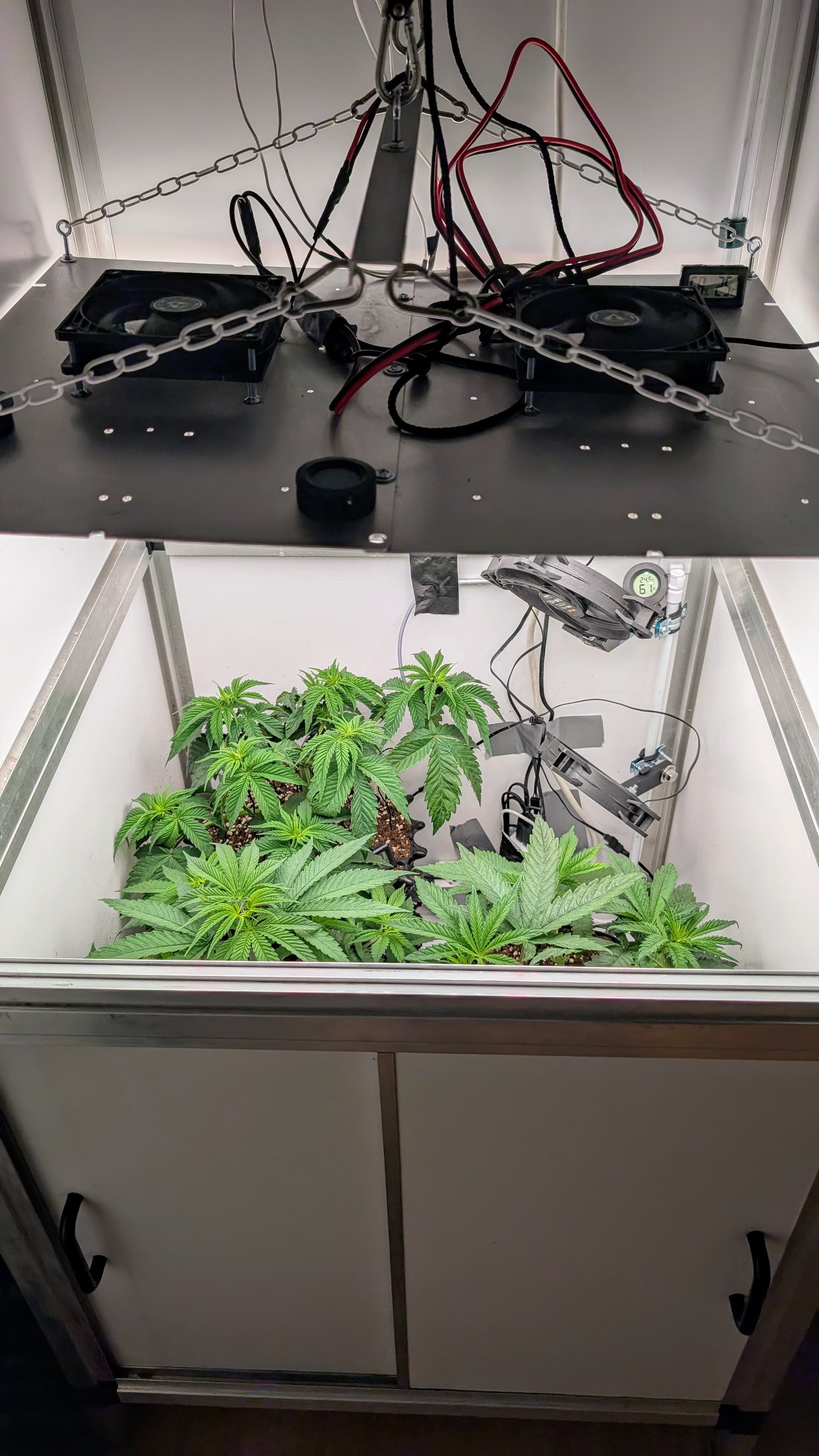 Zusammen mit der Ab- und Umluft liegt die Leistung aktuell bei 56 Watt. Die Abluft bräuchte ich derzeit zwar noch gar nicht, aber die Trockenbox steht im selben Raum. So hält sich der Geruch derzeit in Grenzen ![]()