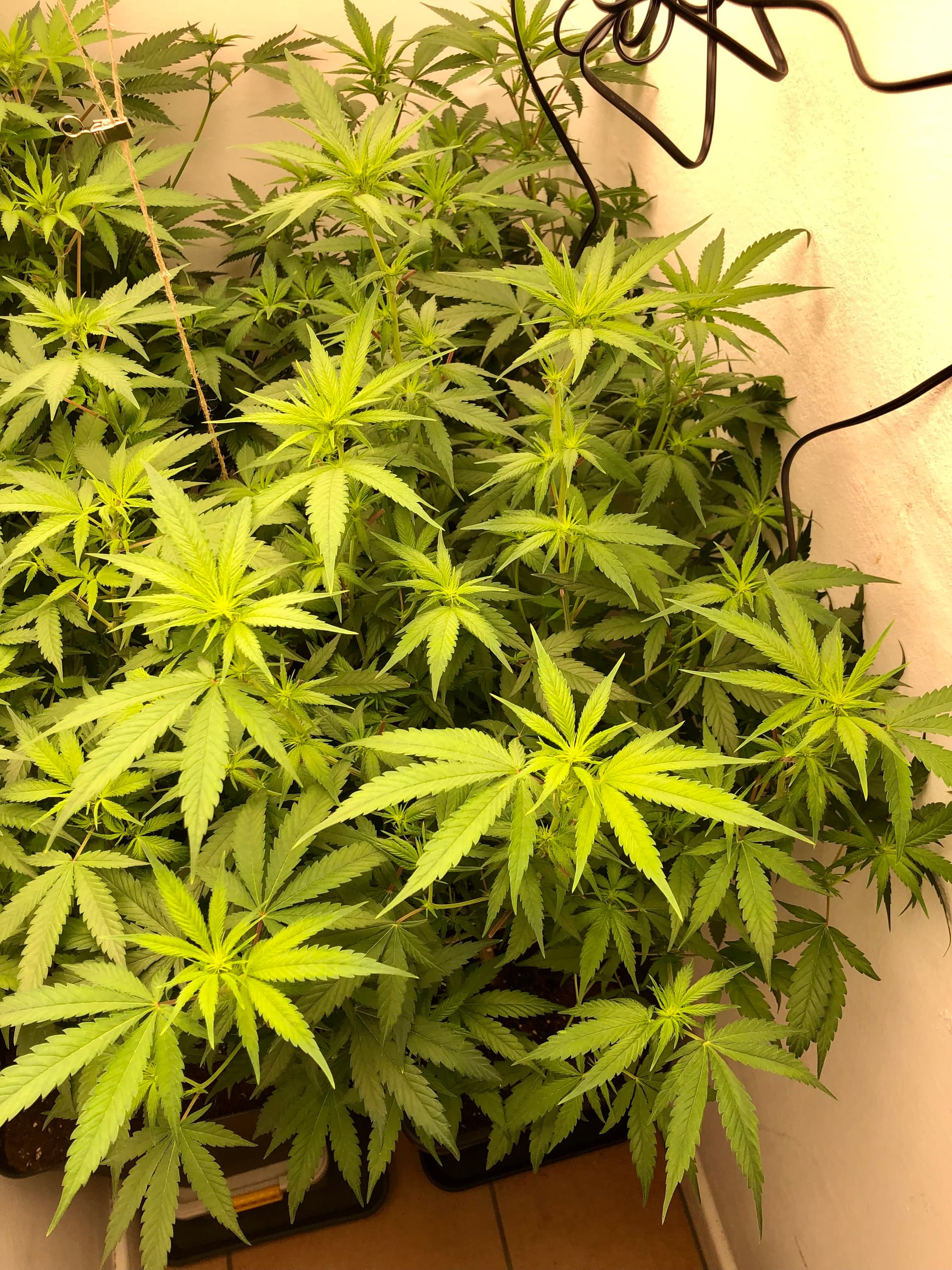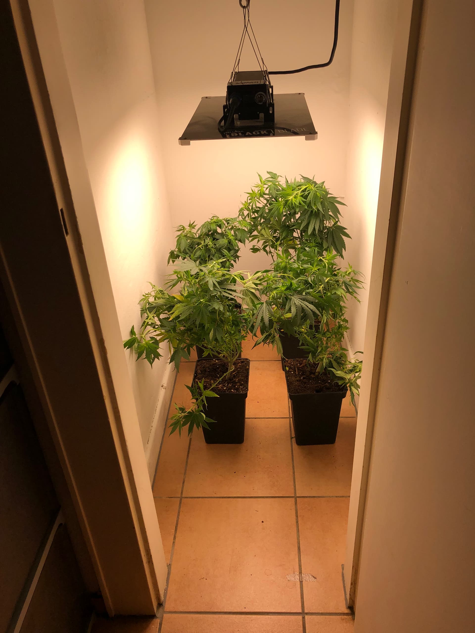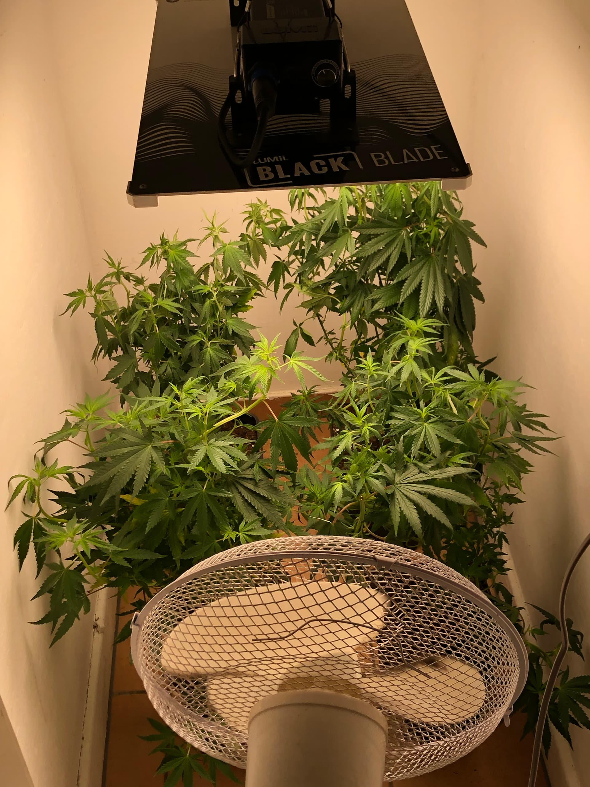 Wie schon beim vorigen Grow fand die Keimung und Vegi bei einem befreundeten Grower statt. Dies war allerdings auch vorerst das letzte Mal, dass ich das so mache. Meine Wünsche nach früh getoppten Pflanzen wurden „vergessen“, die Pflanzen statt dessen laienhaft zur Seite herunter gebunden aber nach Außen zu den Zeltwänden hin im 60x60 Anzuchtzelt wo eh kein Platz zur seitlichen Ausbreitung vorhanden ist.