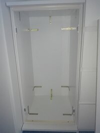 Danke doperino habe deine Idee mit den Schrankmagneten auch im Kopf.Mein Schrank ist 2 türig und ich habe mir Spannplatte im ganzen(90×175) zuschneiden lassen und die 2 Türflügel mit Montagekleber und Innenseite von Tür mit Schrauben festgemacht.unten kommen Möbelgleiter drunter.Sodas ich komplette Front rausnehmmen kann wenn ran mus.