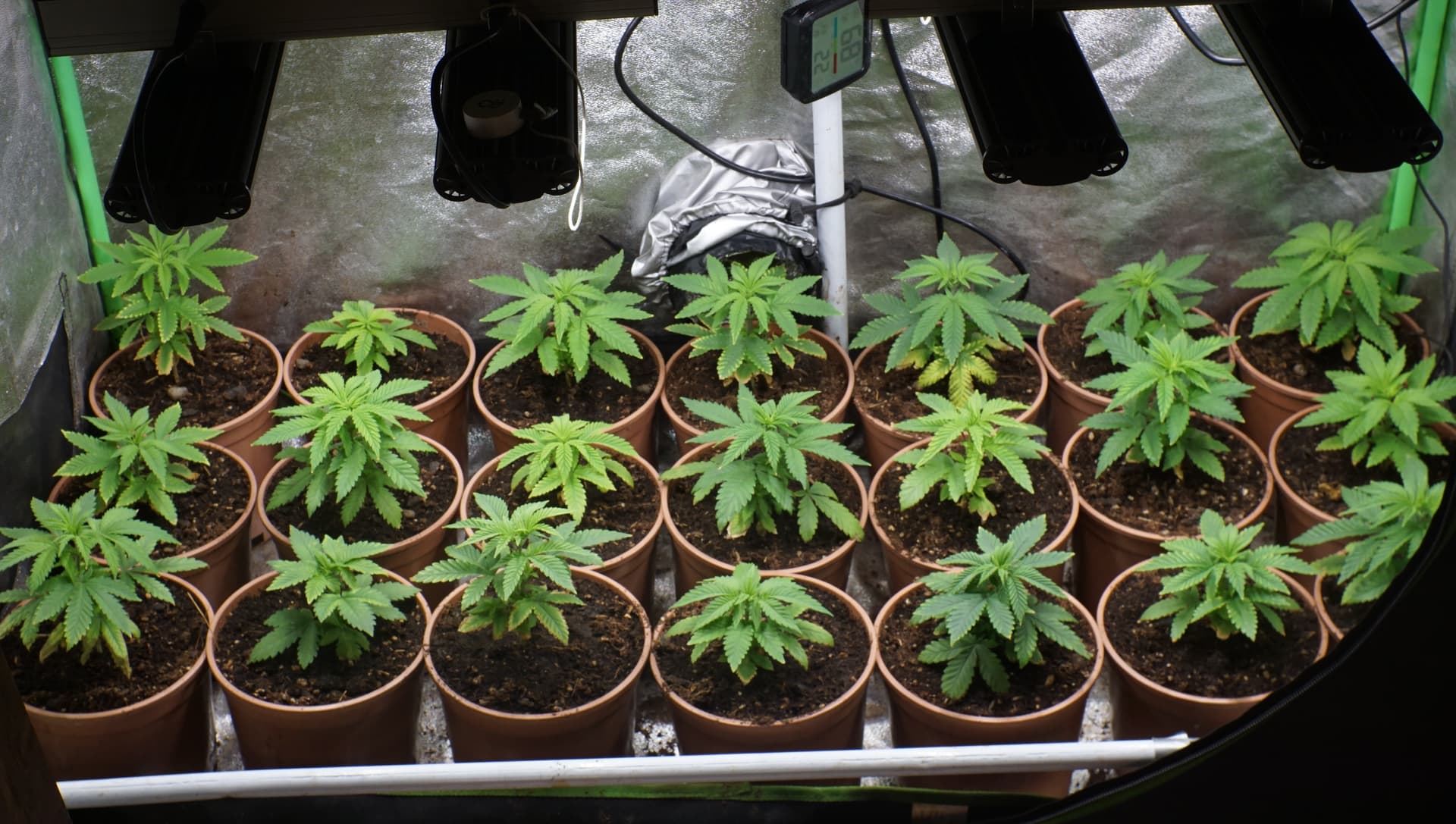 Plan ist: wenn die eine gewisse Grösse erreicht haben, wird auf 12/12 umgestellt, ausser die Vorblüte kommt schon vorher zum Vorschein. Nach dem Outing werden 8-10 Däms selektiert und in 8L Stoffies getopft.