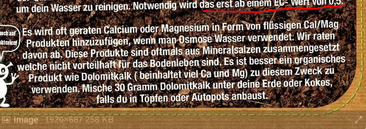 Also empfiehlt Biotabs die Verwendung einer Umkehr Osmose Anlage ab einem ec von 0.5.