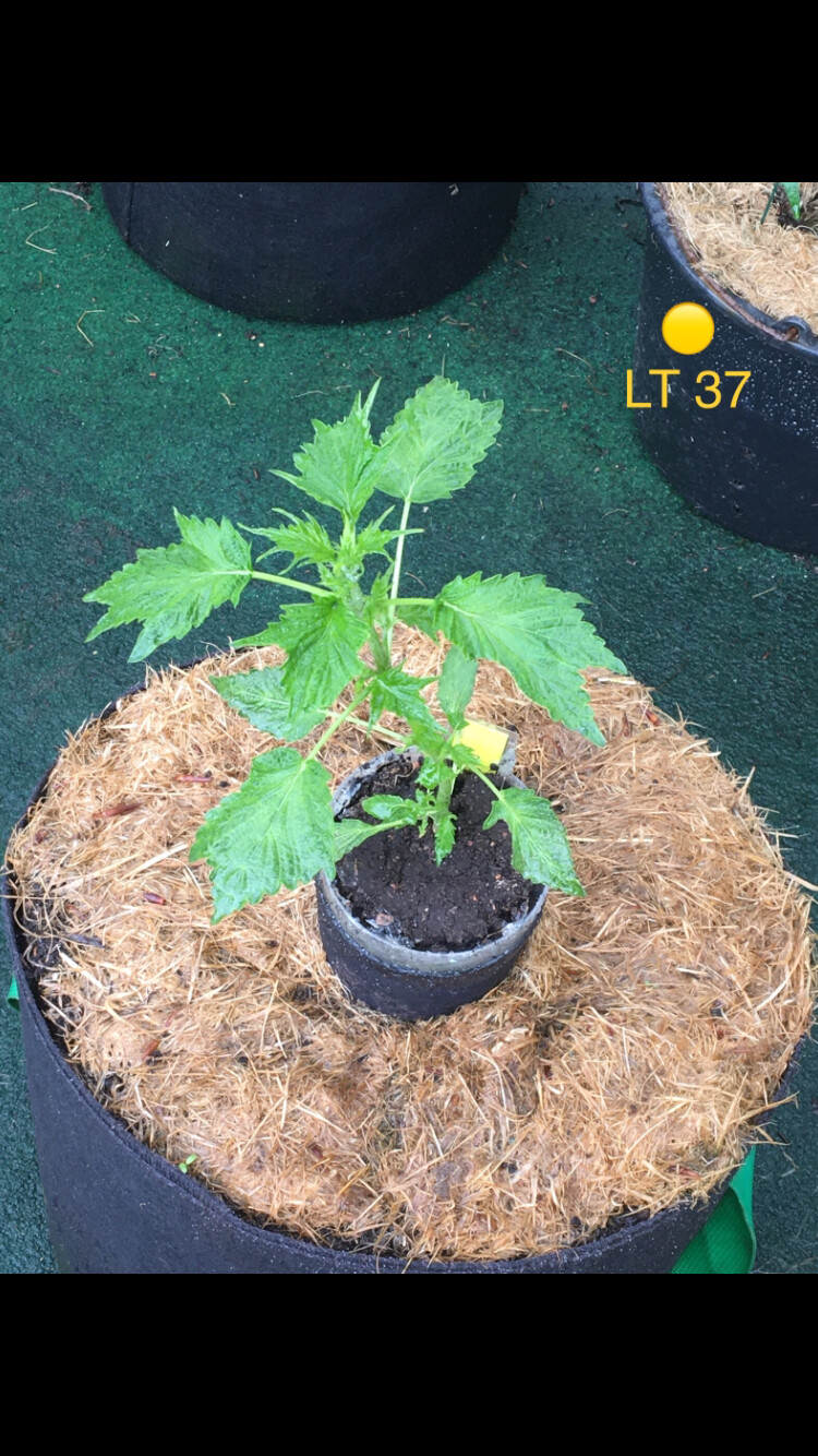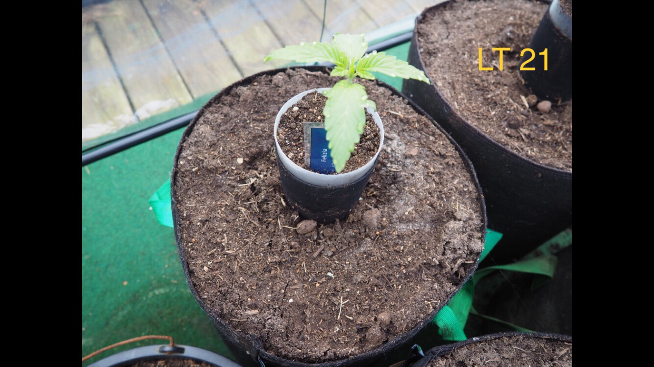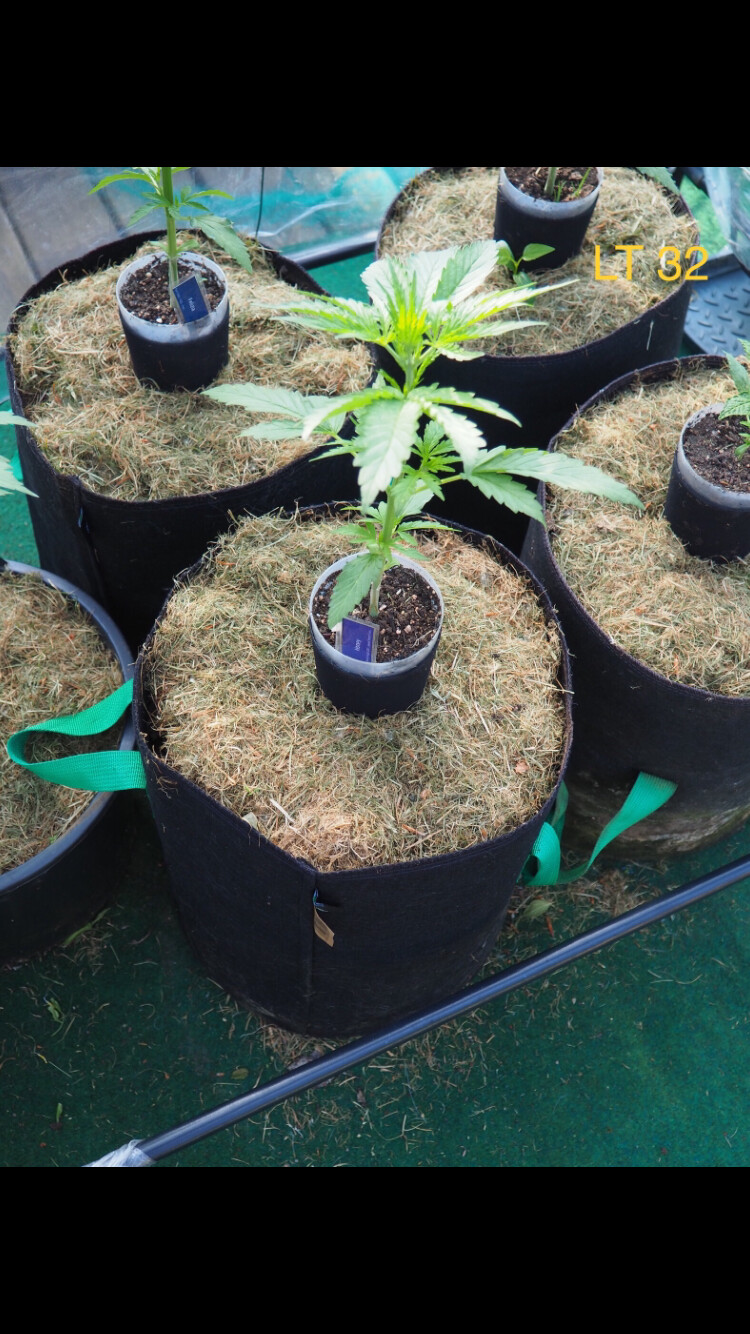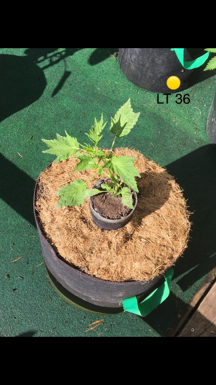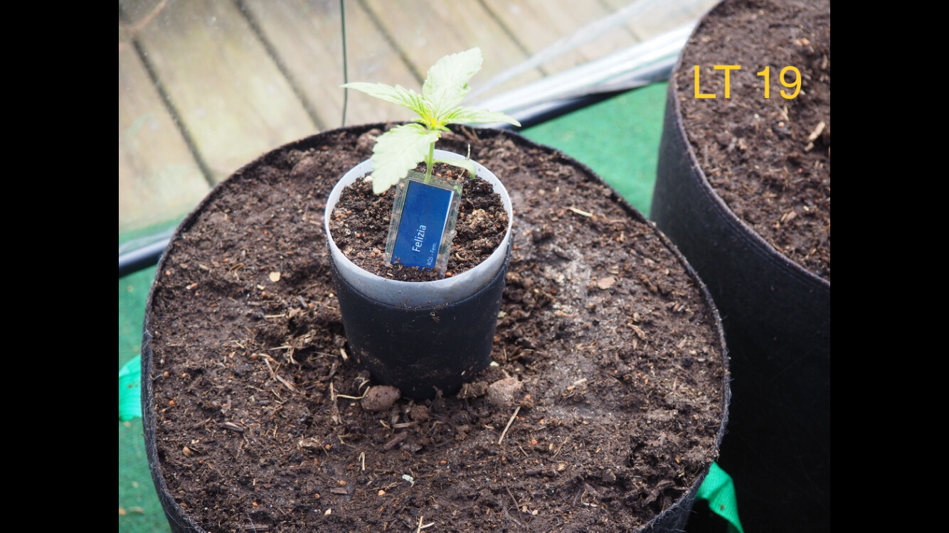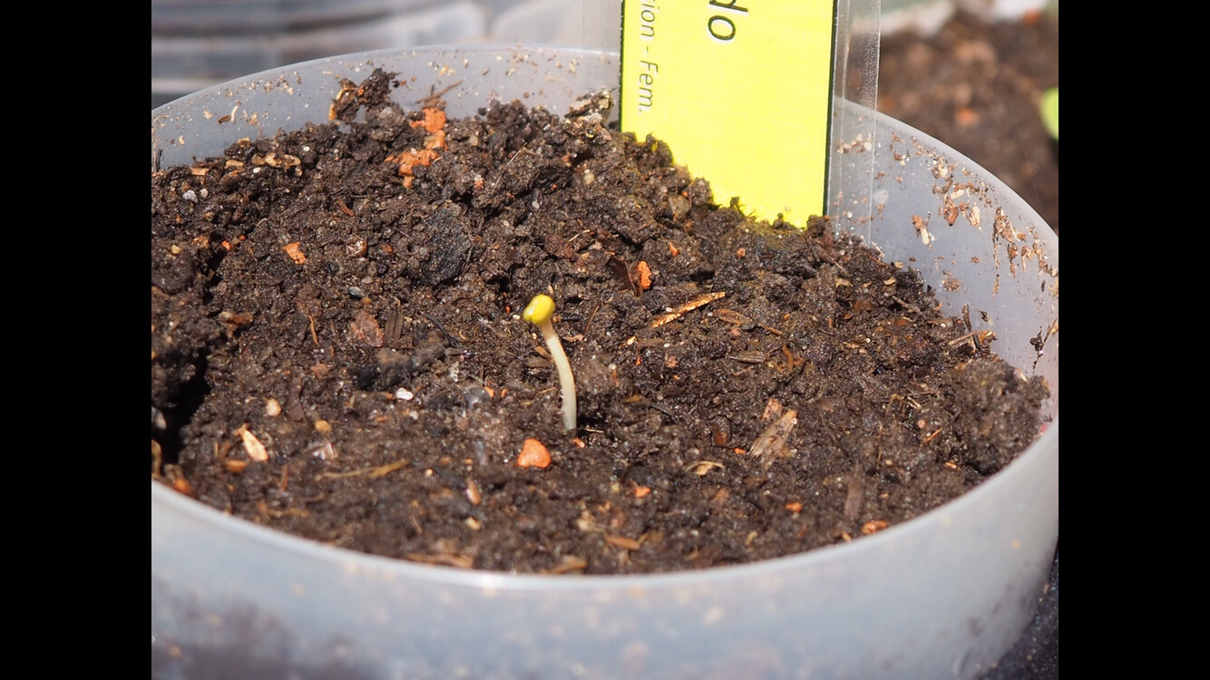 ’s wurden hier Anfang April im Gewächshaus vorgekeimt und ca. 3-5 Tage später in 12/25 Liter Plastikkübel/Stofftopf gesetzt, da ich die Wurzel am Boden der Becher sehen konnte.