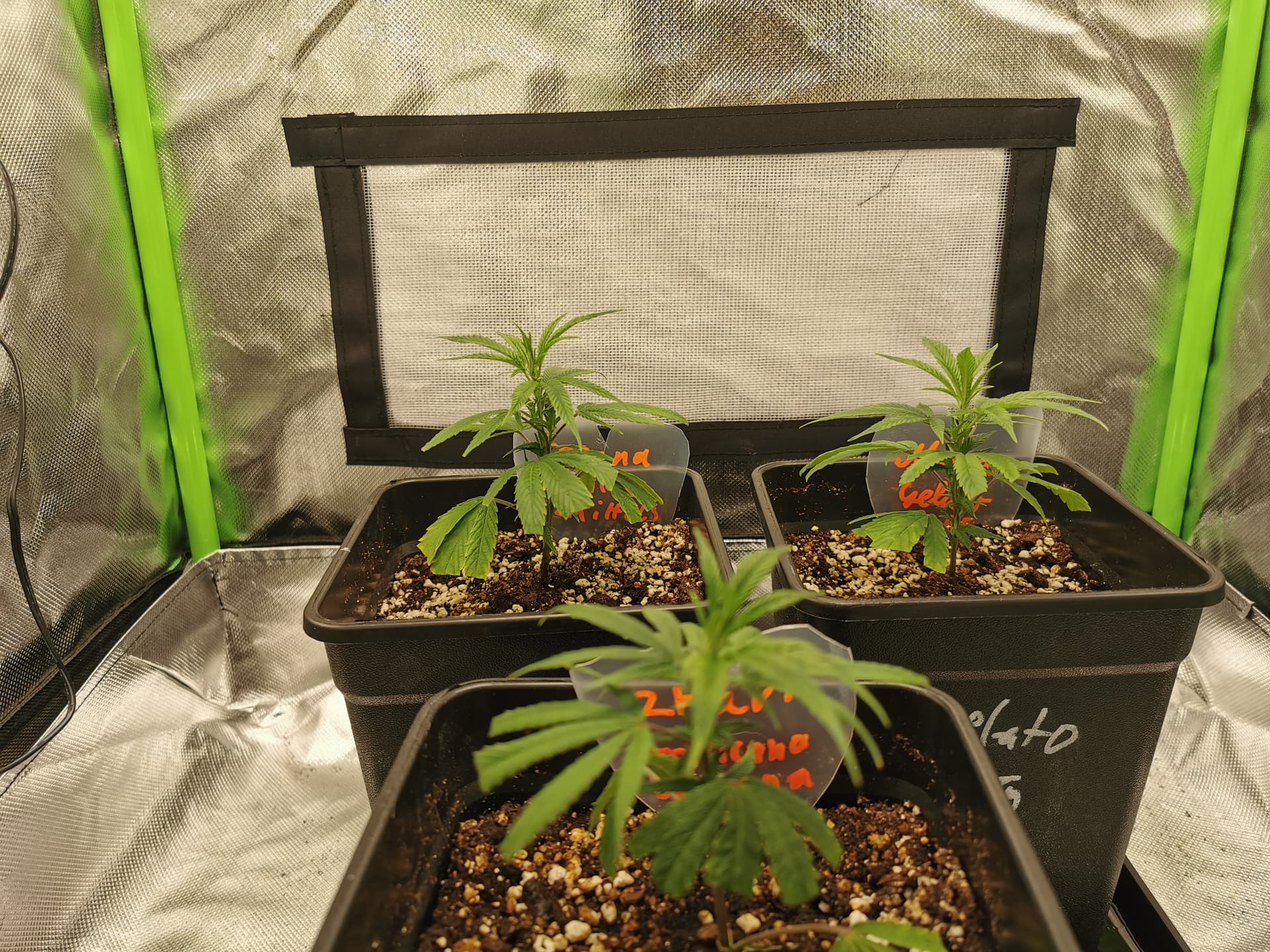 Am nächsten Nachmittag waren Gelato und Zkittels wie gewünscht brav in die Breite gegangen und die Seitentriebe haben seither stetig zugelegt.