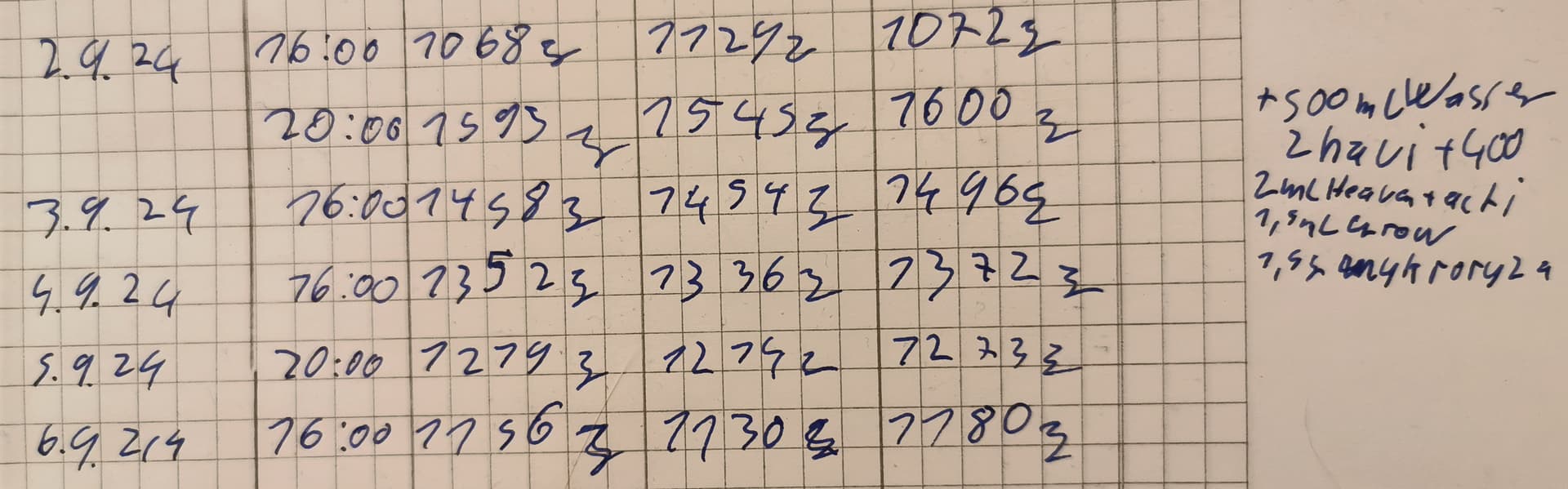 Es gab 2ml Heaven+Activera, 1,5ml Bio-grow und 1,5g Tyroler Glückspilze, auf 1,5lWasser.