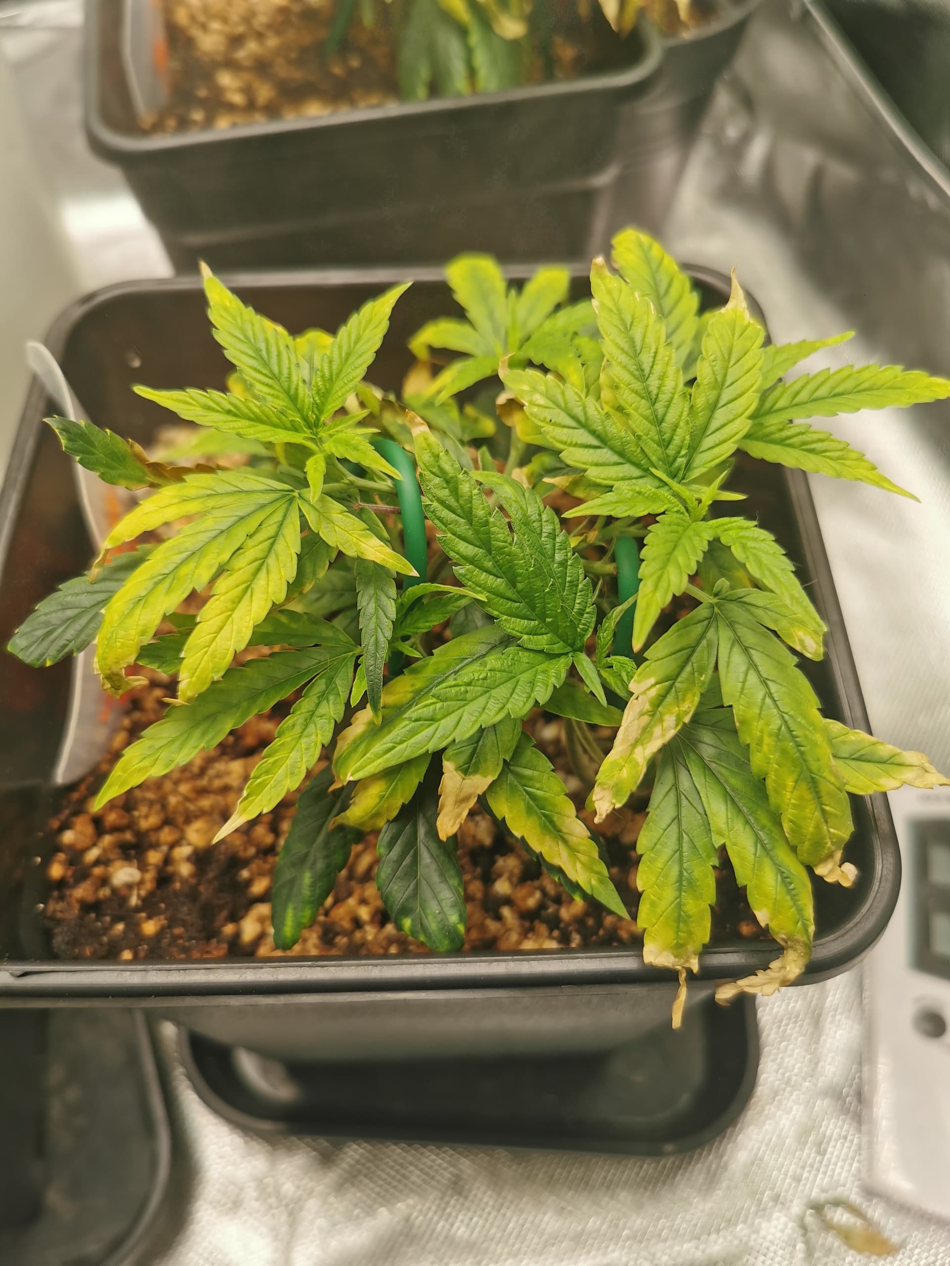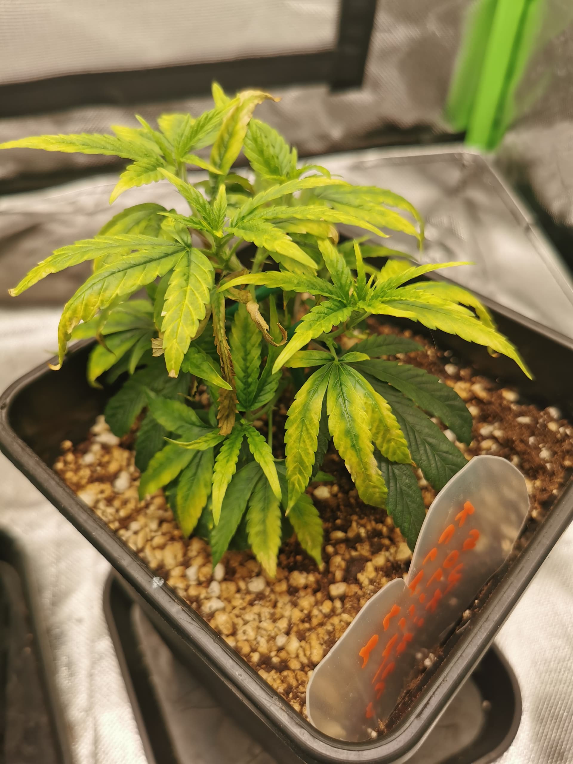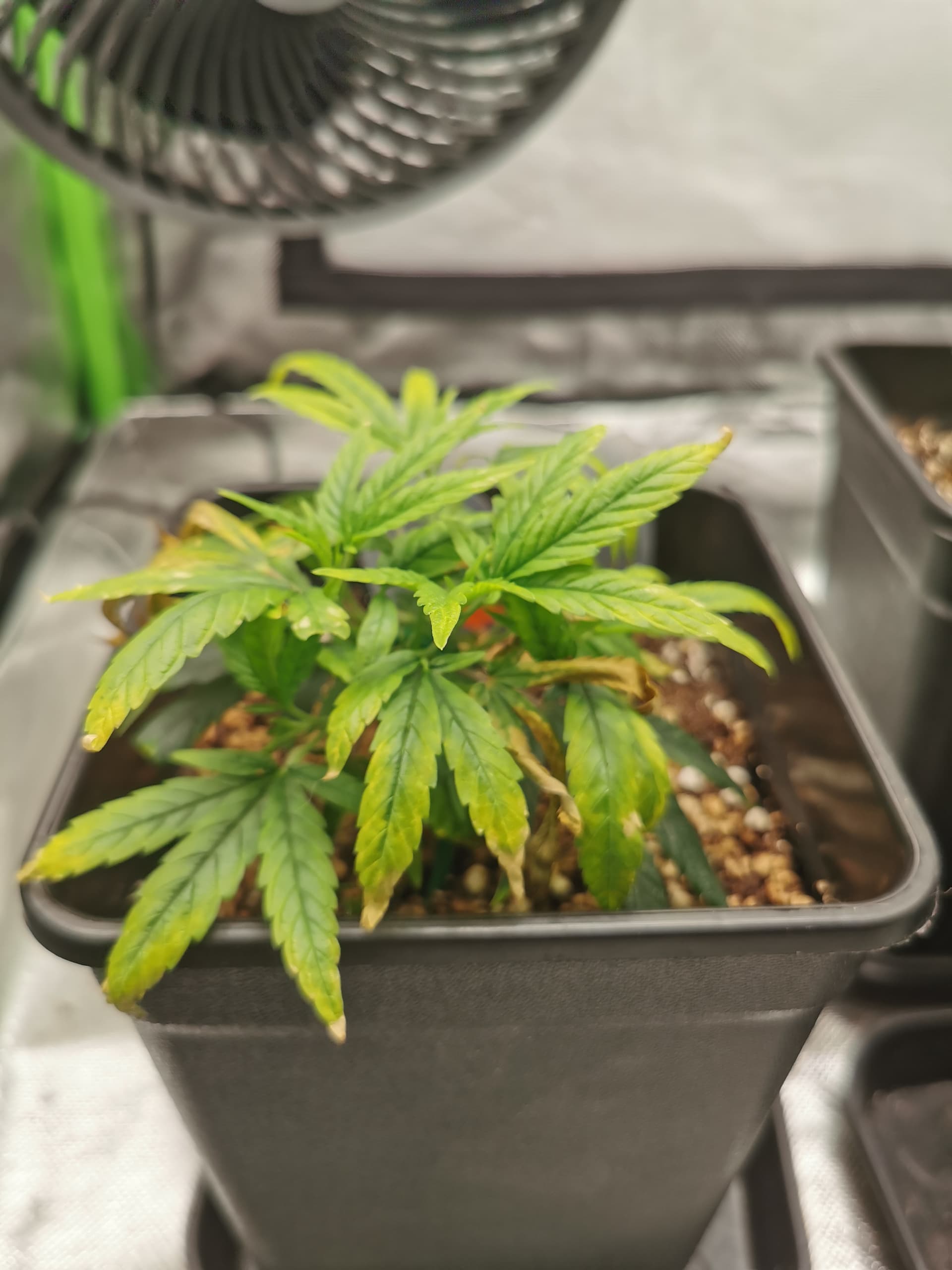 Die verfärbten Blätter schiebe ich immernoch auf den Stress, damit erstmal abwarten und Hobbitkraut rauchen, wie sie sich die nächsten Tage entwickeln.