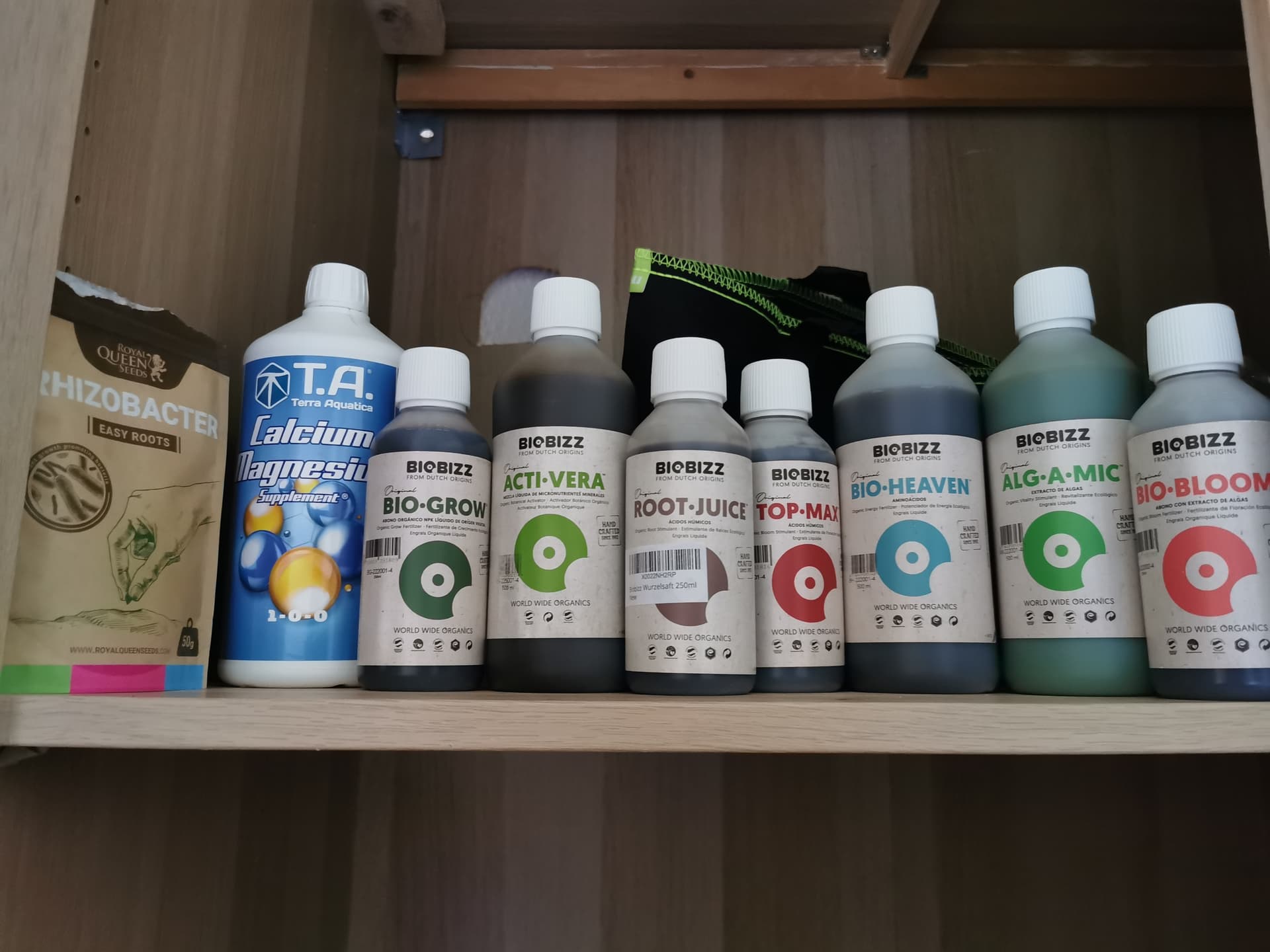 Dafür haben sie über die Blätter ein wenig Wellness bekommen. Activera und algamic, je etwas weniger als 1ml auf 1l Wasser. Damit <=50% von dem was Biobizz empfiehlt. Lieber weniger als möglich, als zuviel.