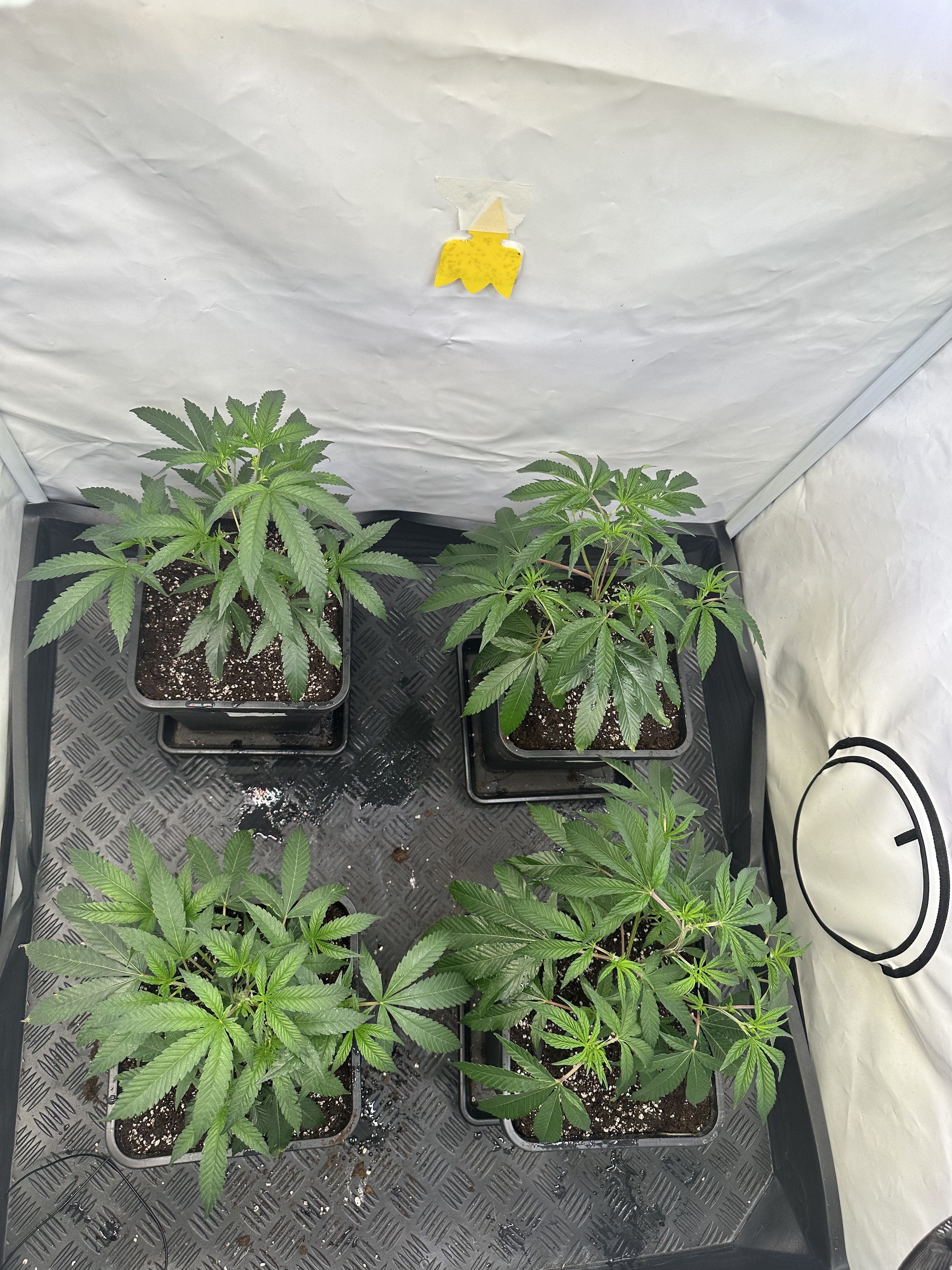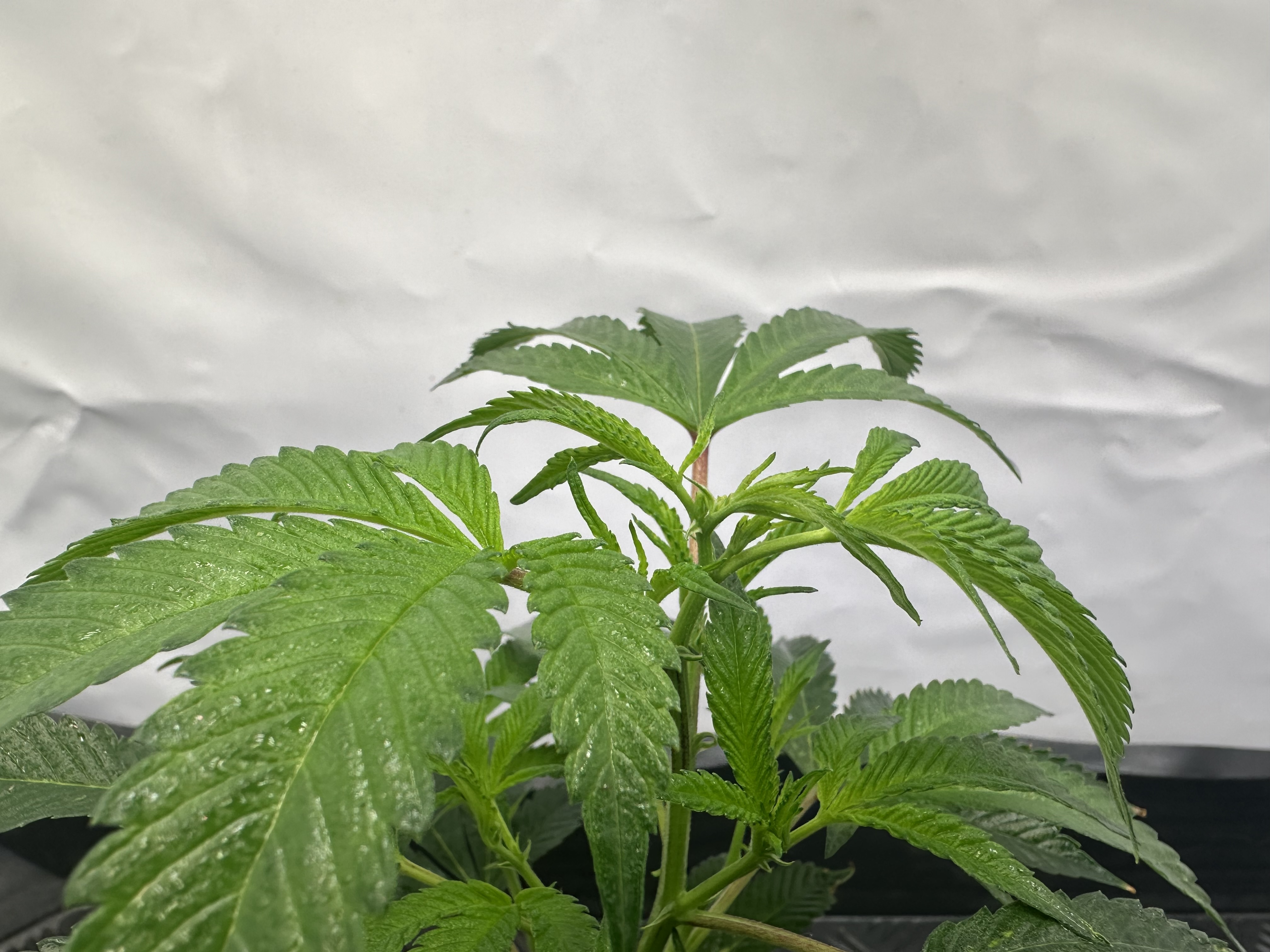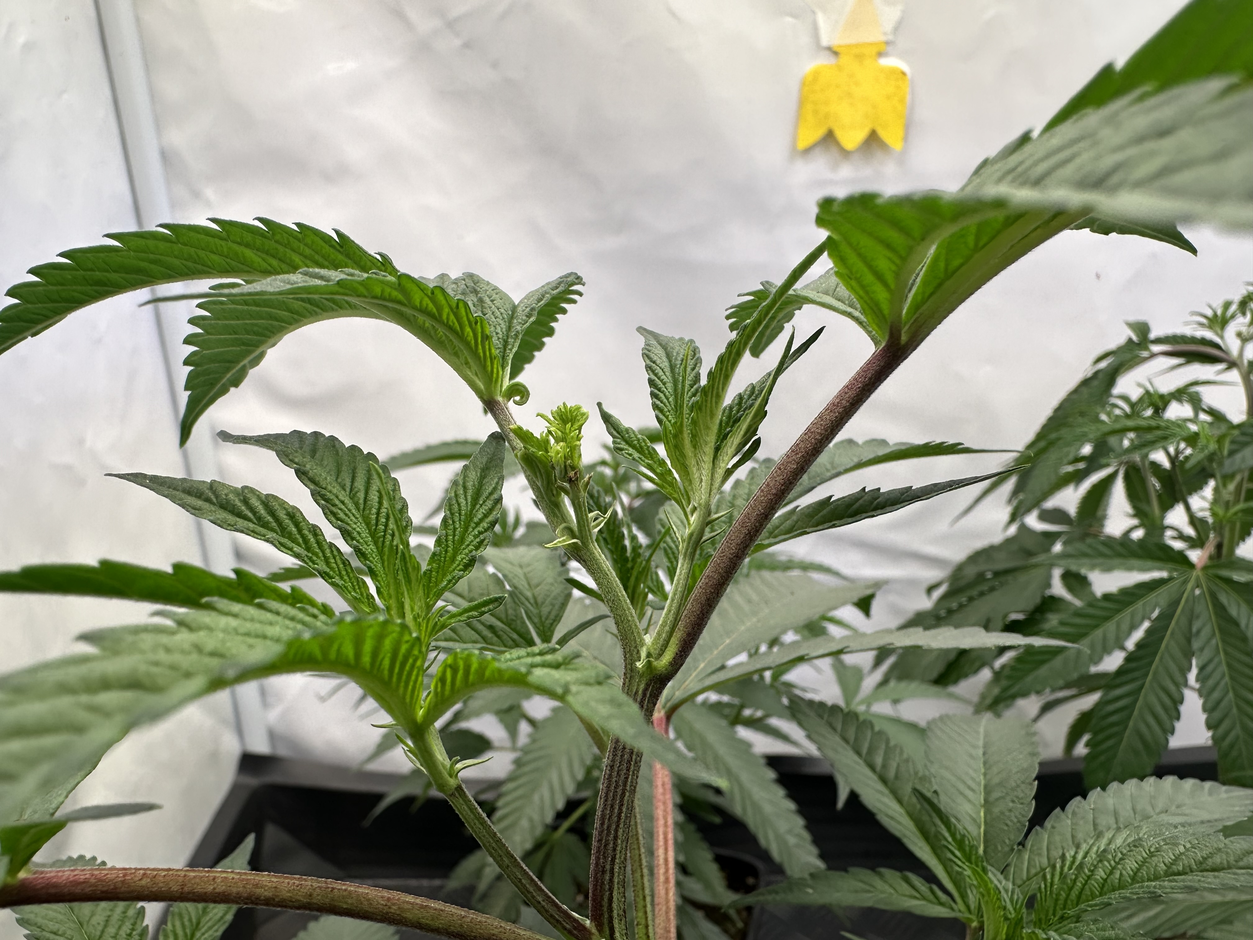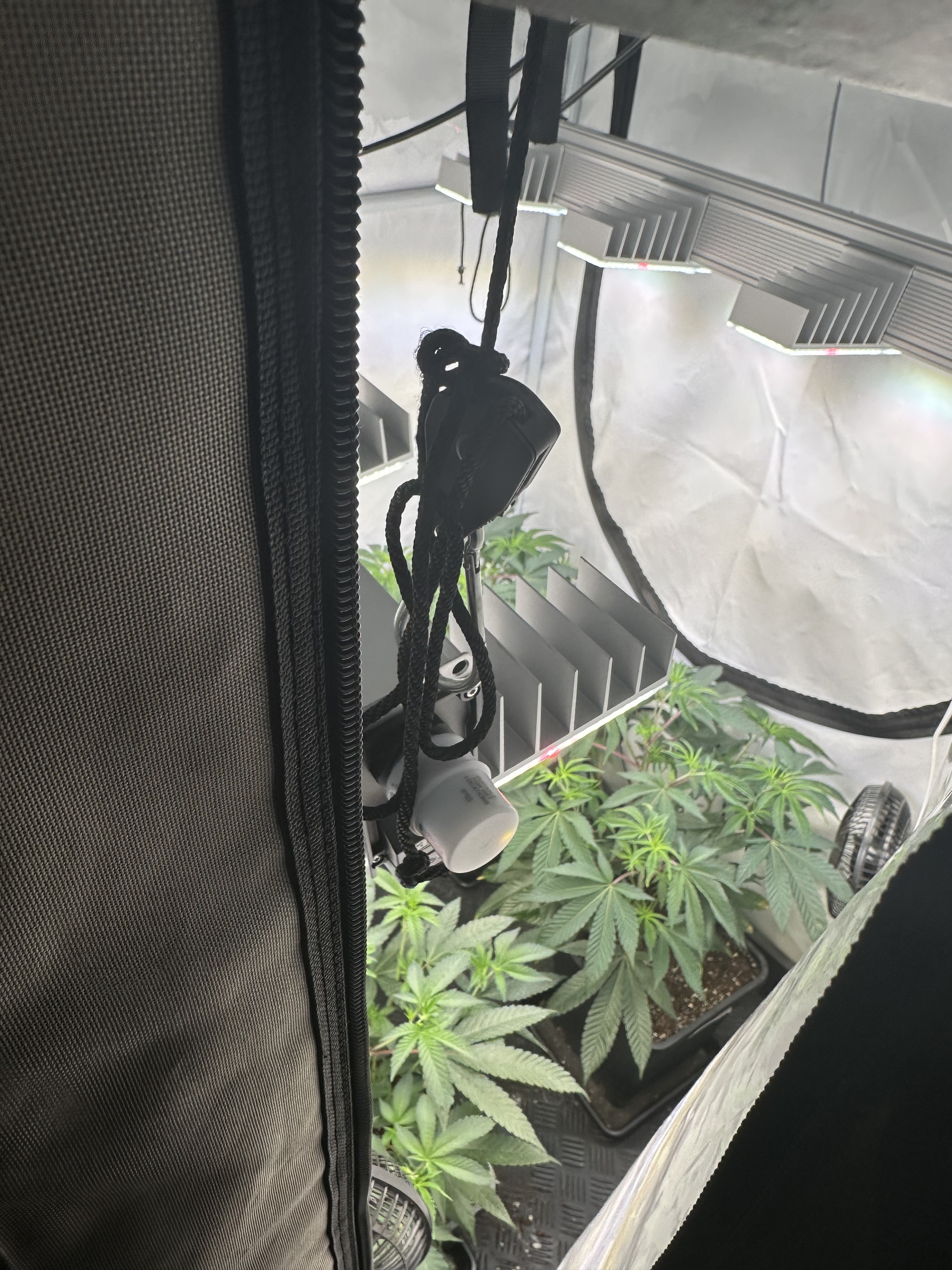 heute Morgen wurde außerplanmäßig das Zelt geöffnet. Die Neugier hat mich irgendwie dazu getrieben. Schatten war es, was ich als erstes bemerkte der von den oberen Blättern auf die unteren Triebe geworfen wurde. Das kann ja nicht angehen schoss es mit durch den Kopf als ich den Geilwuchs an den unteren Triebe bemerkte.