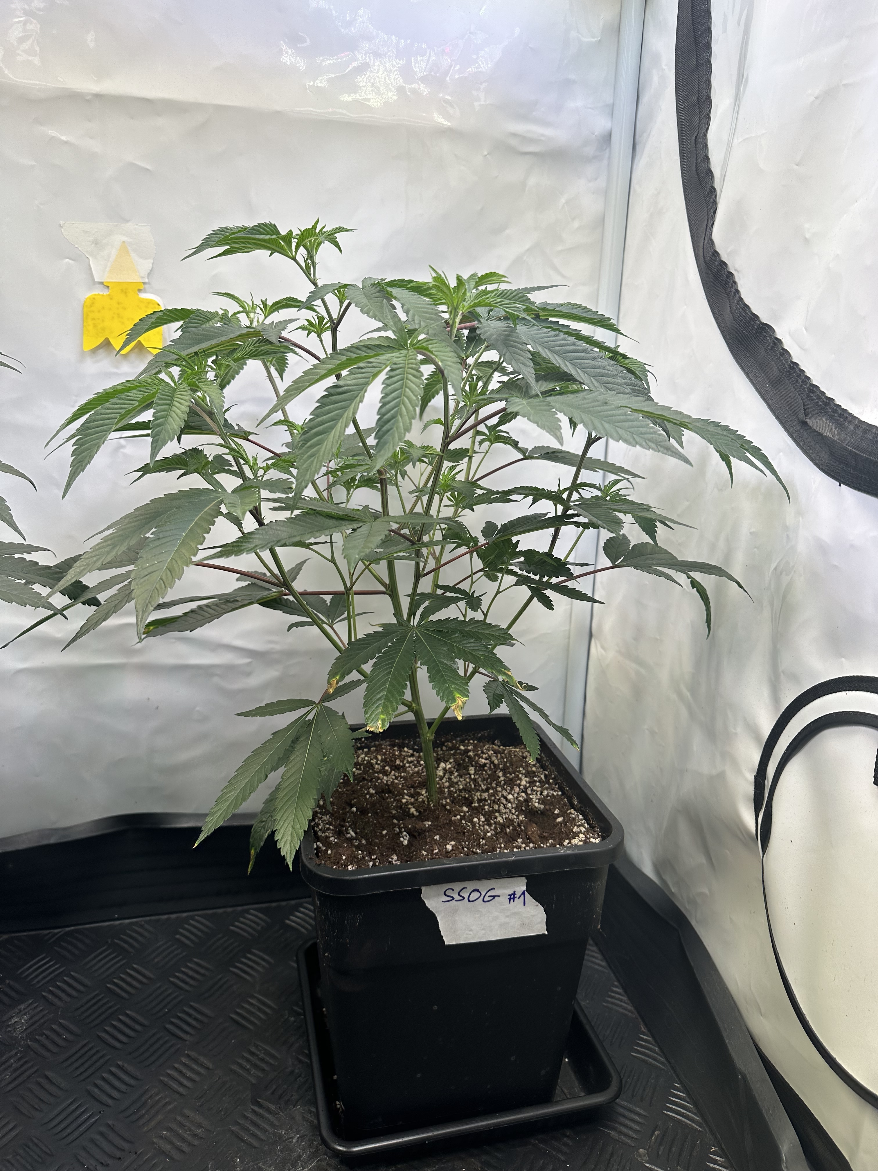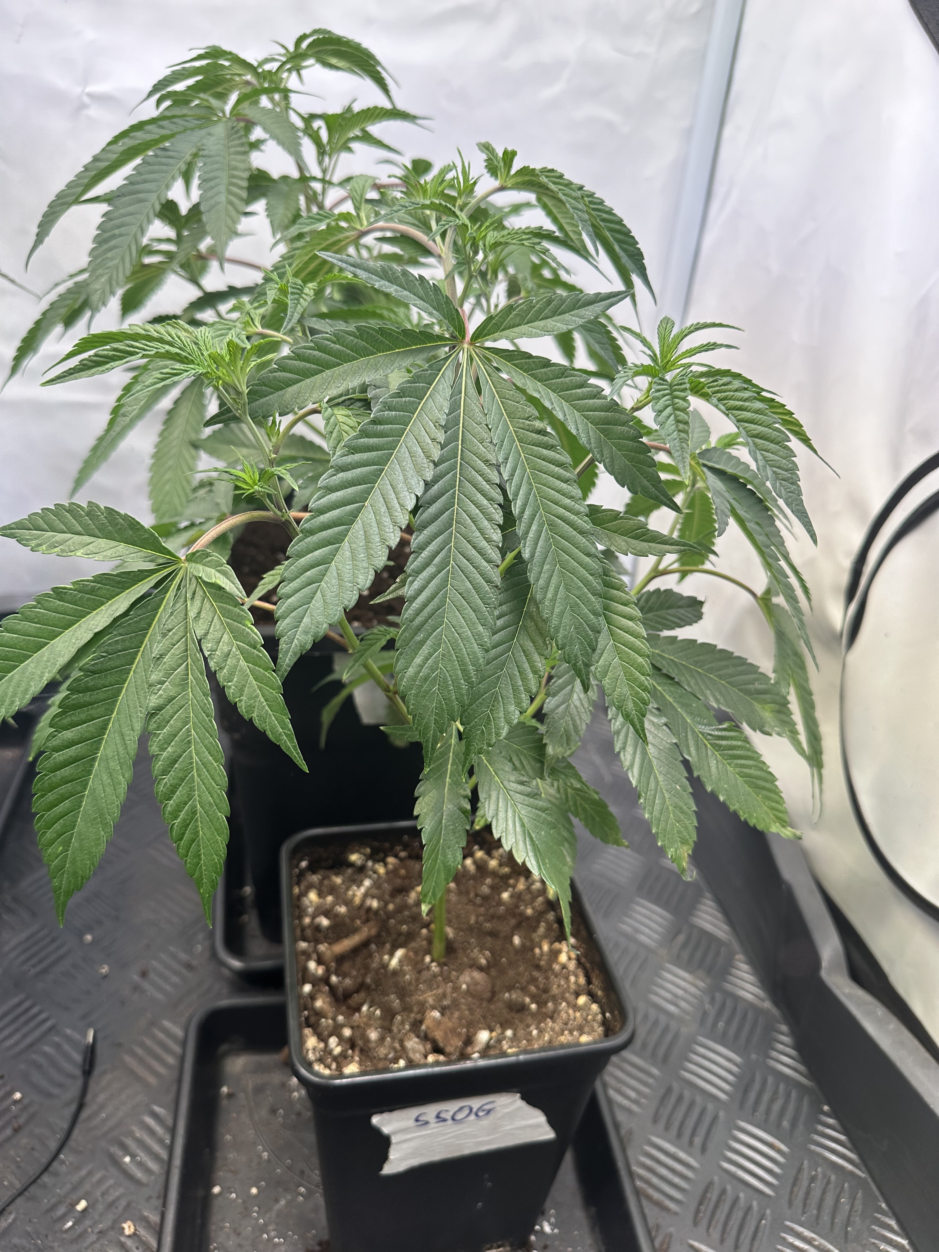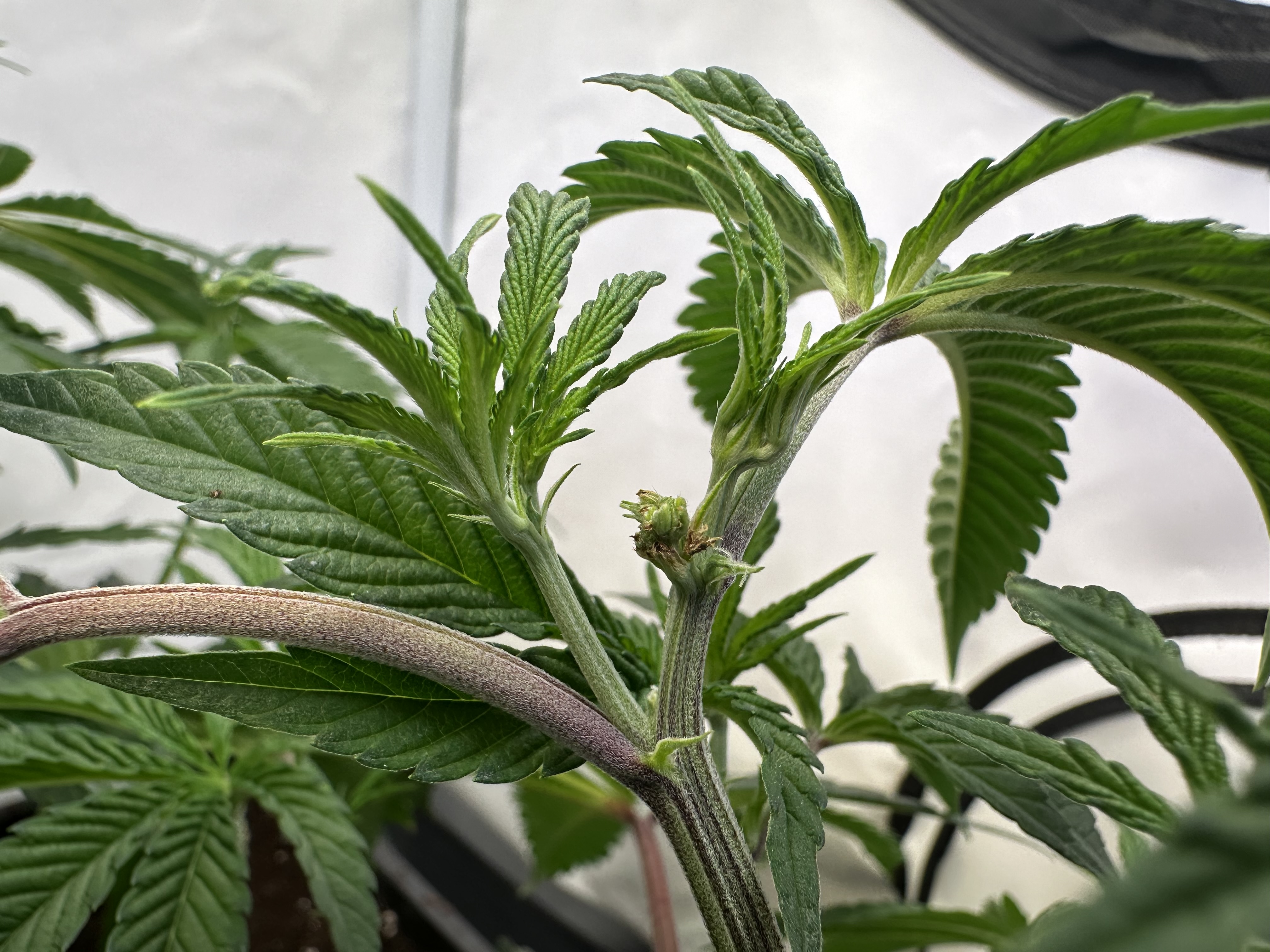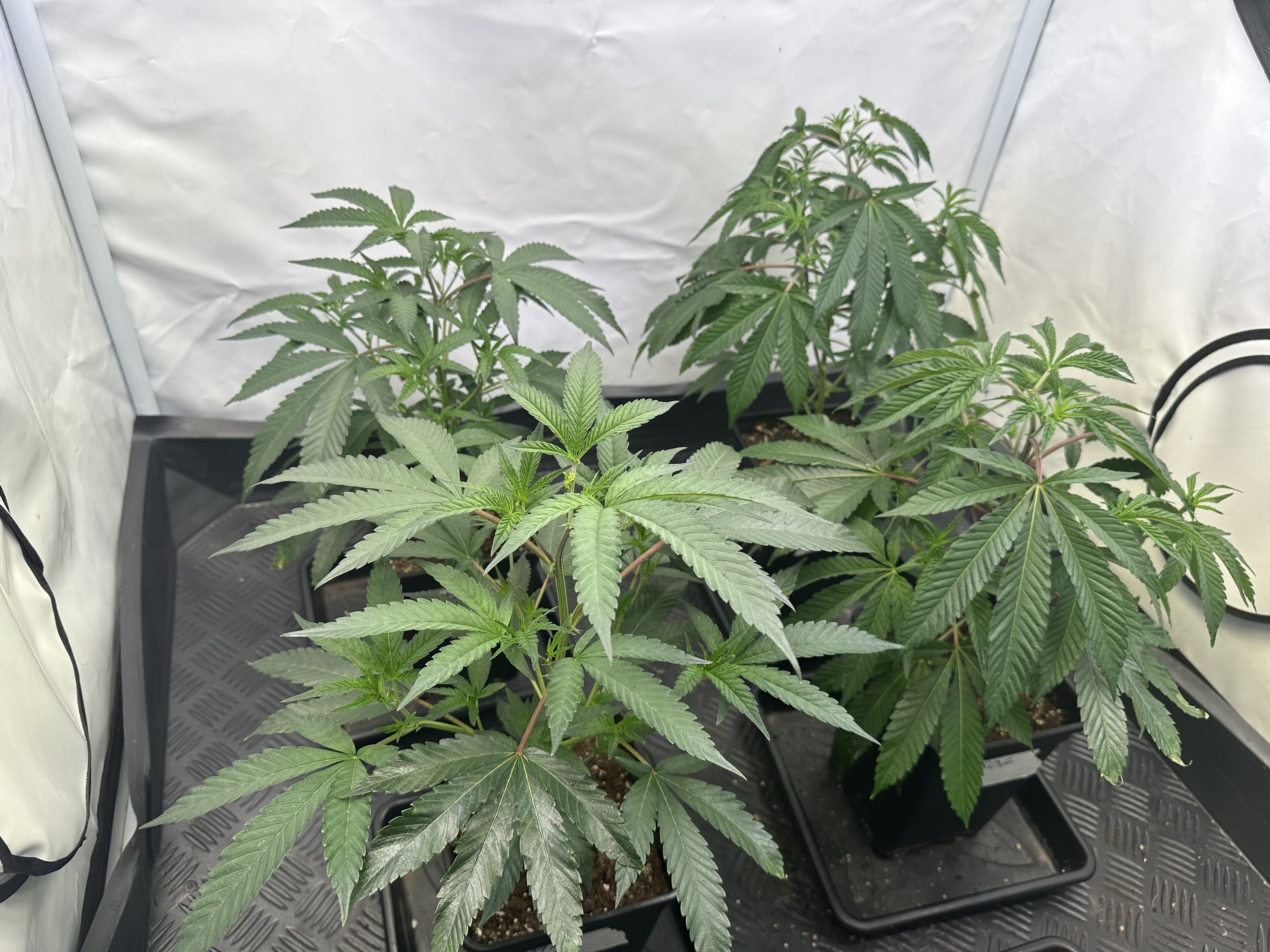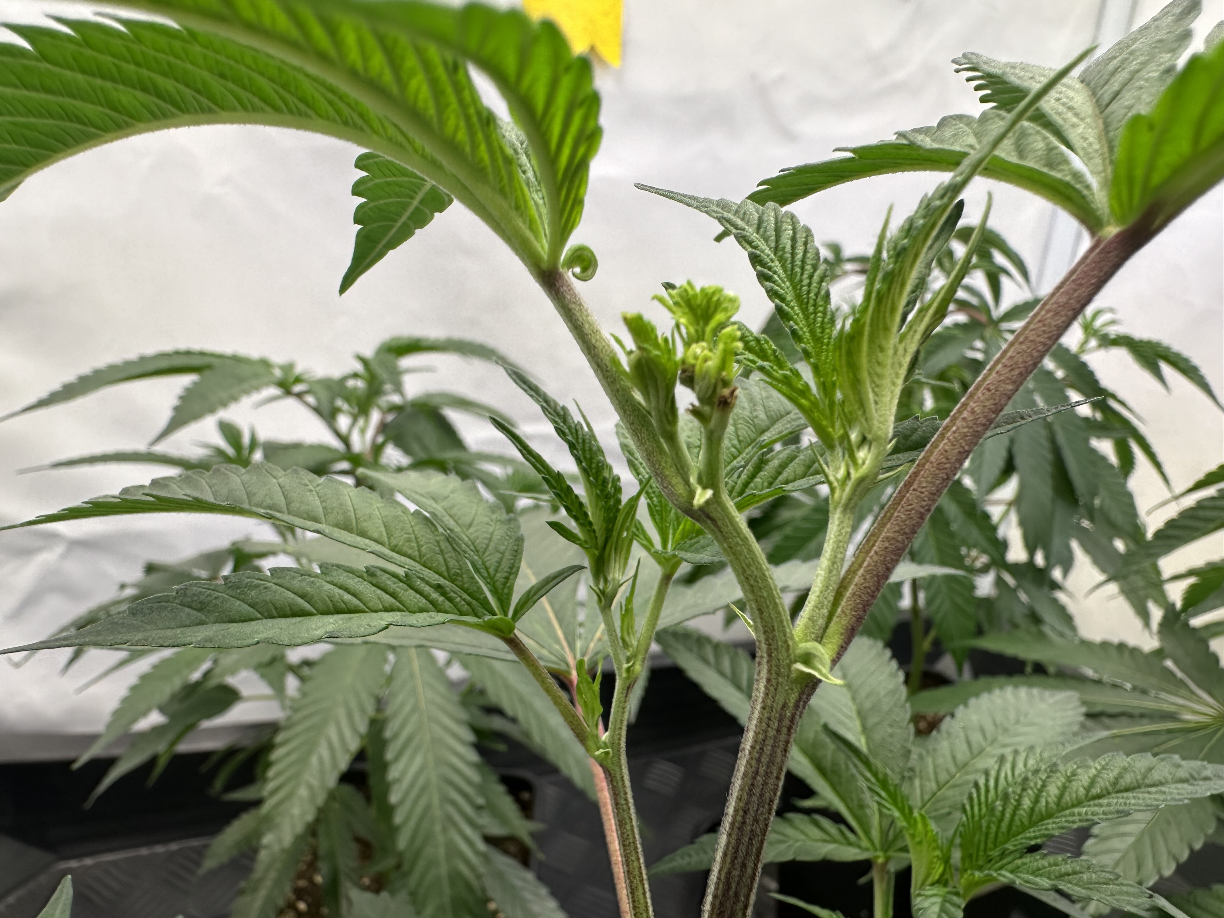 heute Morgen wurde außerplanmäßig das Zelt geöffnet. Die Neugier hat mich irgendwie dazu getrieben. Schatten war es, was ich als erstes bemerkte der von den oberen Blättern auf die unteren Triebe geworfen wurde. Das kann ja nicht angehen schoss es mit durch den Kopf als ich den Geilwuchs an den unteren Triebe bemerkte.