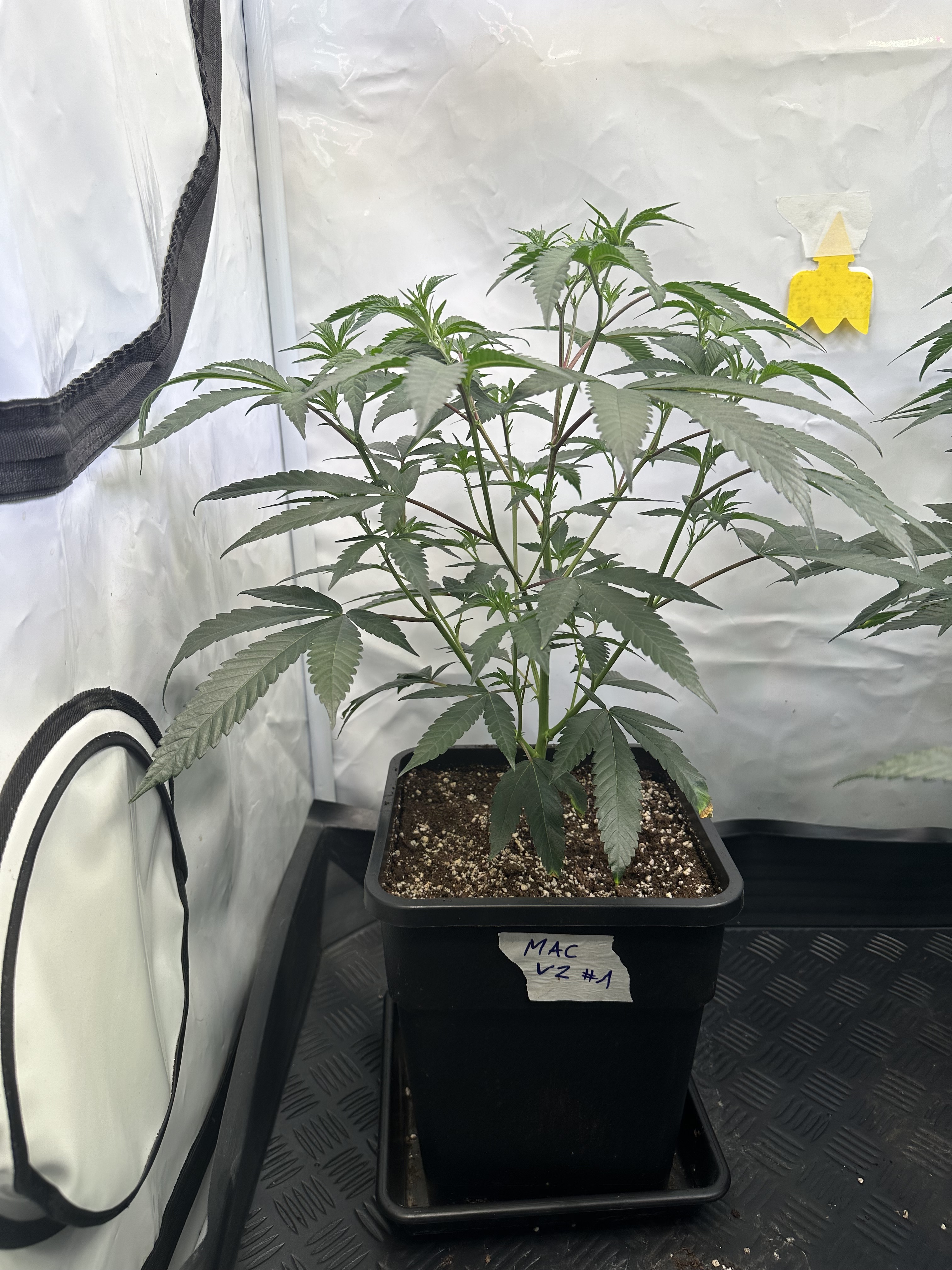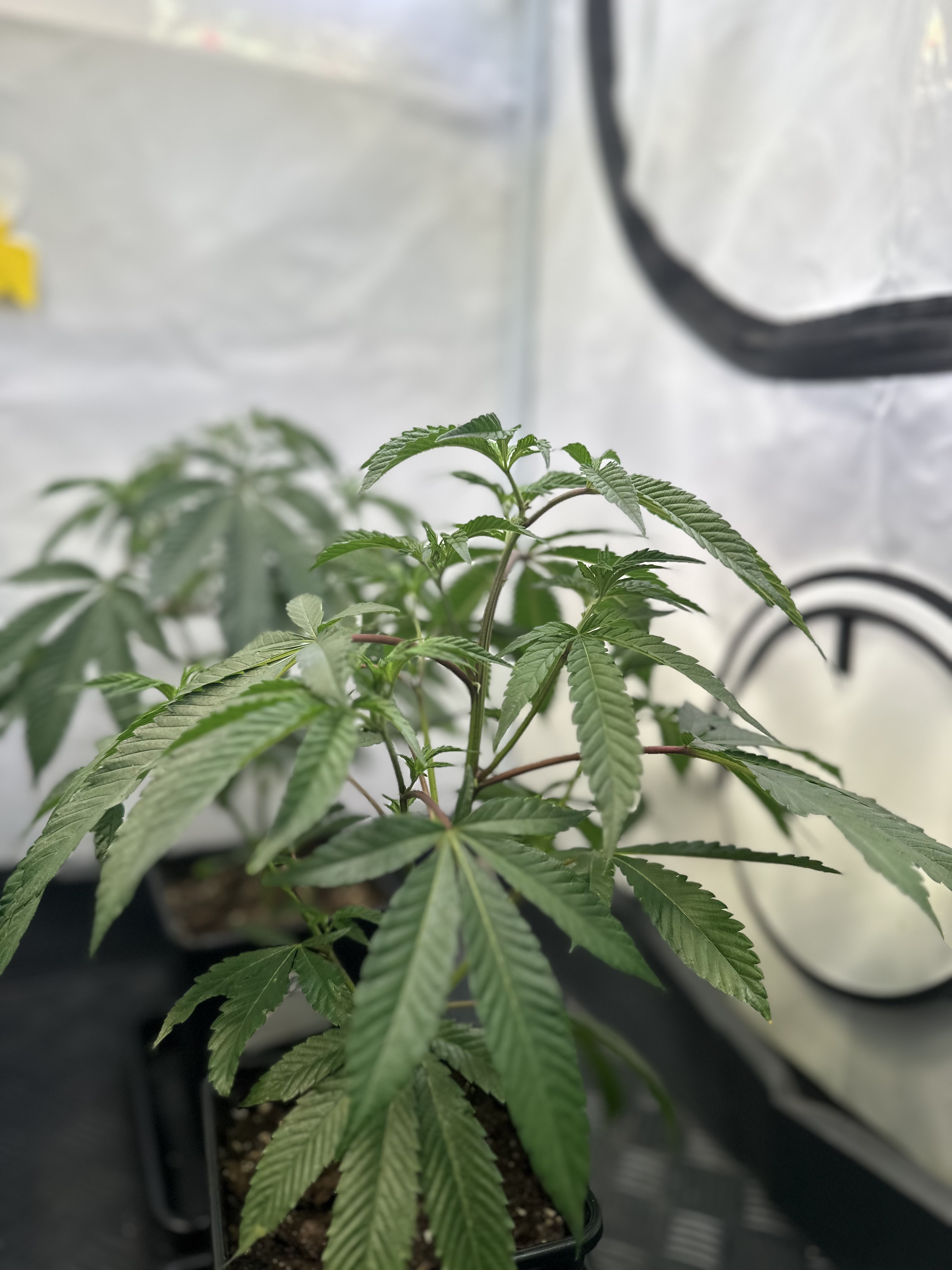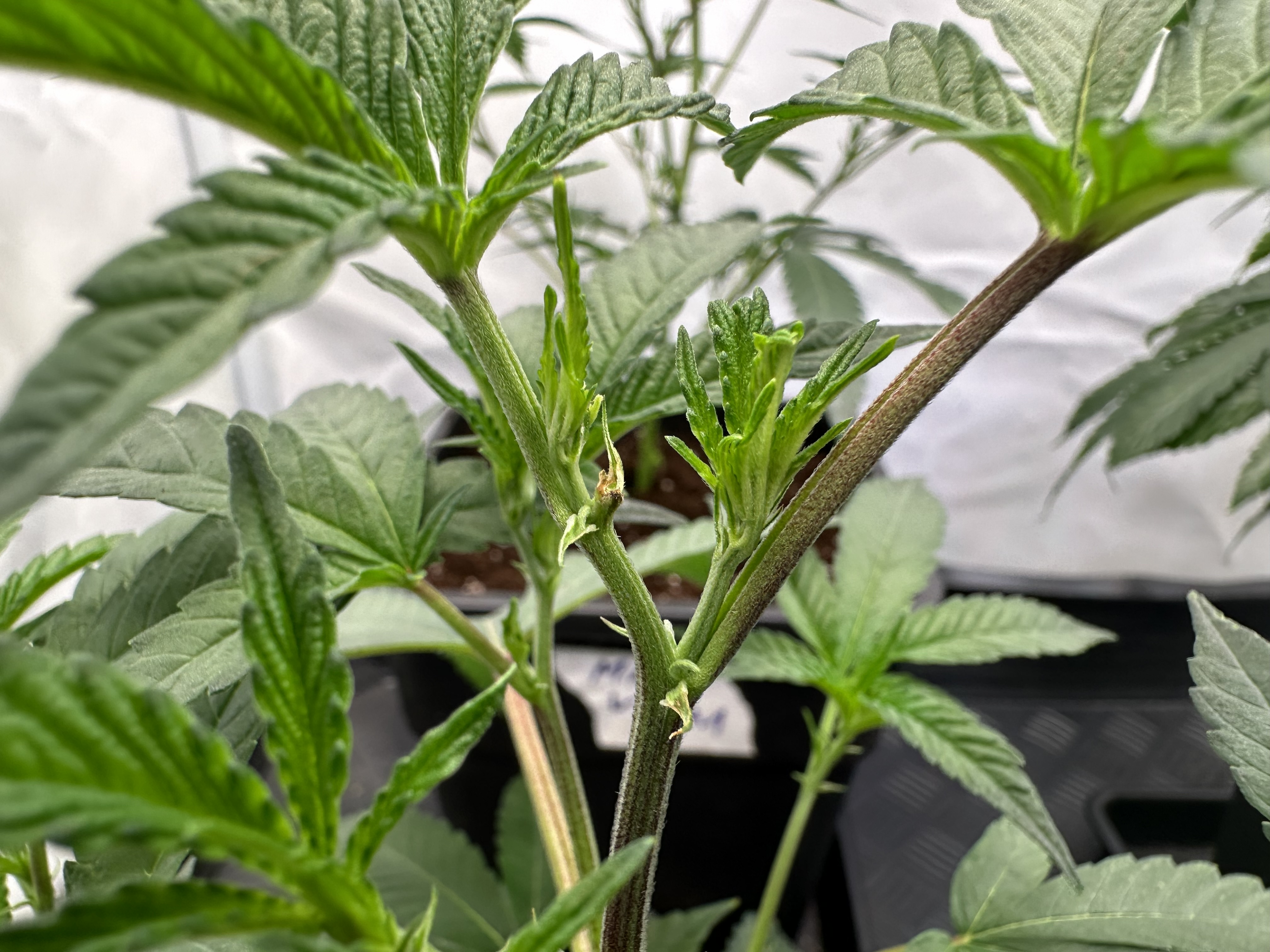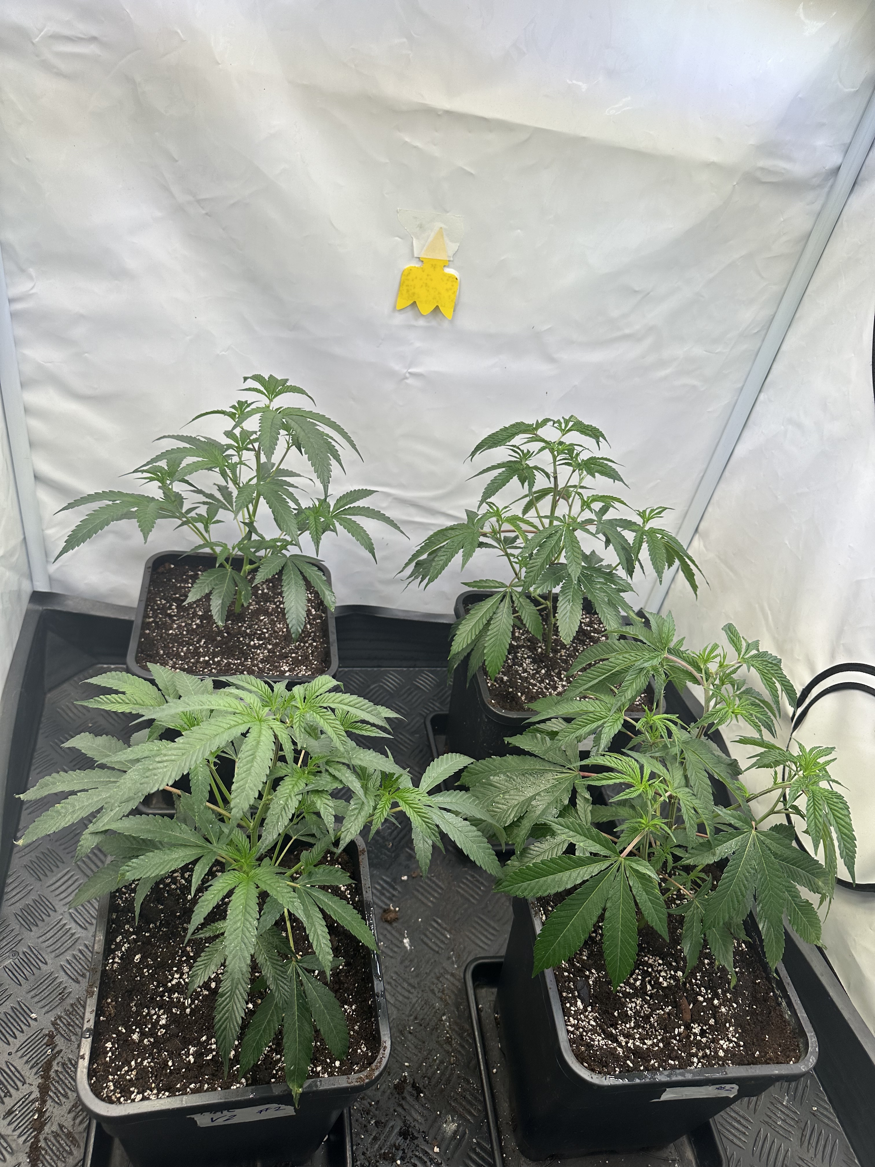 heute Morgen wurde außerplanmäßig das Zelt geöffnet. Die Neugier hat mich irgendwie dazu getrieben. Schatten war es, was ich als erstes bemerkte der von den oberen Blättern auf die unteren Triebe geworfen wurde. Das kann ja nicht angehen schoss es mit durch den Kopf als ich den Geilwuchs an den unteren Triebe bemerkte.