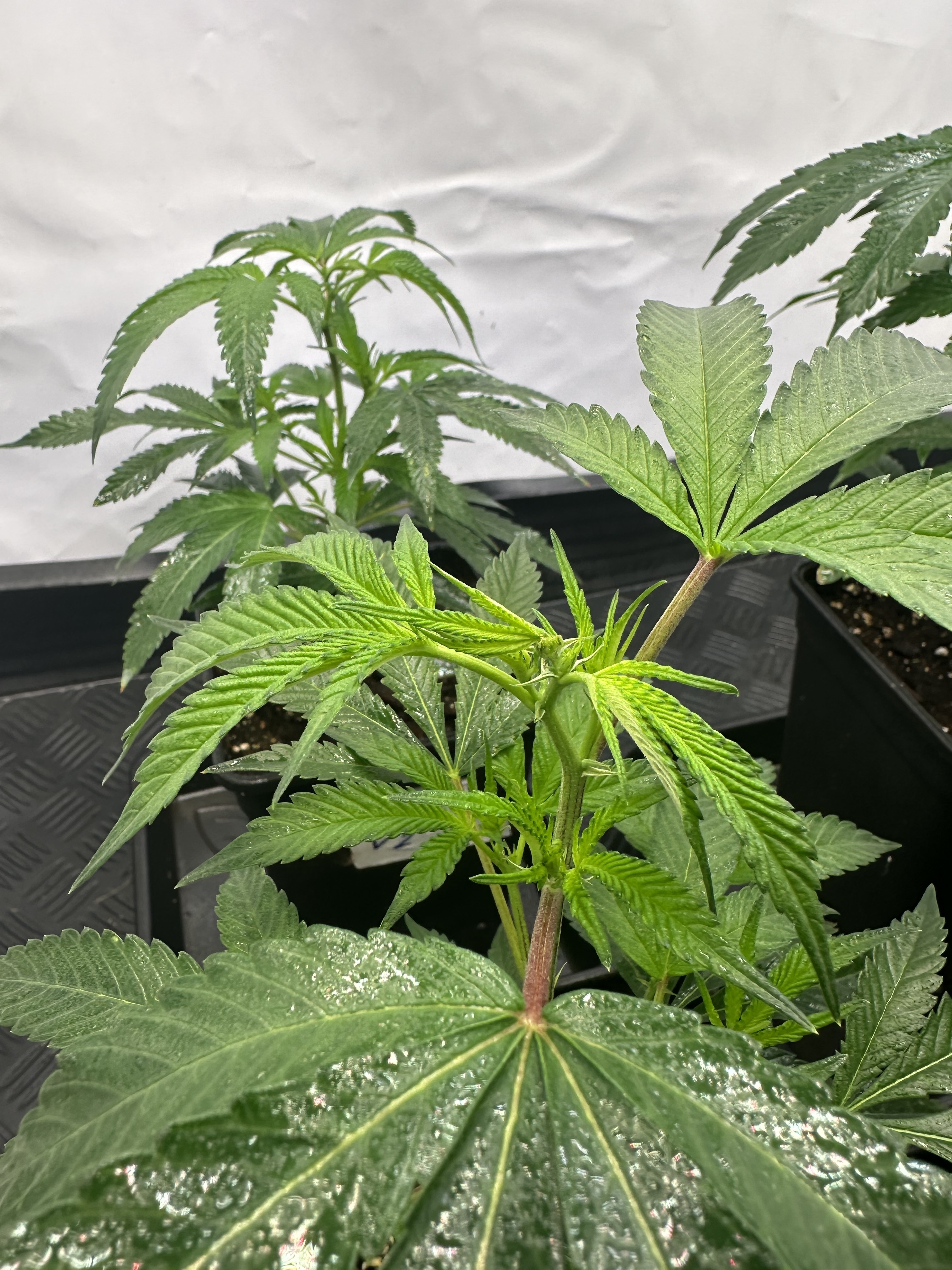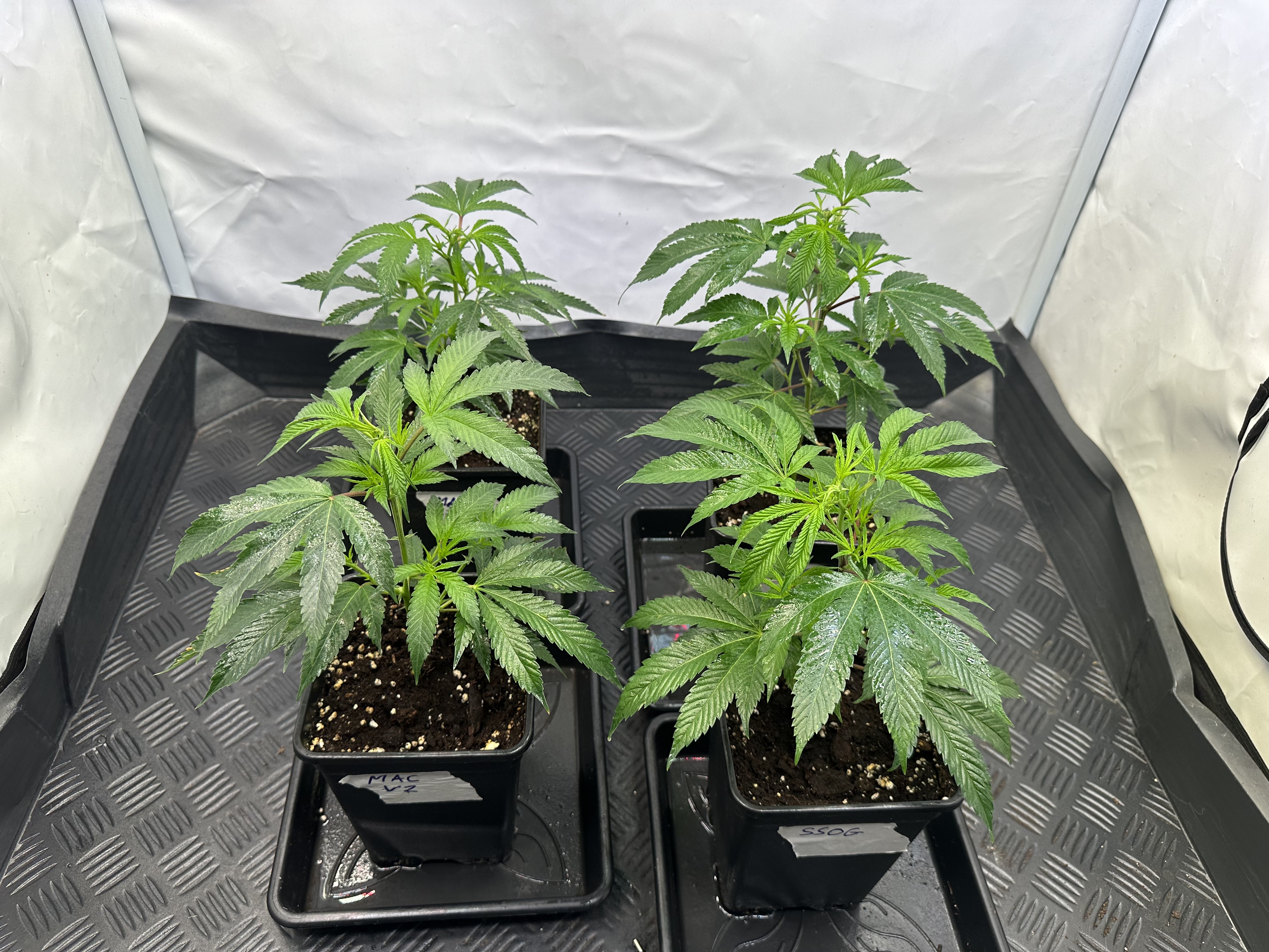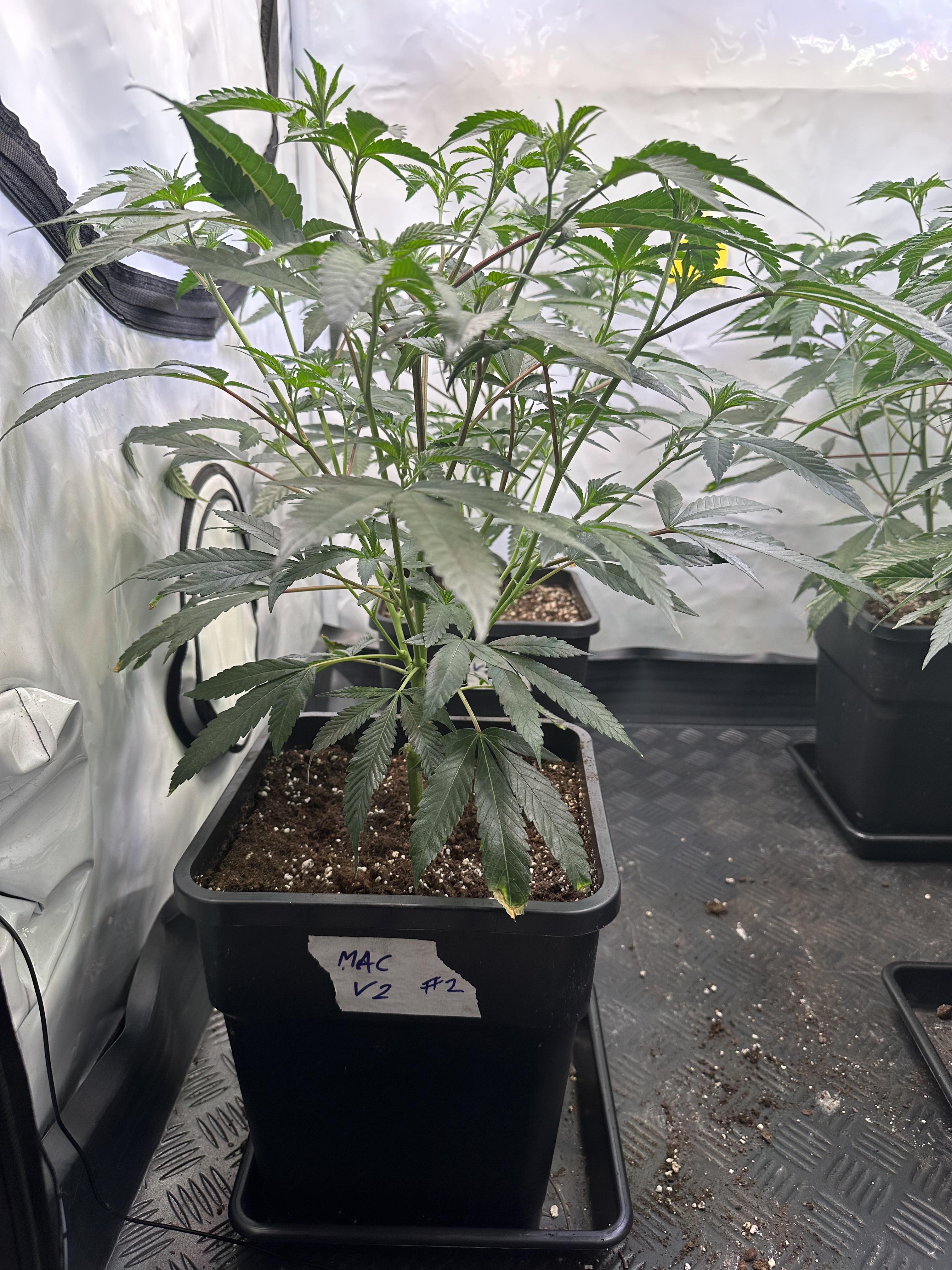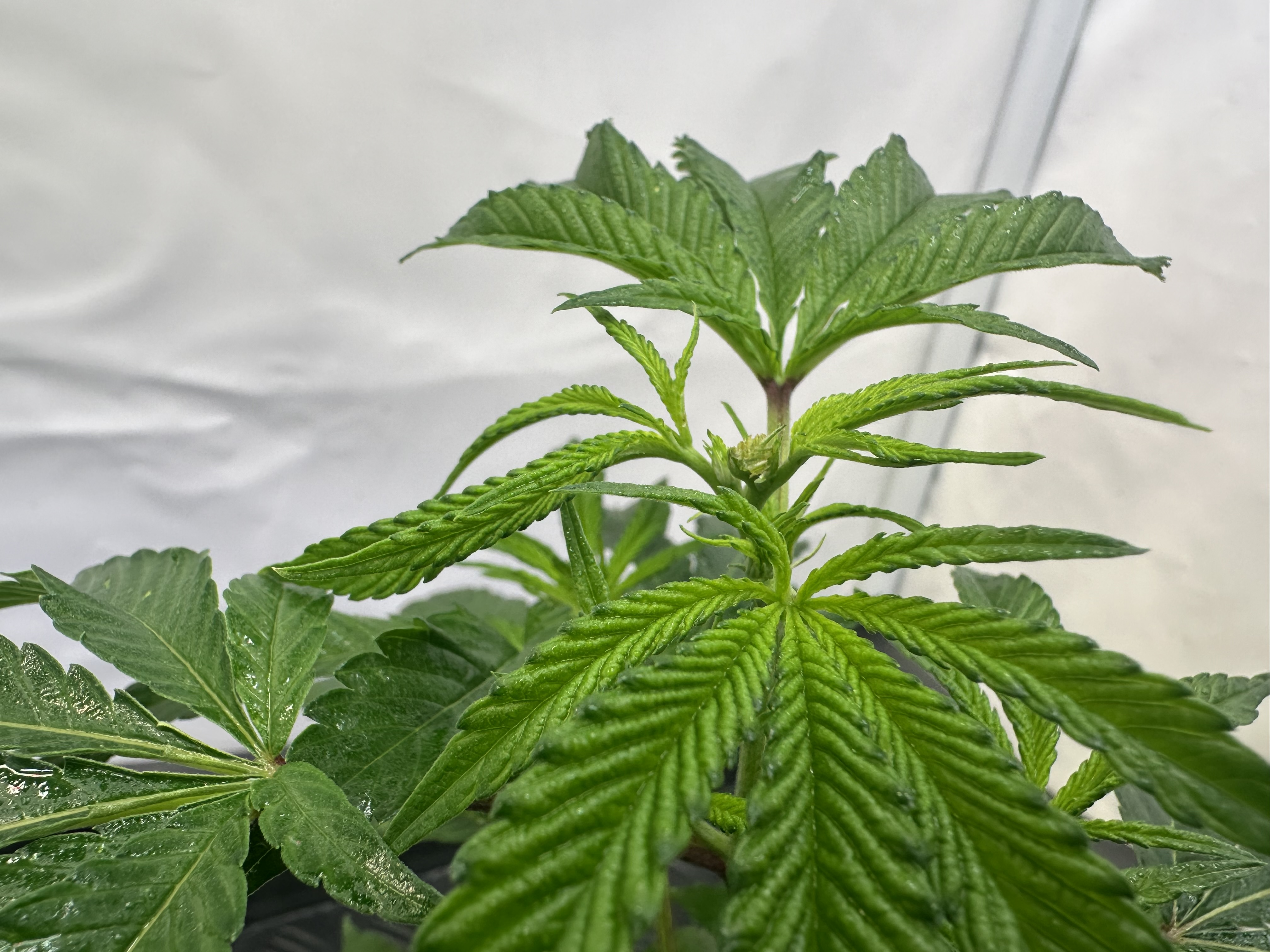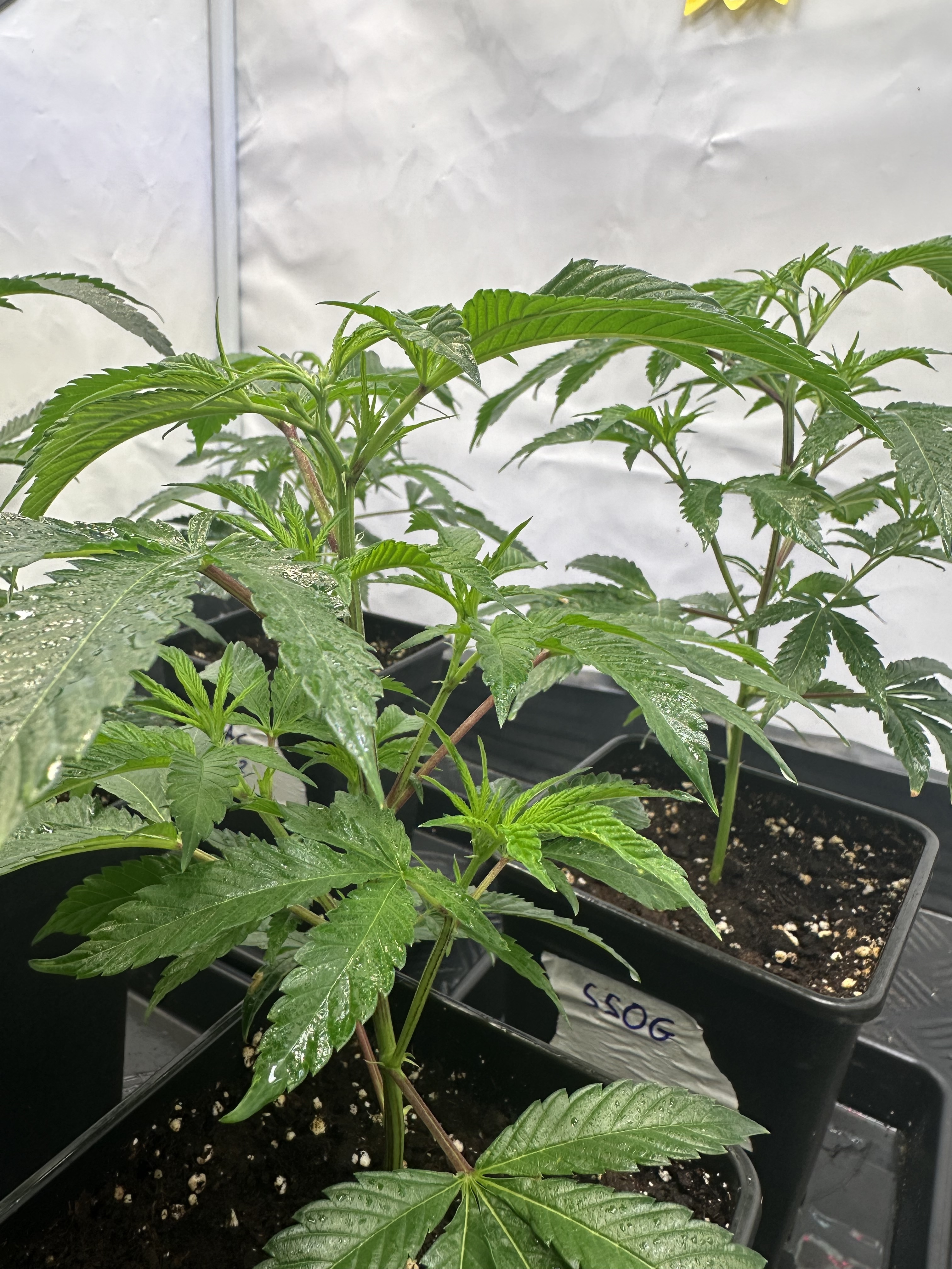 heute Morgen wurde außerplanmäßig das Zelt geöffnet. Die Neugier hat mich irgendwie dazu getrieben. Schatten war es, was ich als erstes bemerkte der von den oberen Blättern auf die unteren Triebe geworfen wurde. Das kann ja nicht angehen schoss es mit durch den Kopf als ich den Geilwuchs an den unteren Triebe bemerkte.