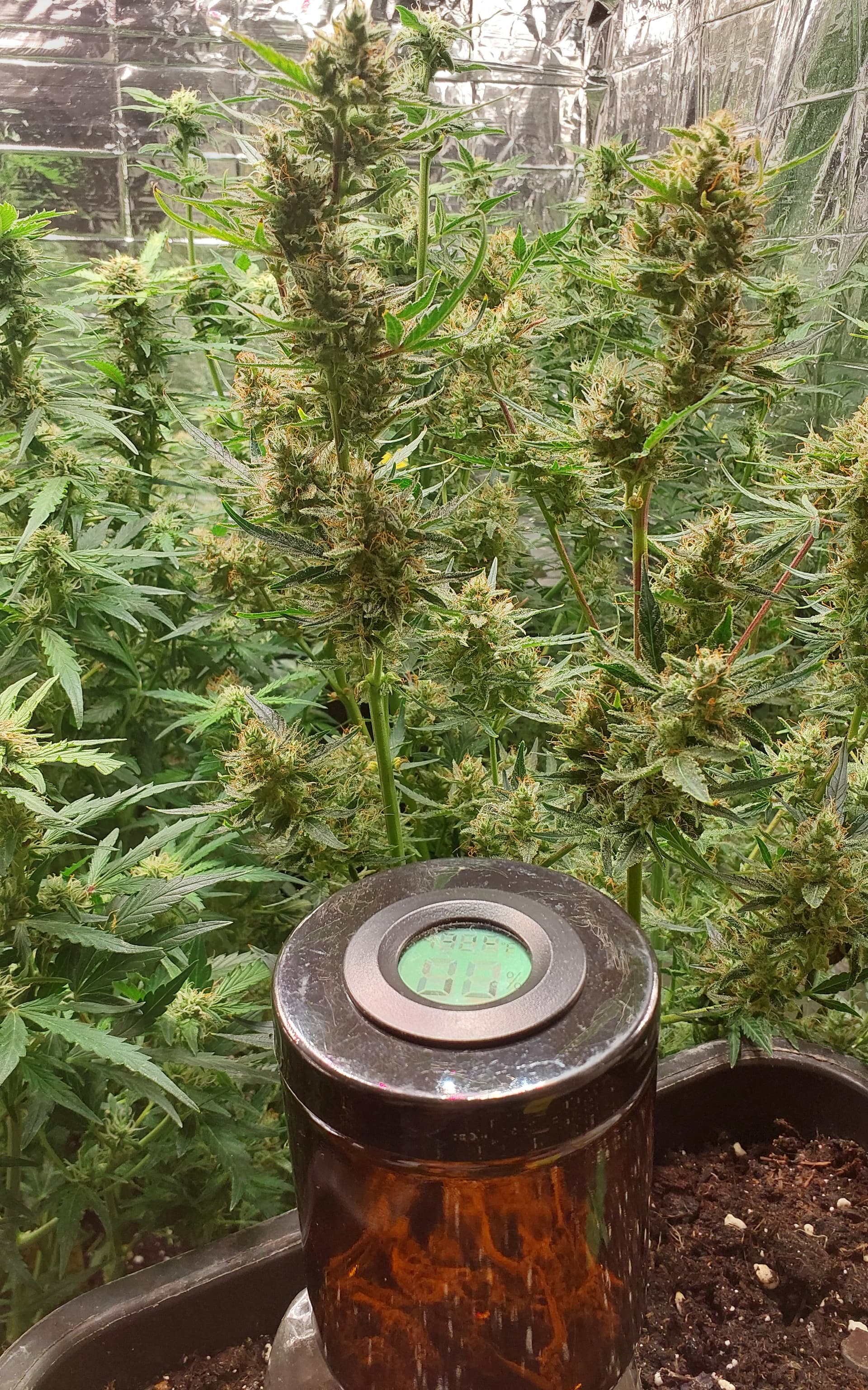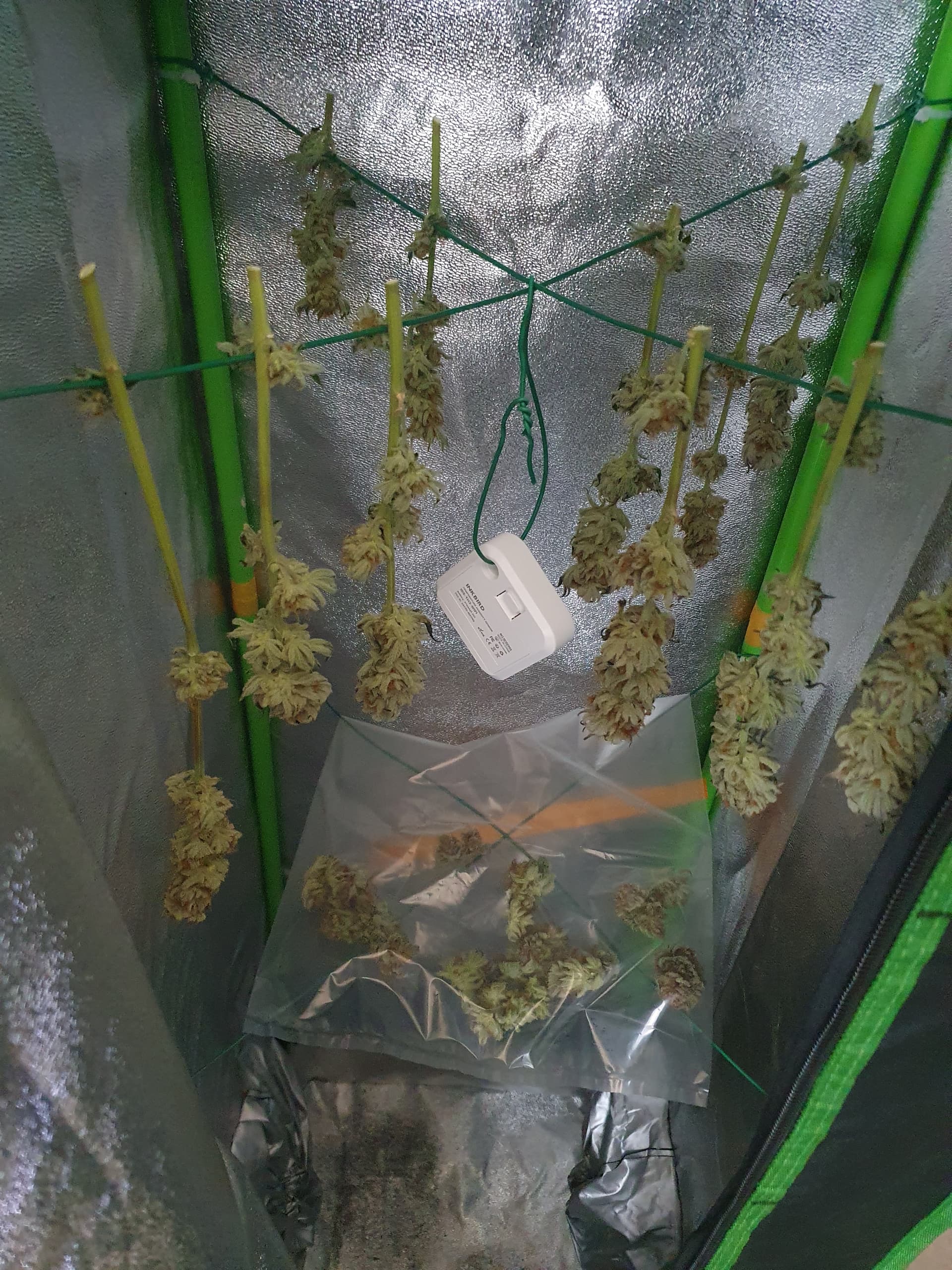 So wie ich das verstehe, ist es wichtig die Umgebungsbedingungen rlf und Temperatur konstant im Griff zu haben. Da spielt mir die aktuelle Jahreszeit natürlich gut in die Karten. Ich Nutze wifi inkbird (TH3) Sensoren. Im Zelt ist einer oben und einer auf Höhe der Top buds. Ein anderer ist gerade im 40er Trocknungs Zelt, in dem Raum, durch welchen die growzelt Abluft durch geleitet wird.
