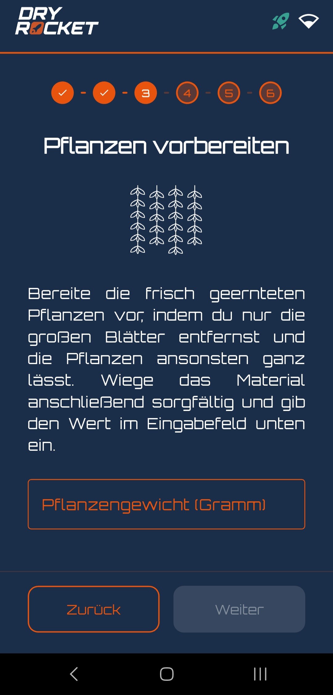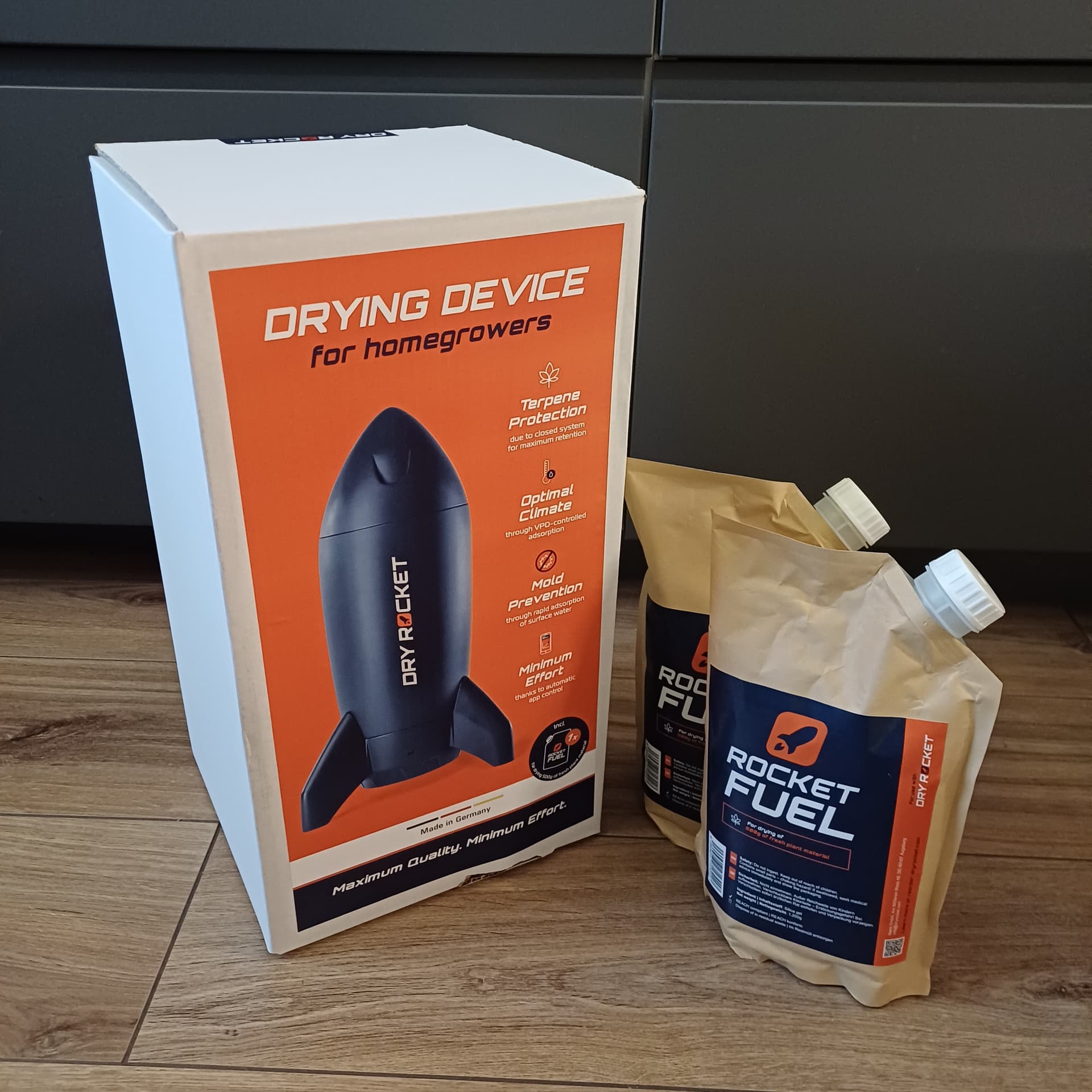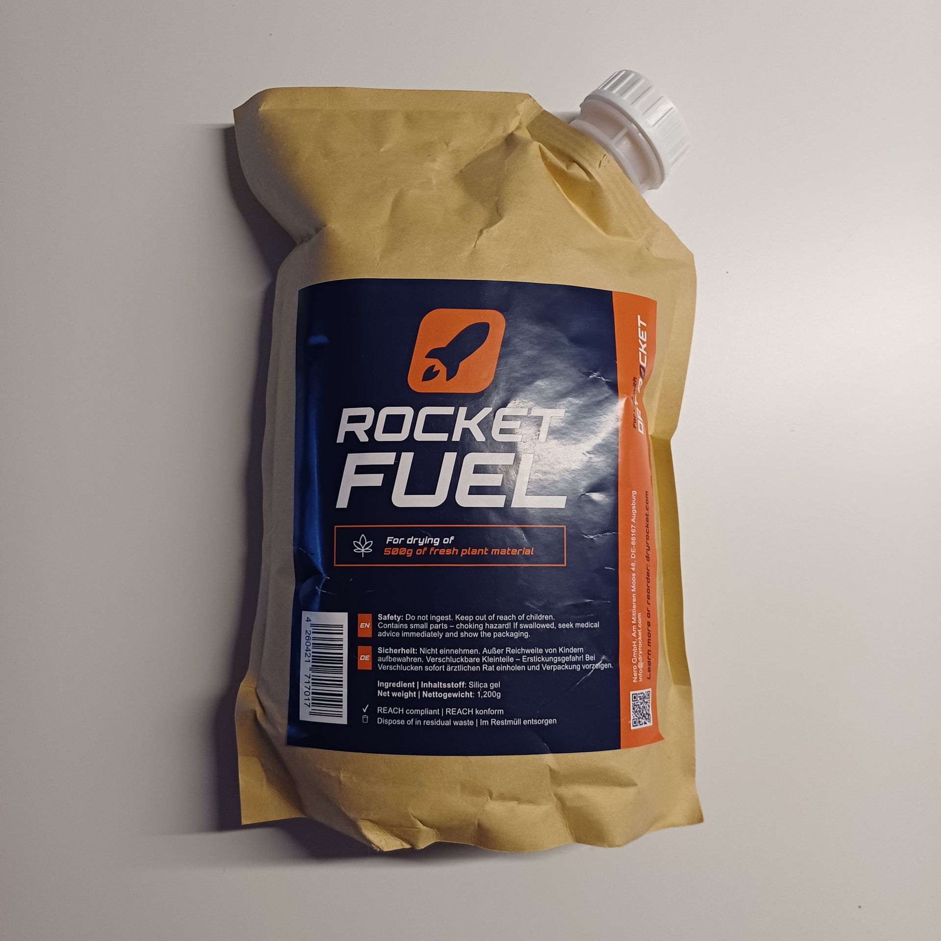 Im Set mit der Rakete ist normalerweise 1 Beutel (1,2kg) „Treibstoff“ enthalten, der für die Trocknung einer Gesamtmenge von 500g Material ausreichen soll.