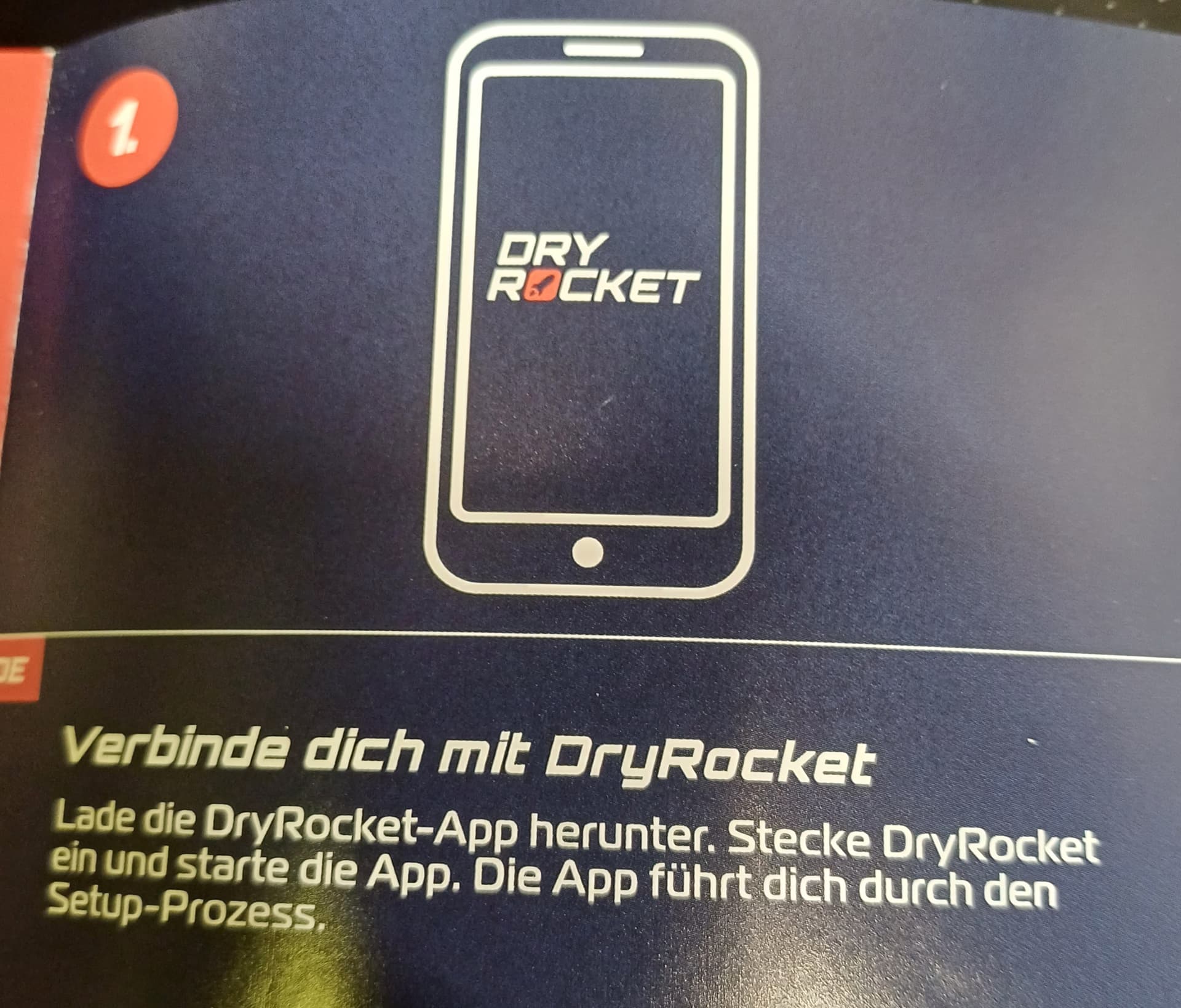 Auf der Verpackung selbst findet sich, neben diesen Angaben ein Sicherheitshinweis und ein QR Code der auf das Produkt im DryRocket Shop zeigt.
