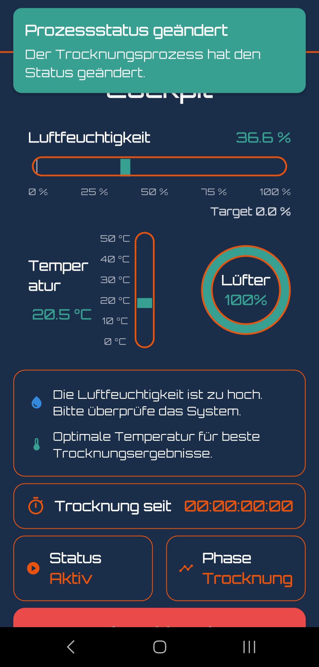 Die eigentliche Idee der DryRocket besteht ja darin in einem komplett luftdicht verschlossenen Zelt zu Trocknen. So sollen, durch fehlende Um- und Abluft, die Terpene besser erhalten werden, als das beim „herkömmlichen“ Trocknen mit Abluft der Fall sein soll.