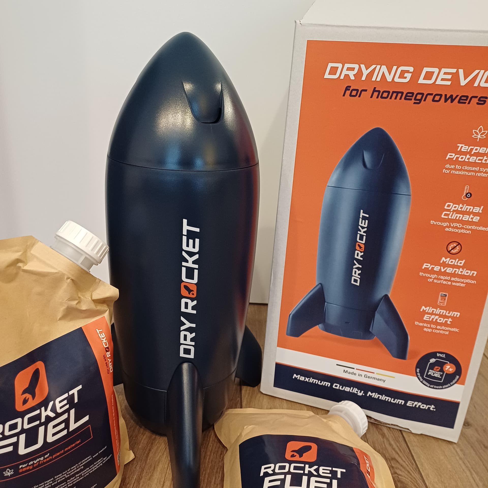 Um in einem geschlossenen Zelt aber die, von den zu trocknenden Pflanzen abgegebene, Feuchtigkeit aufzunehmen wenn sie nicht abgefĂĽhrt wird, braucht es also einen andere Weg. Das RocketFuel.