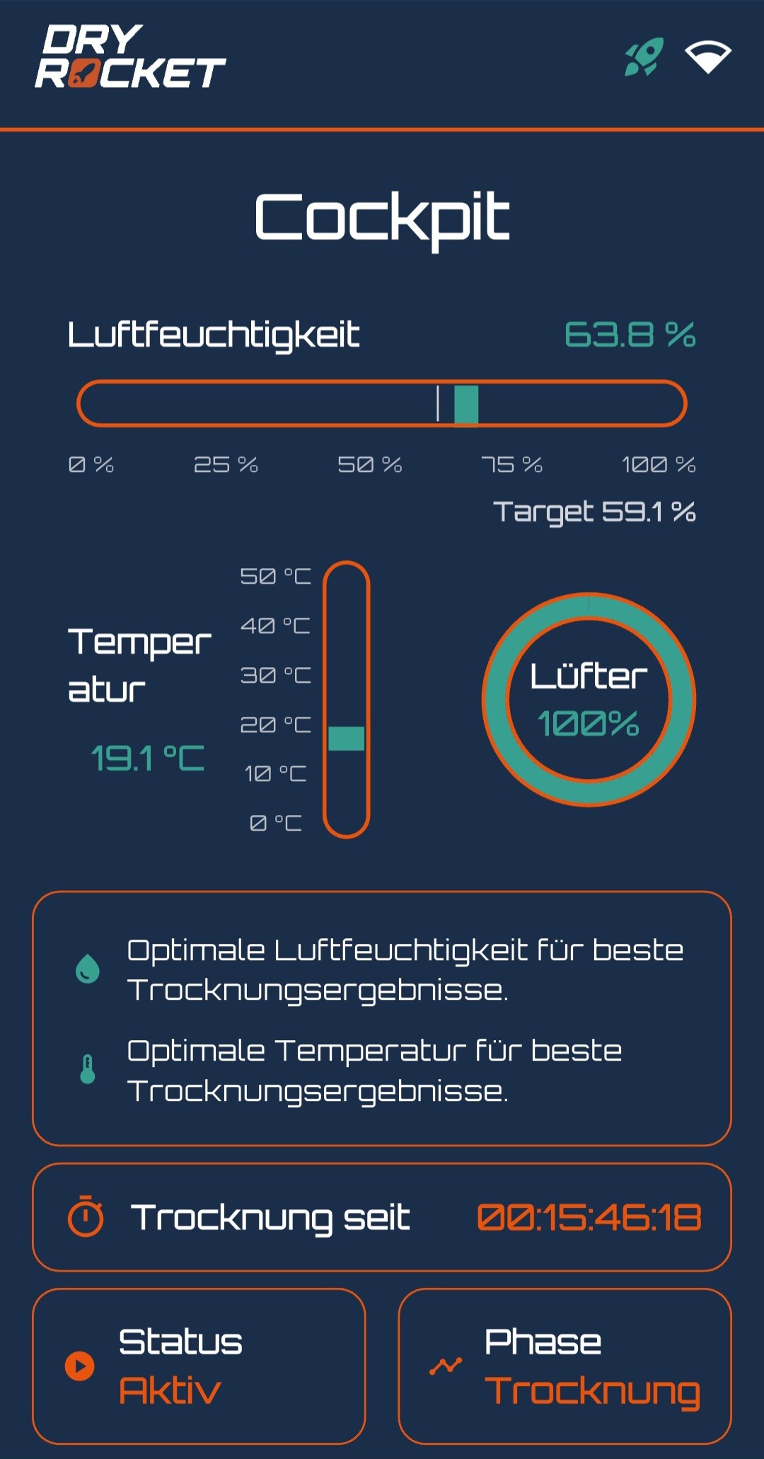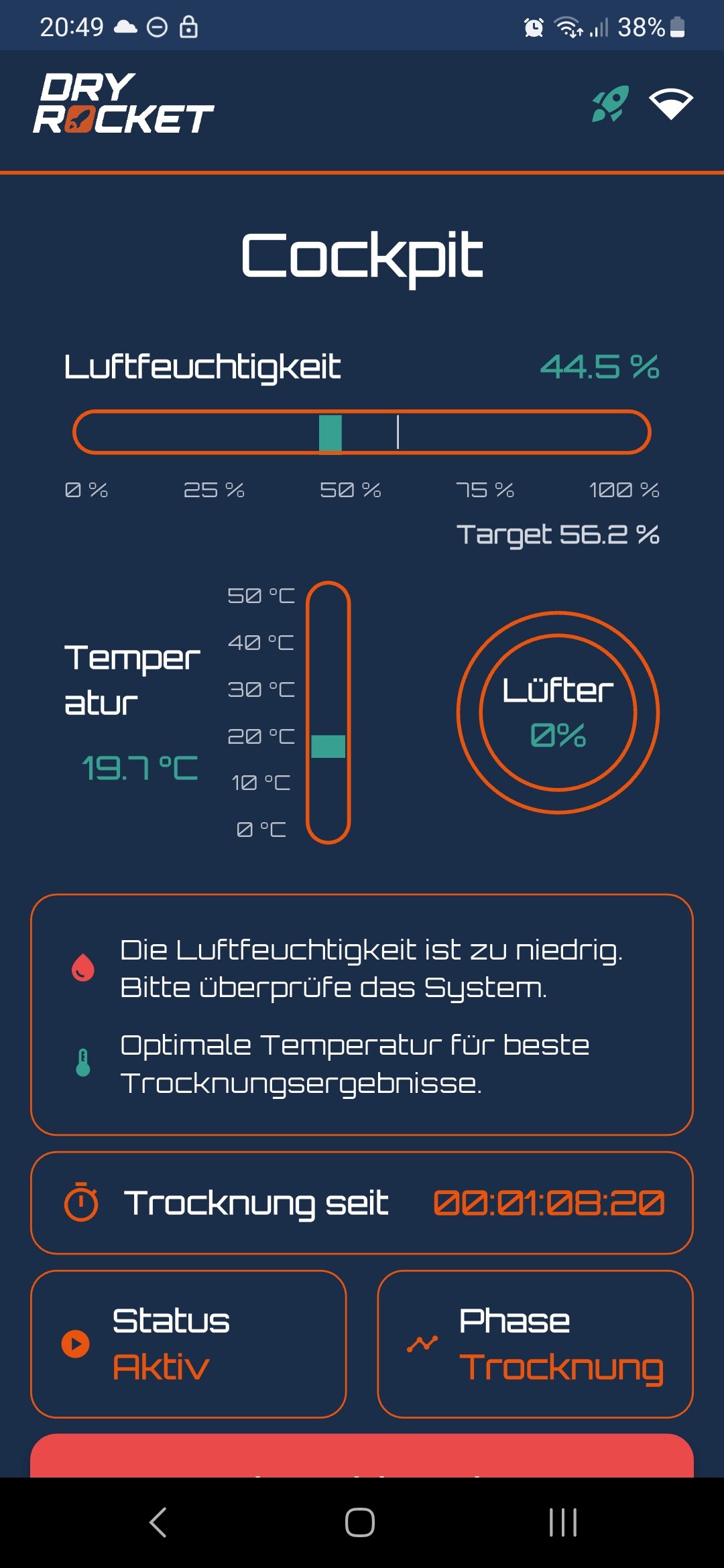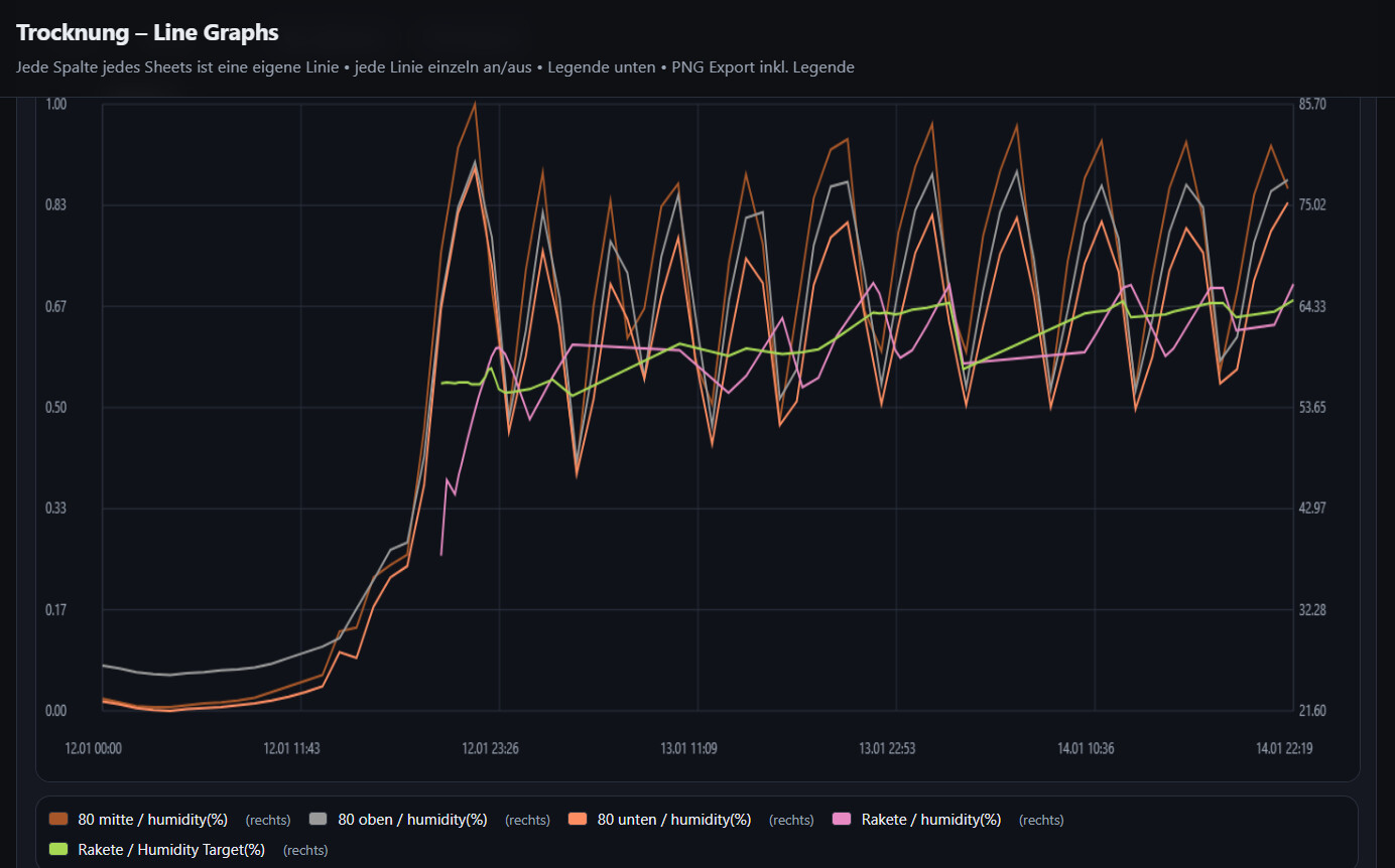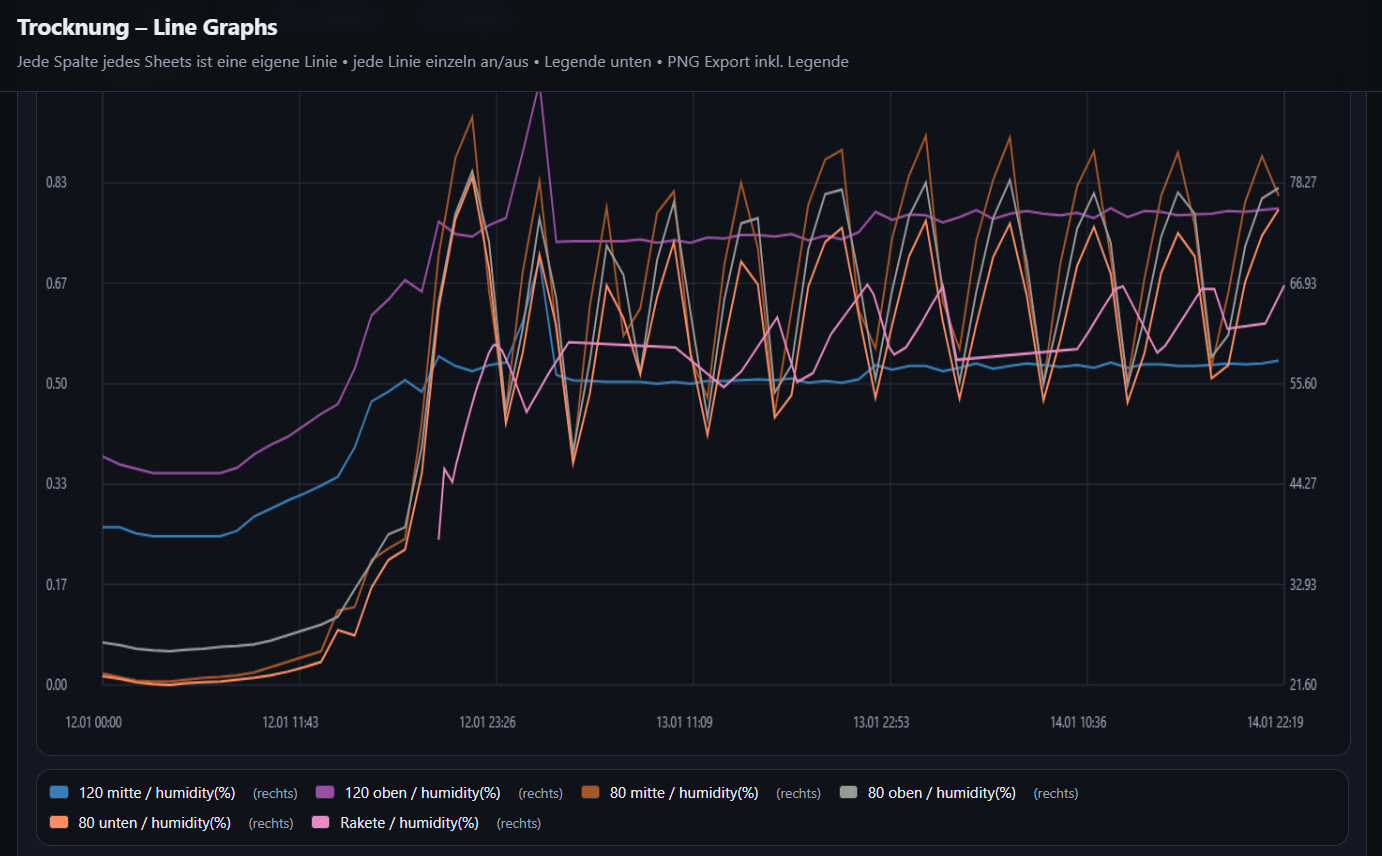 Sicherheitshalber steht im Raum auch ein Entfeuchter, der die RLF auf 60% âdeckeltâ: