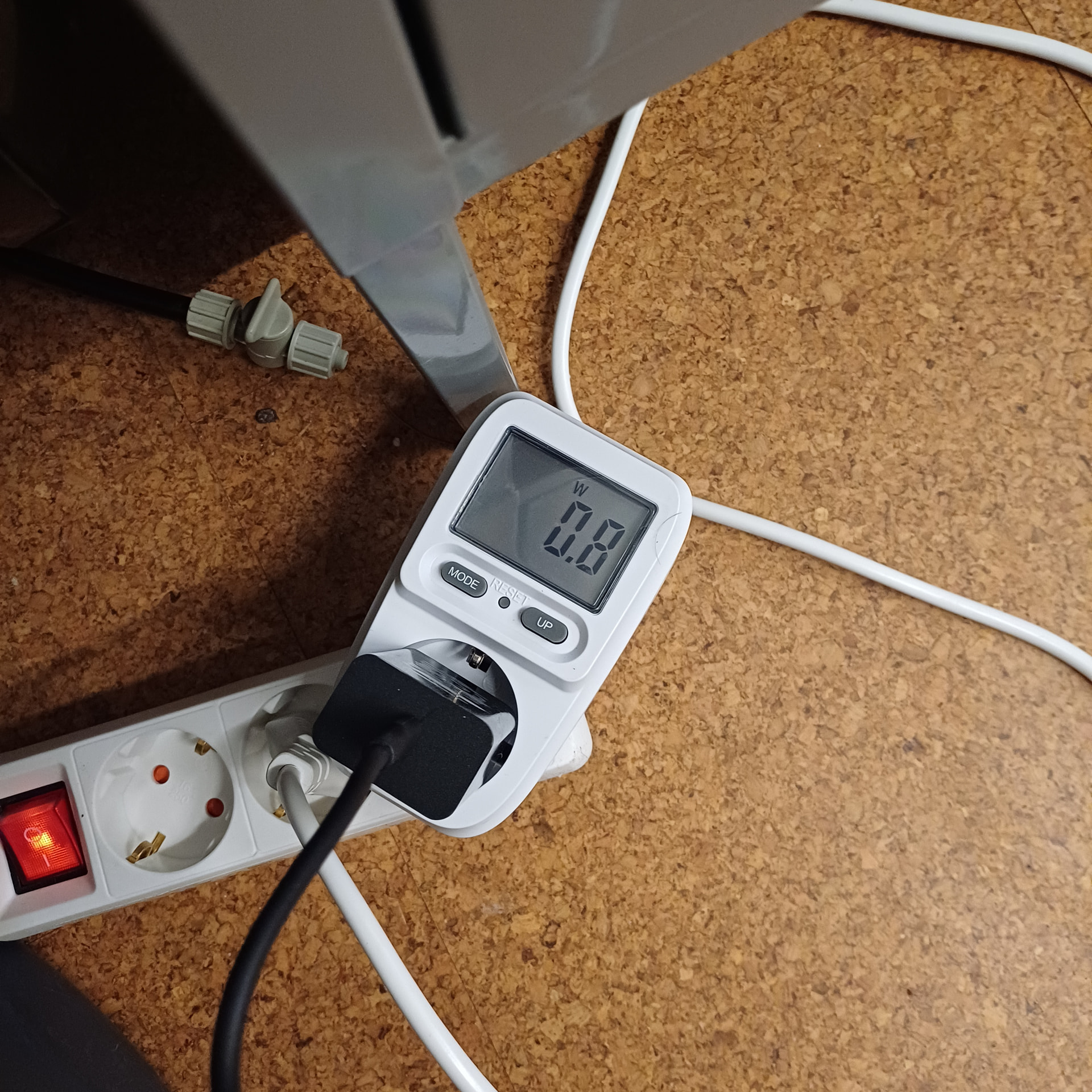Zwischen 0.7W und 1.4W (wenn die LĂŒfter voll laufen).