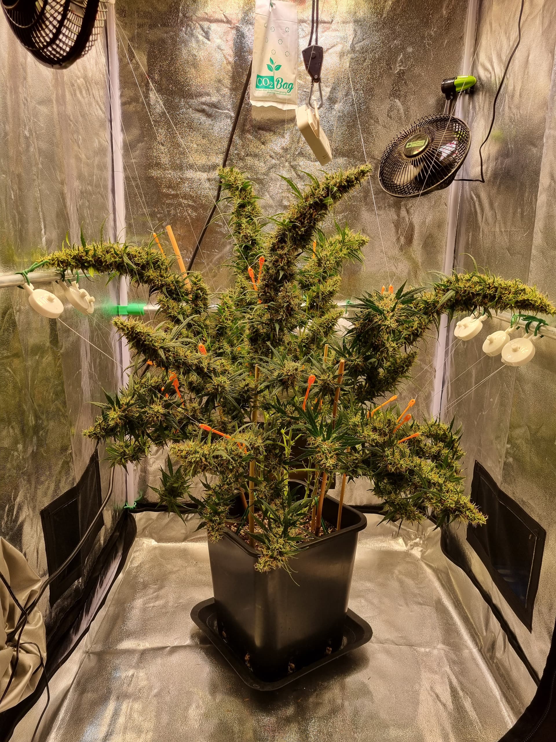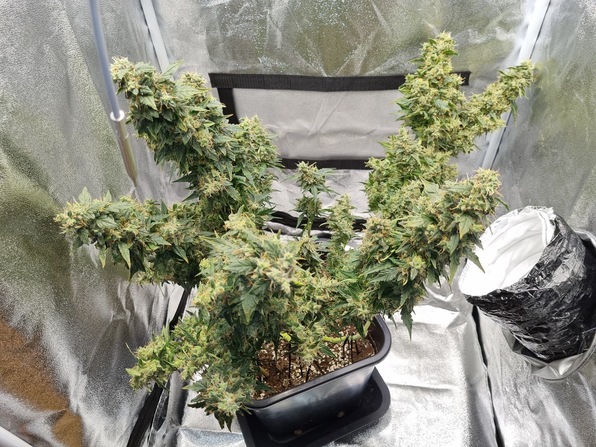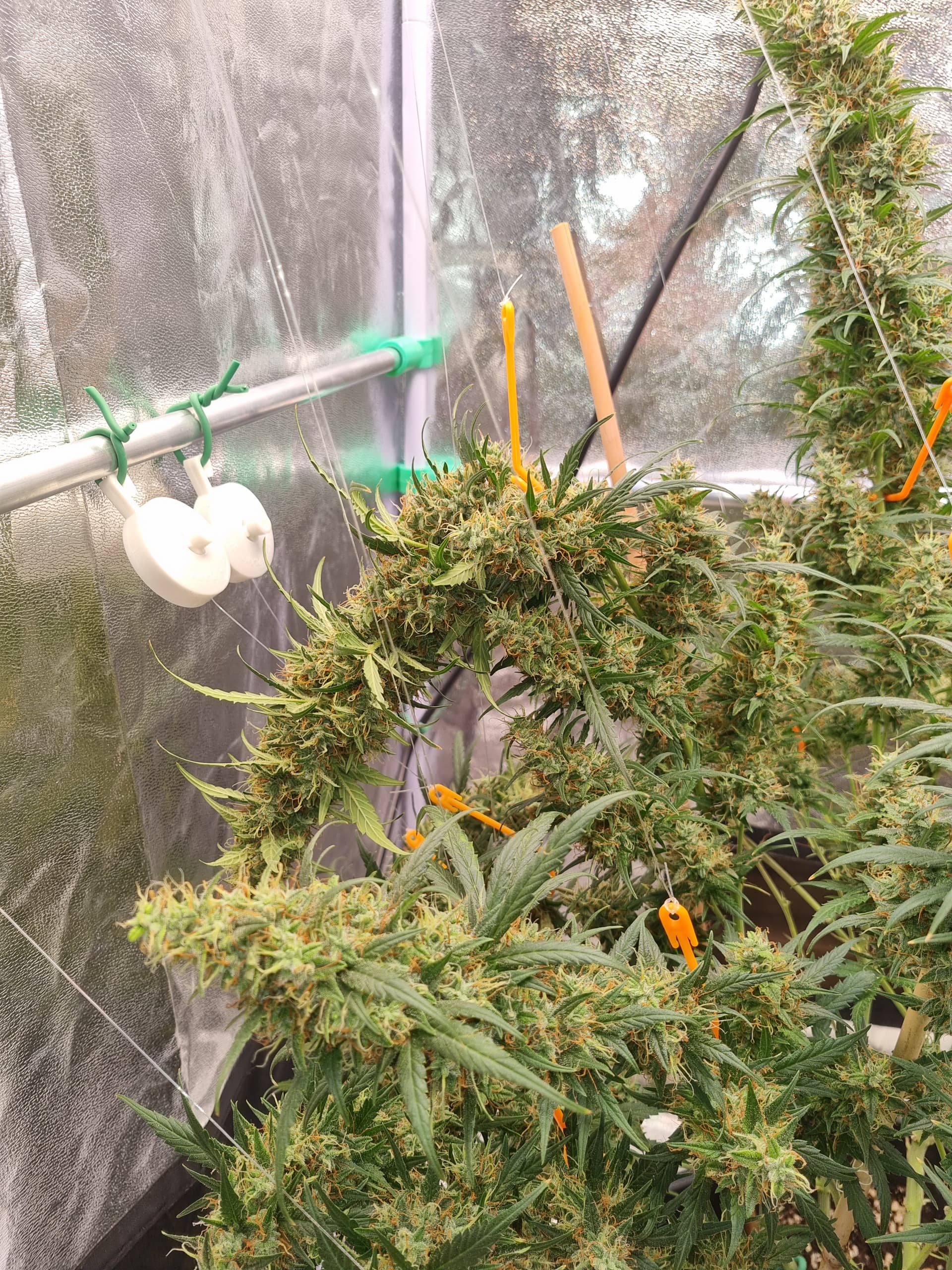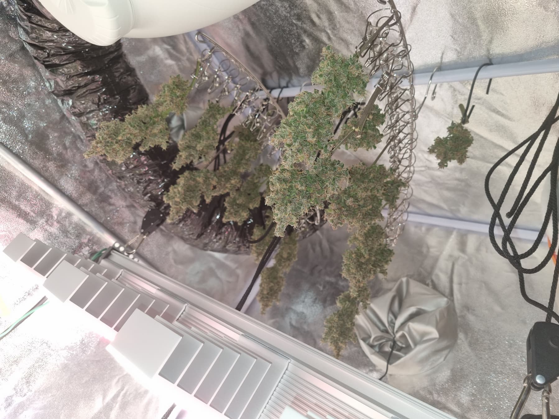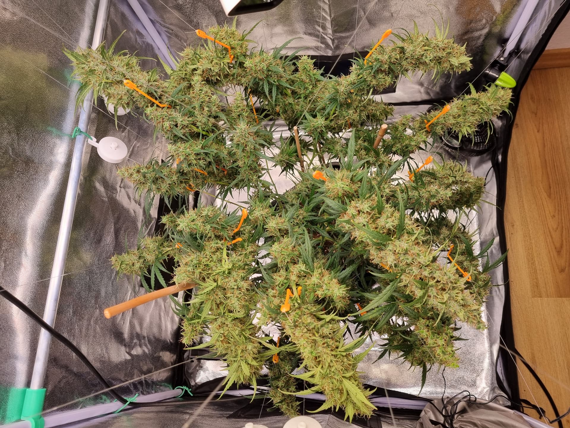 Aber die Triebe von Choco Nr. 2 waren so auch kaum zu bändigen, hinten rankommen sehr schwer, und die Buds hängen immer noch an der Wand.